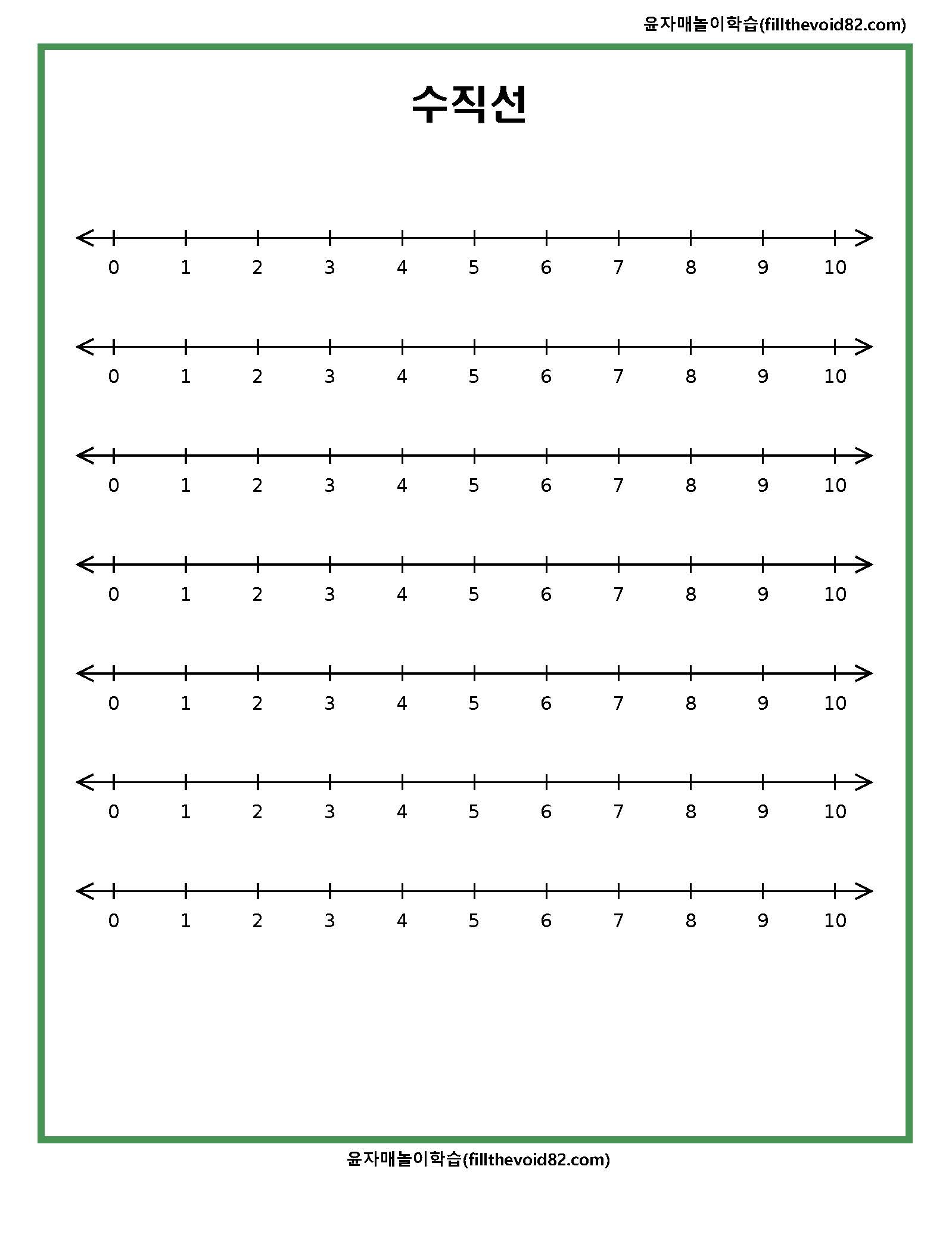 기타워크지) 수직선 0~10까지 1씩 증가하는 수직선과 0~20까지 2씩 증가하는 수직선 워크지입니다. 여러가지로 활용 해 보세요. 도움이 되셨다면 공감과 댓글 부탁드립니다. 기타워크지 2023.04.05