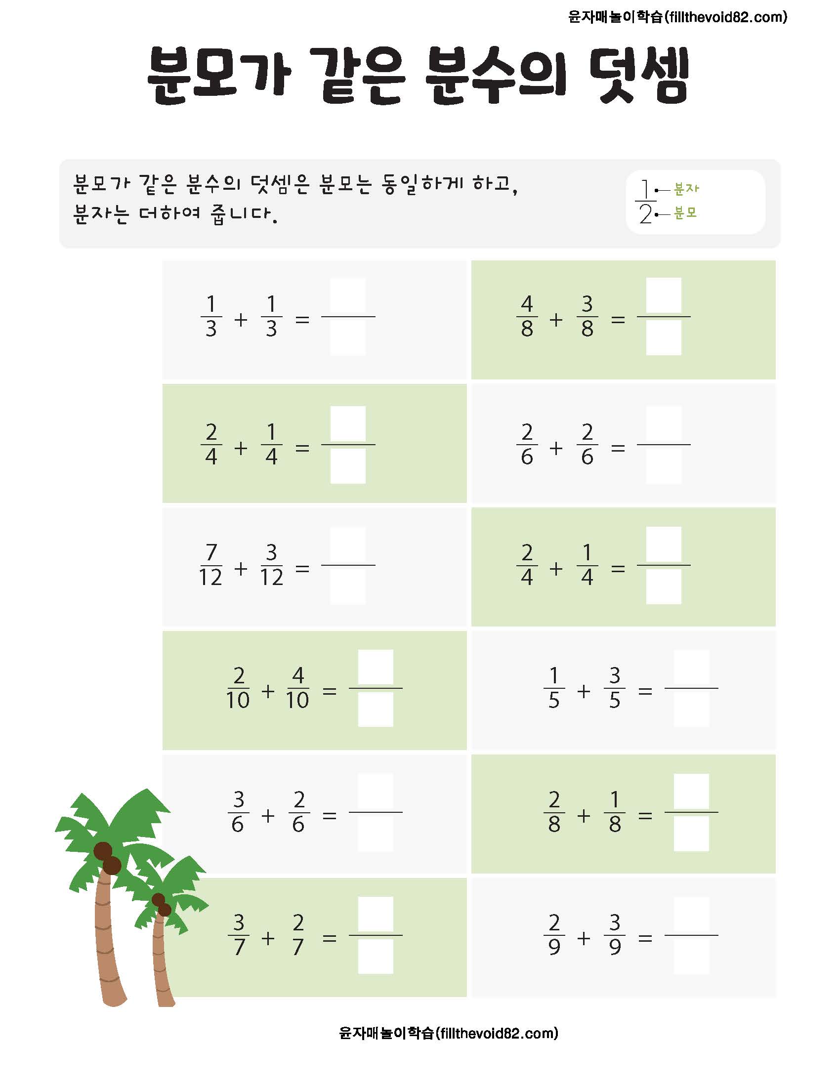 무료학습지) 초등연산문제지) 초등 3학년 분수 연산문제지