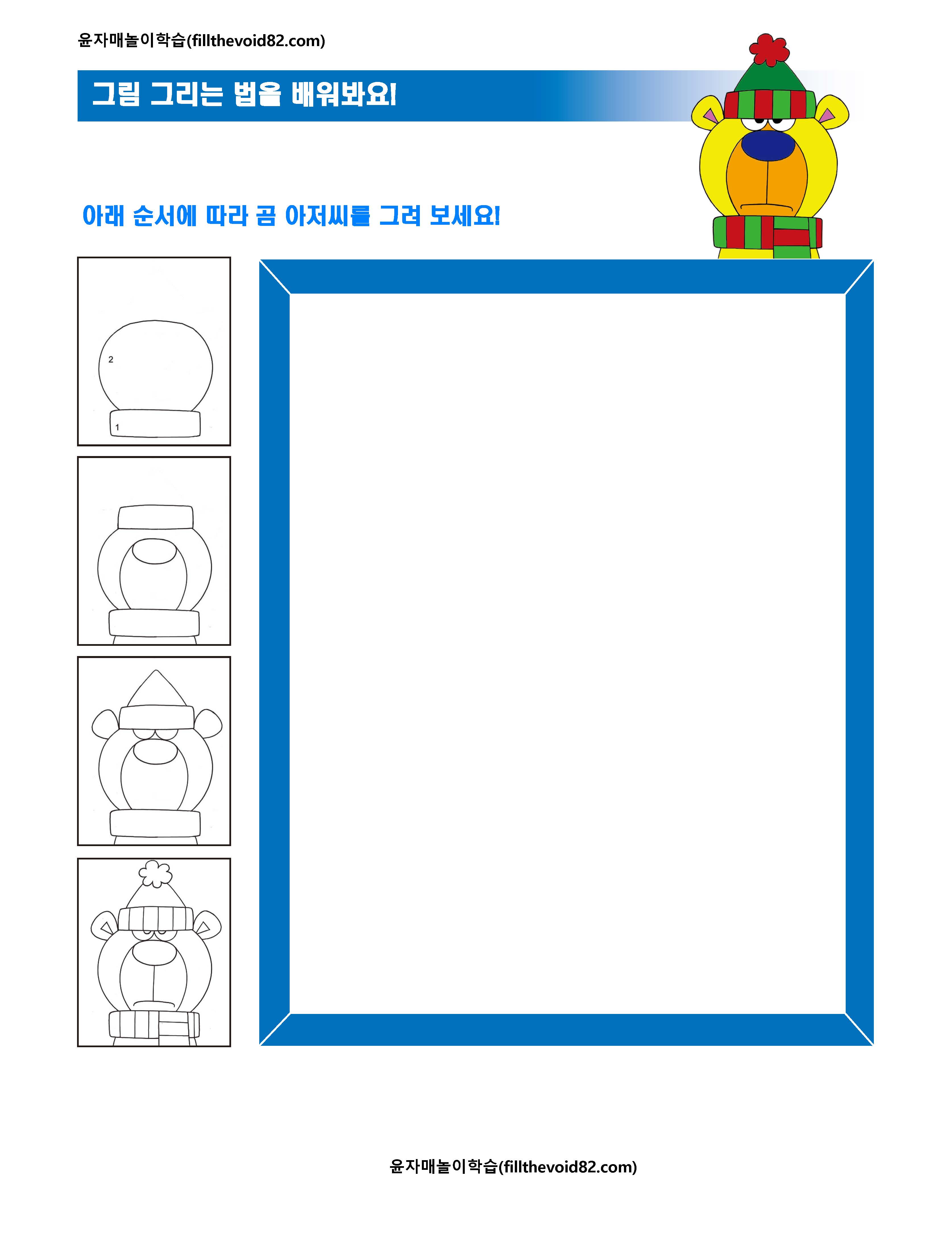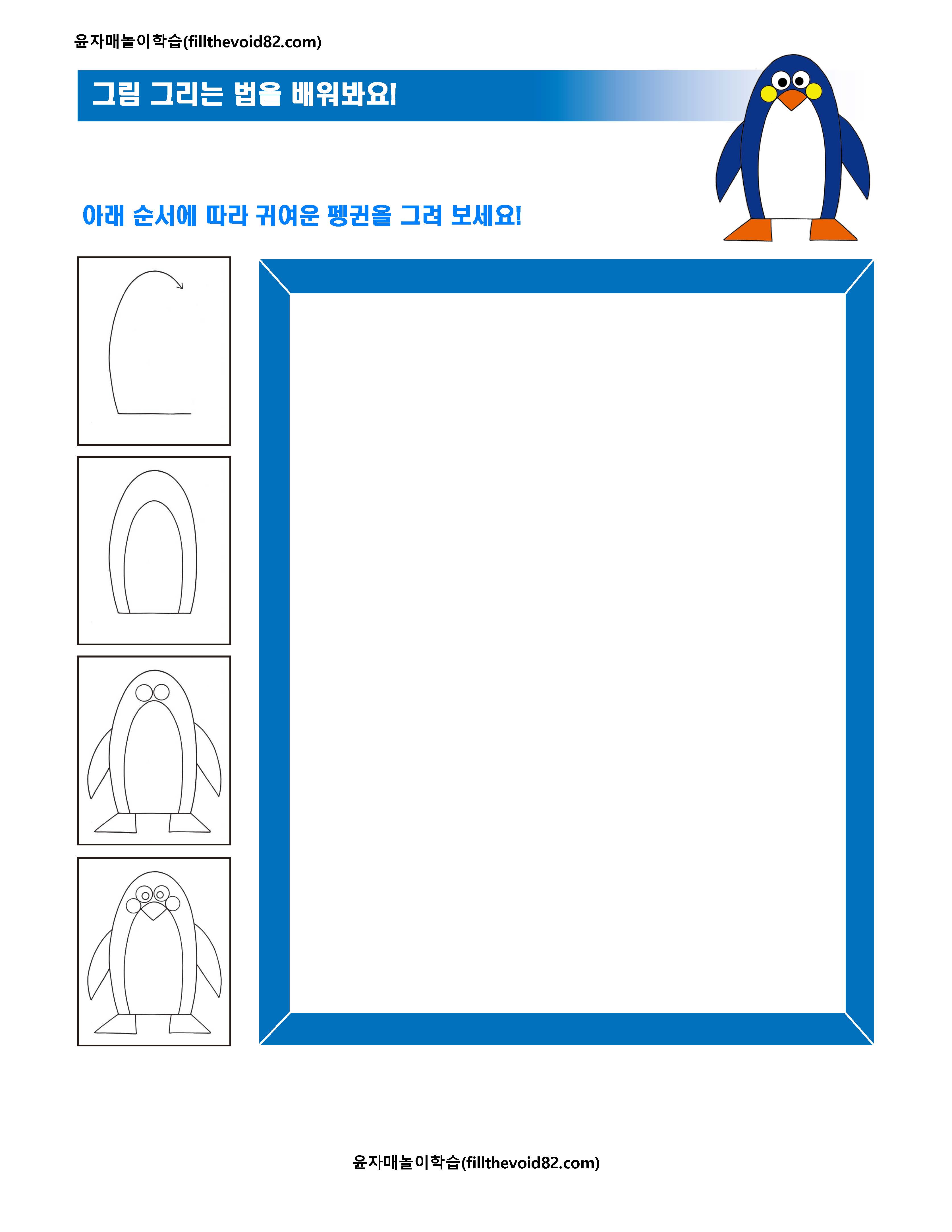 학습지에 나오는 순서대로 따라 그리다 보면 어느새 멋진 그림이 탄생할거예요!