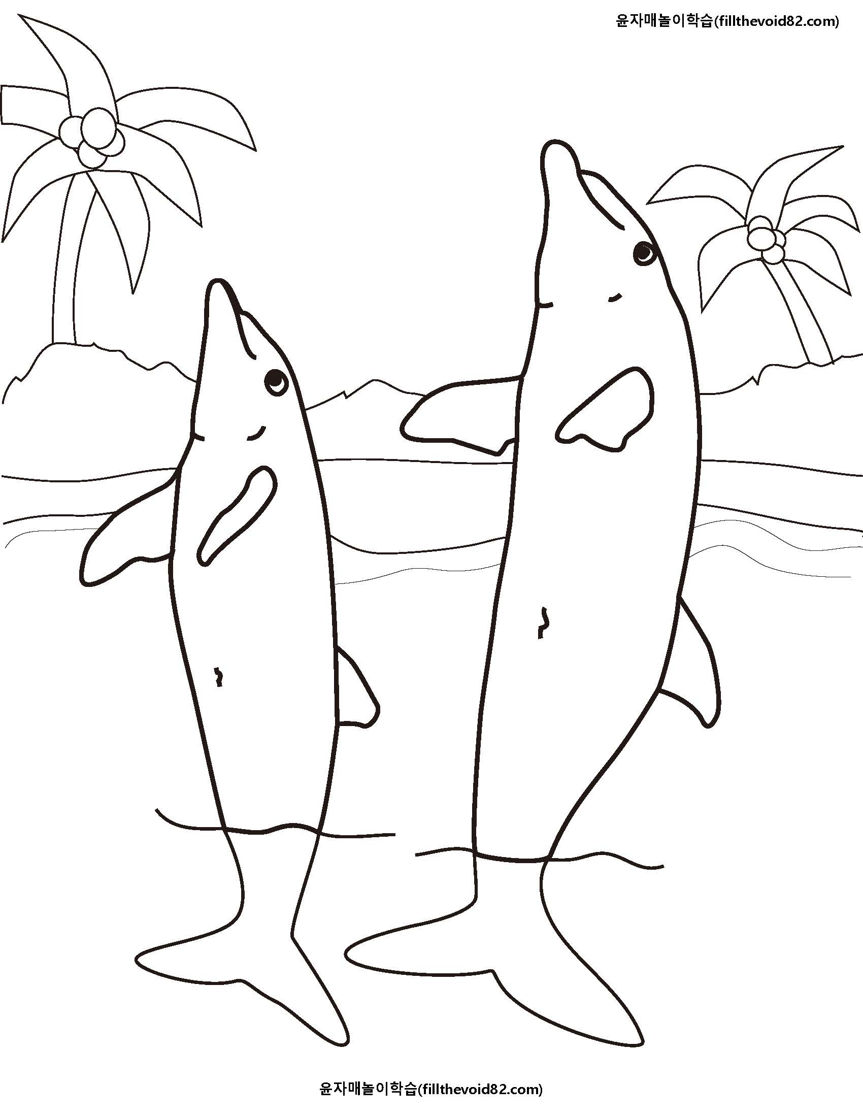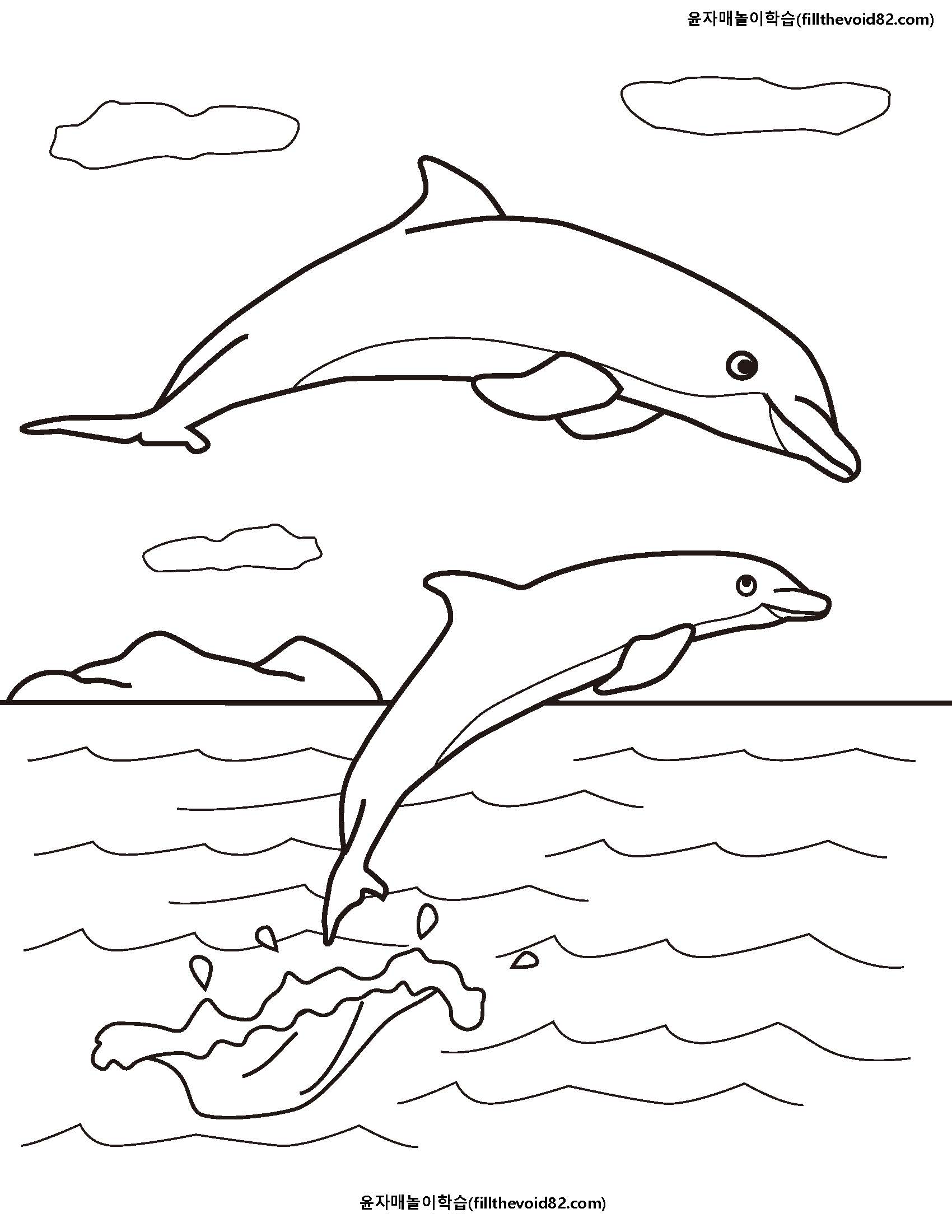 돌고래를 좋아하는 아이들을 위한 돌고래 색칠하기 워크지입니다.