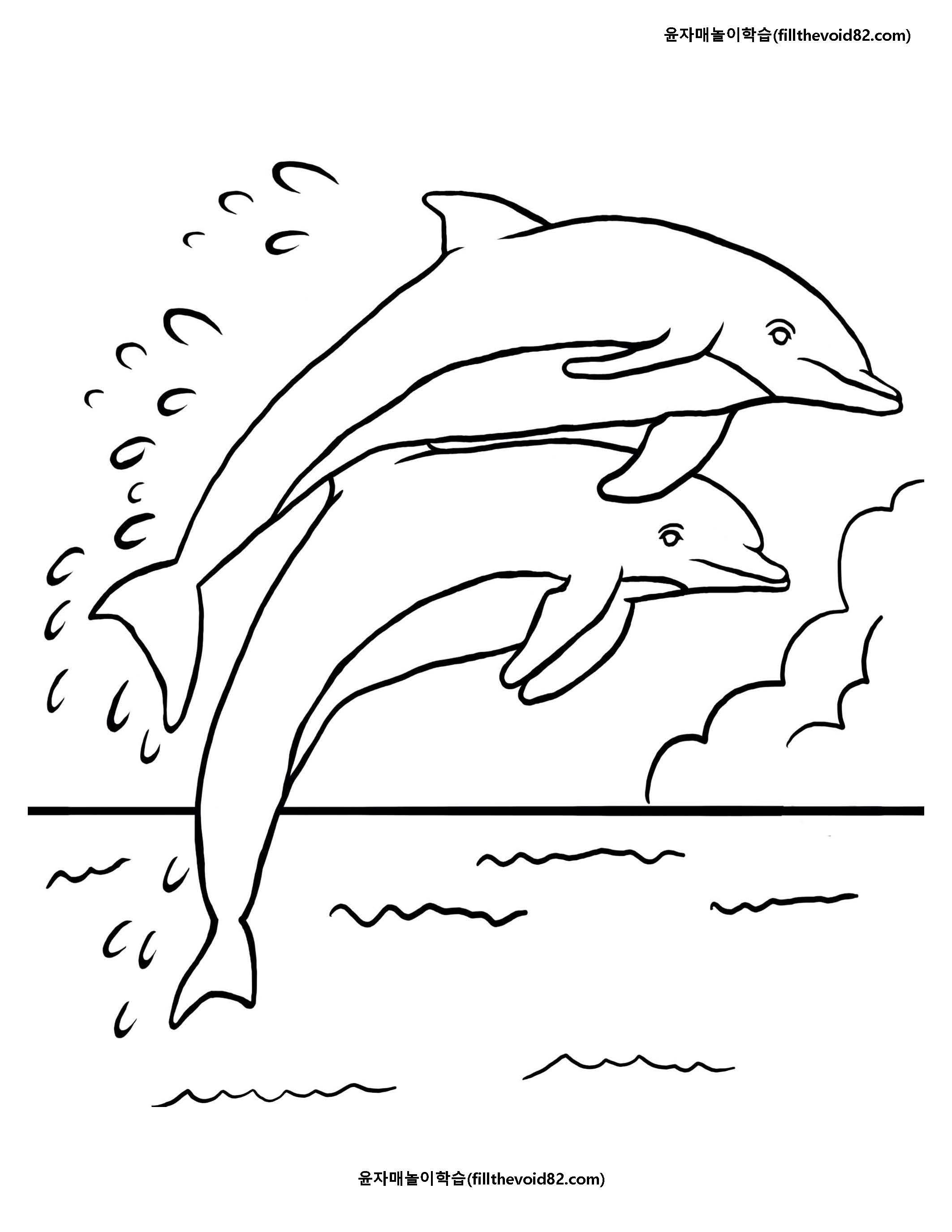 돌고래를 좋아하는 아이들을 위한 돌고래 색칠하기 워크지입니다.