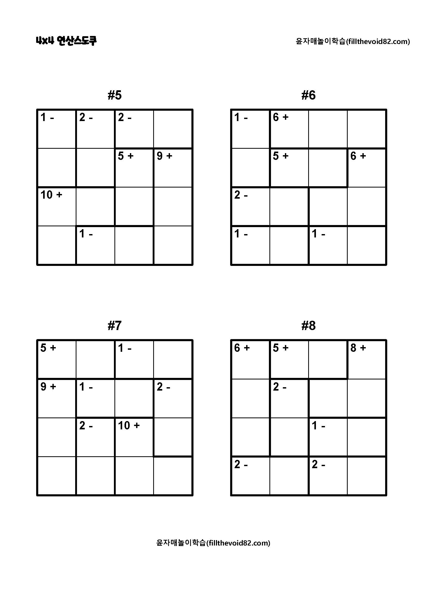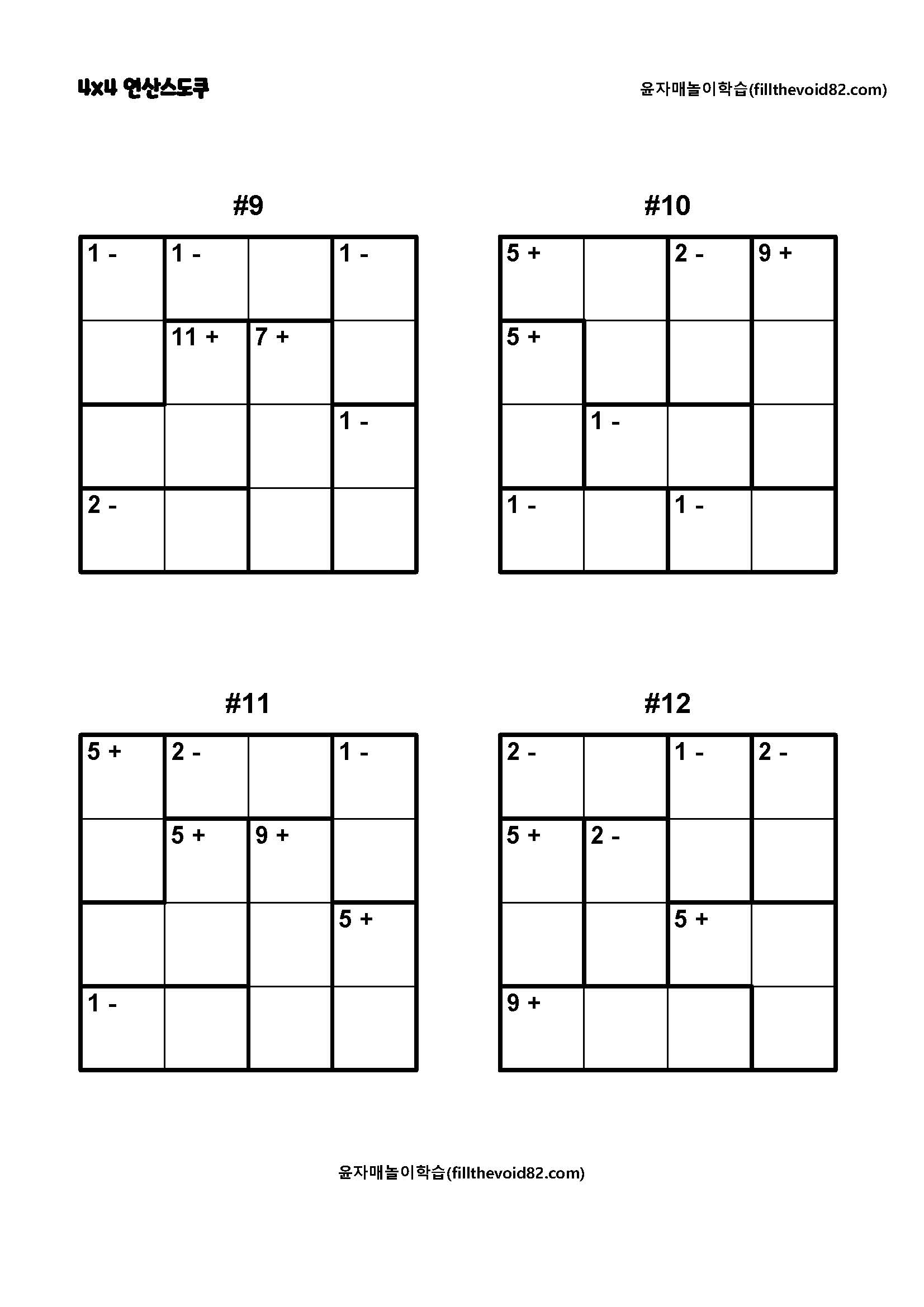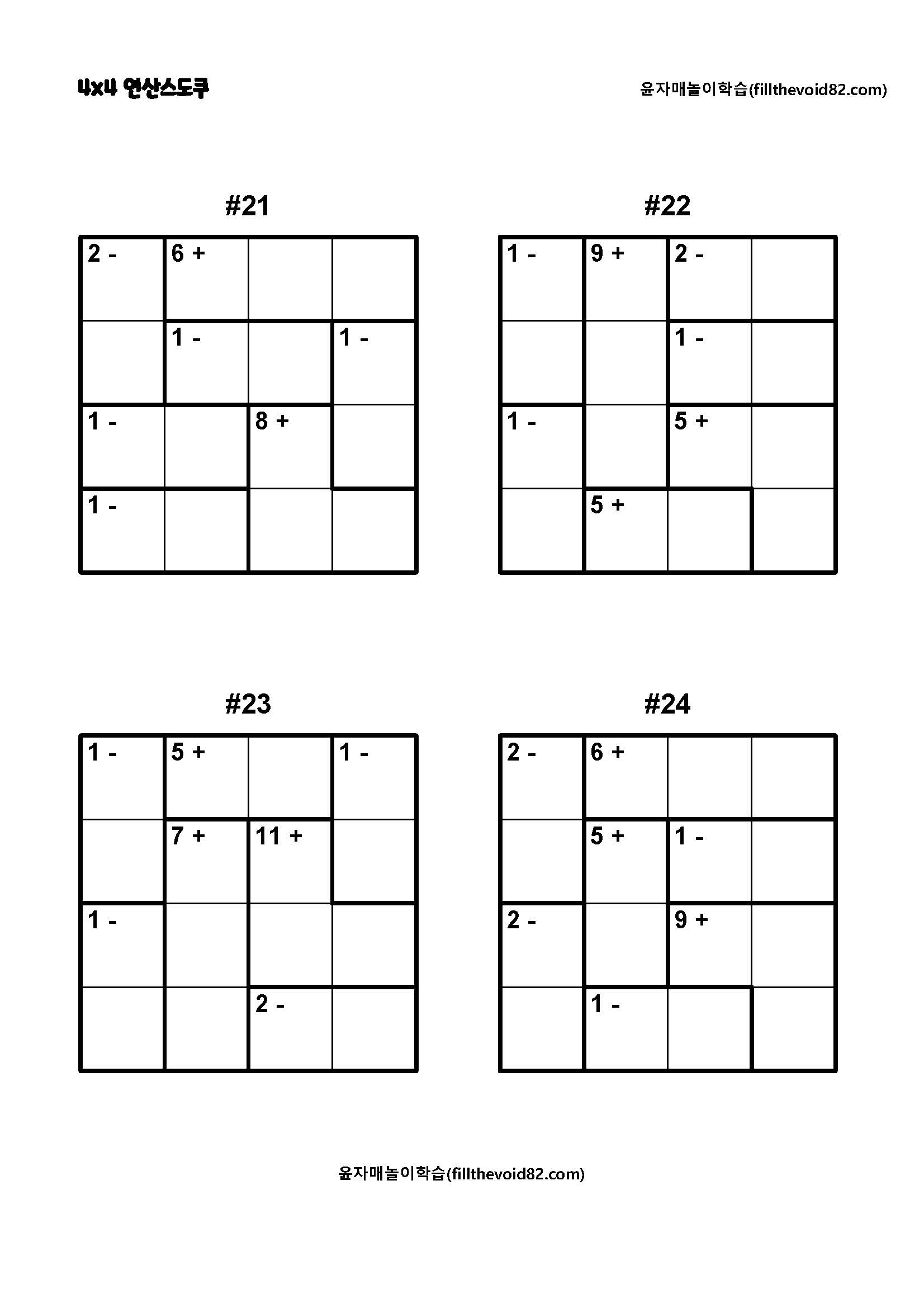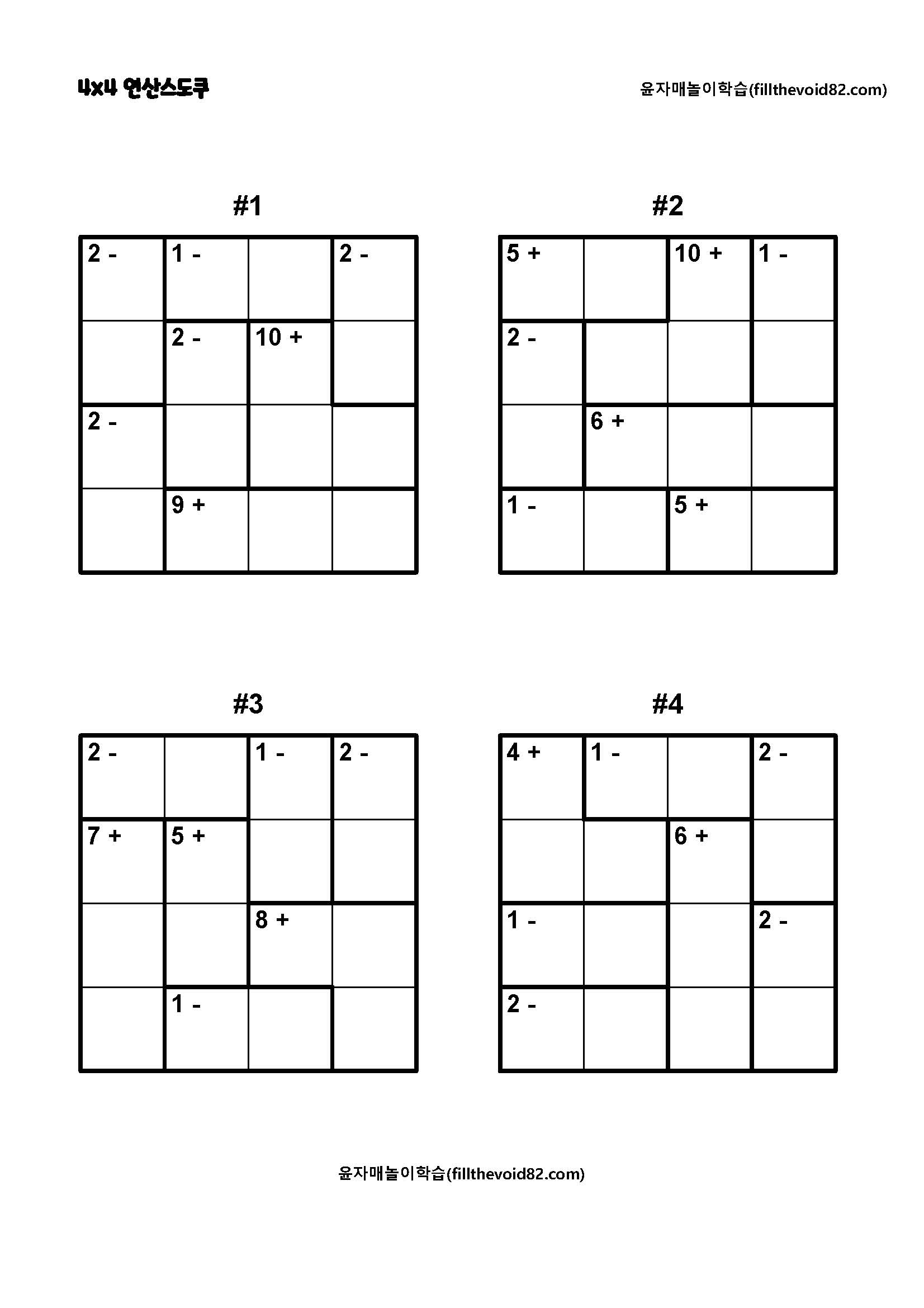 4x4 연산스도쿠 초보단계입니다. 쉽고 재미있게 사고력을 기를 수 있습니다.