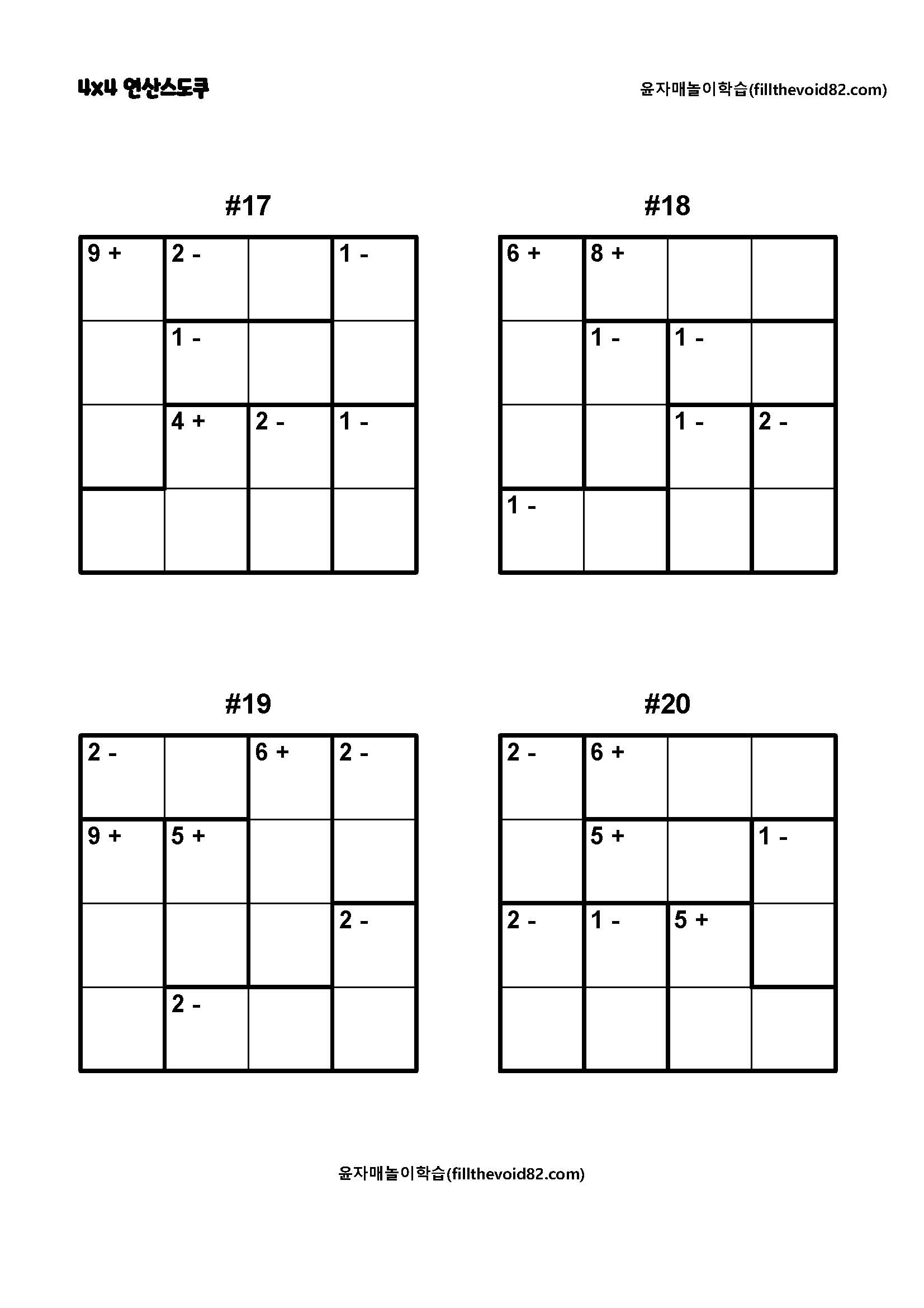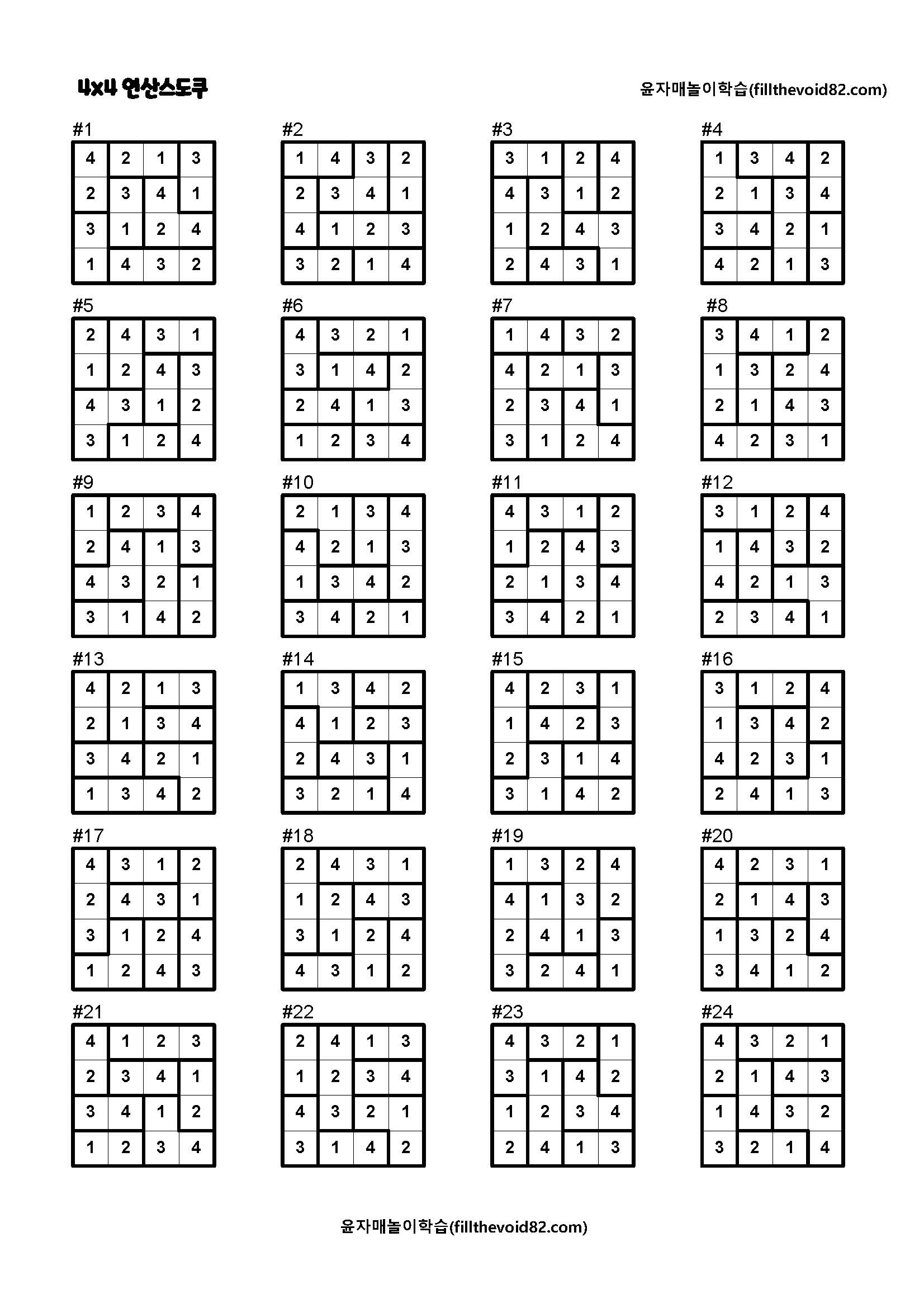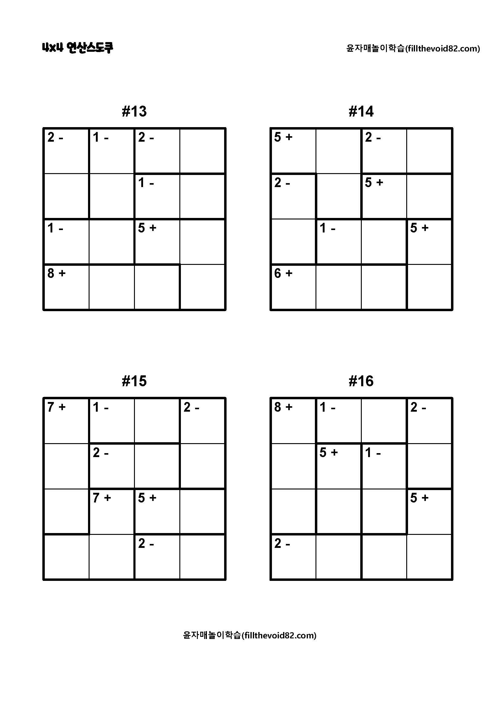 놀이학습지) 4x4 연산스도쿠(초보)(1)