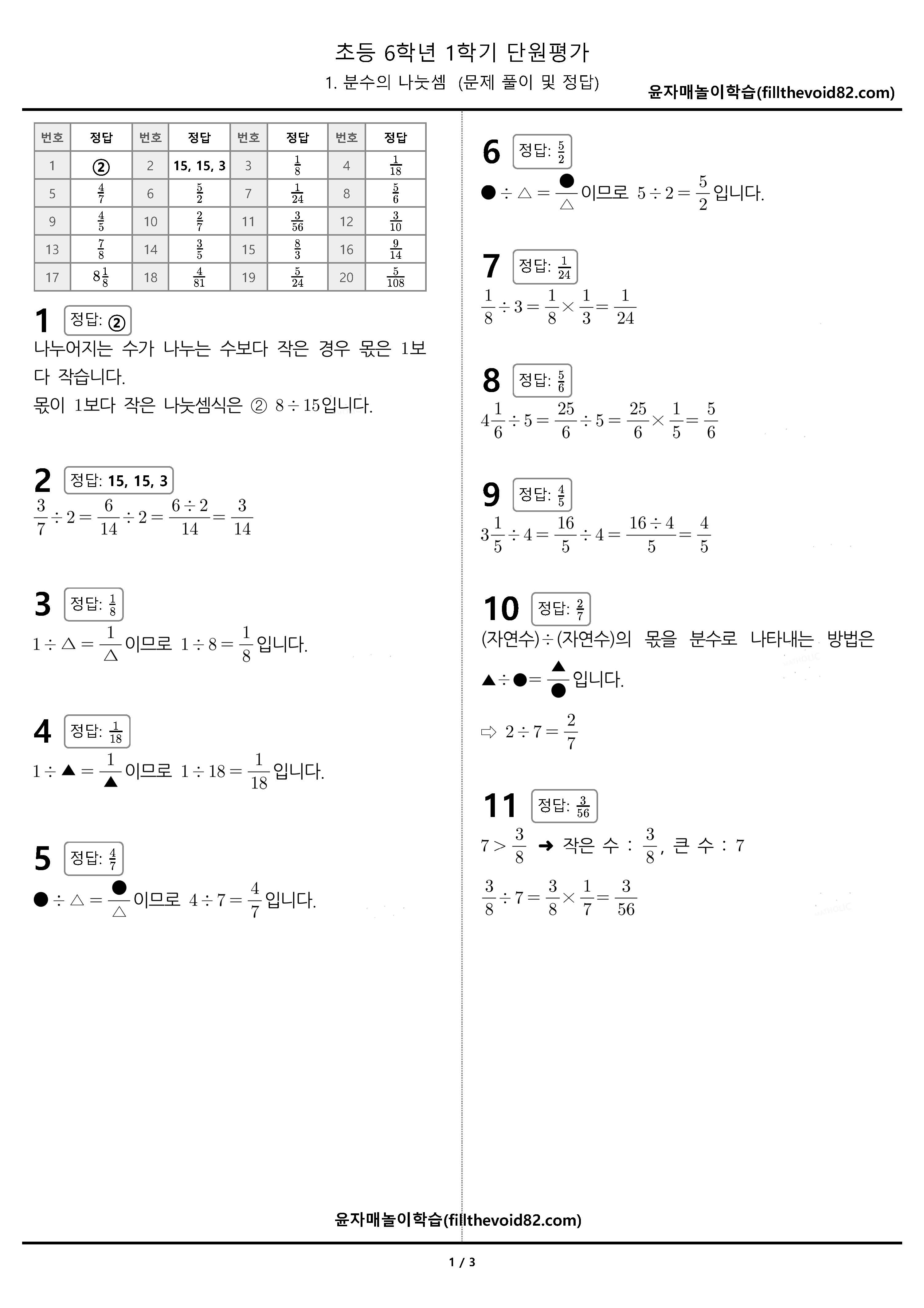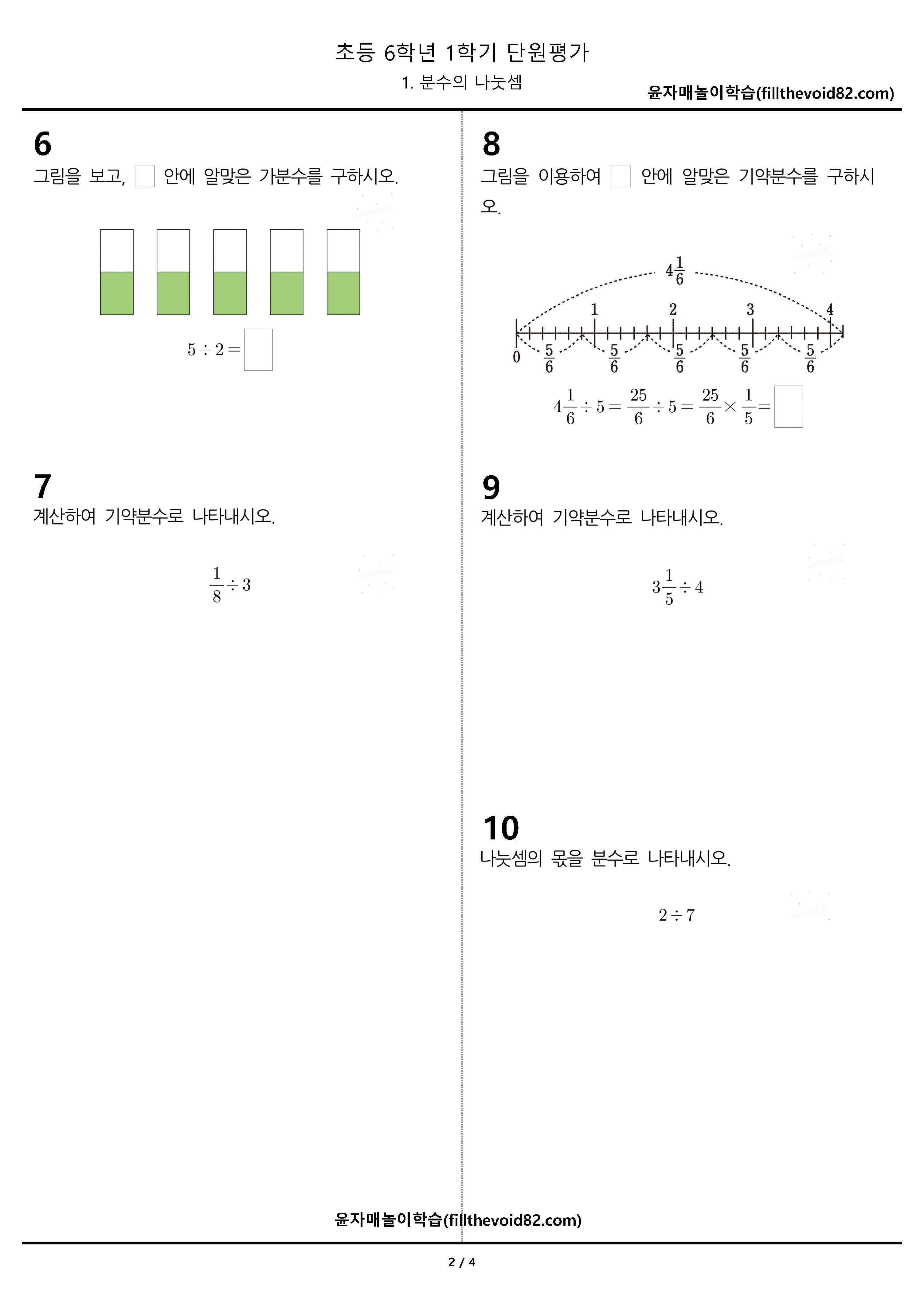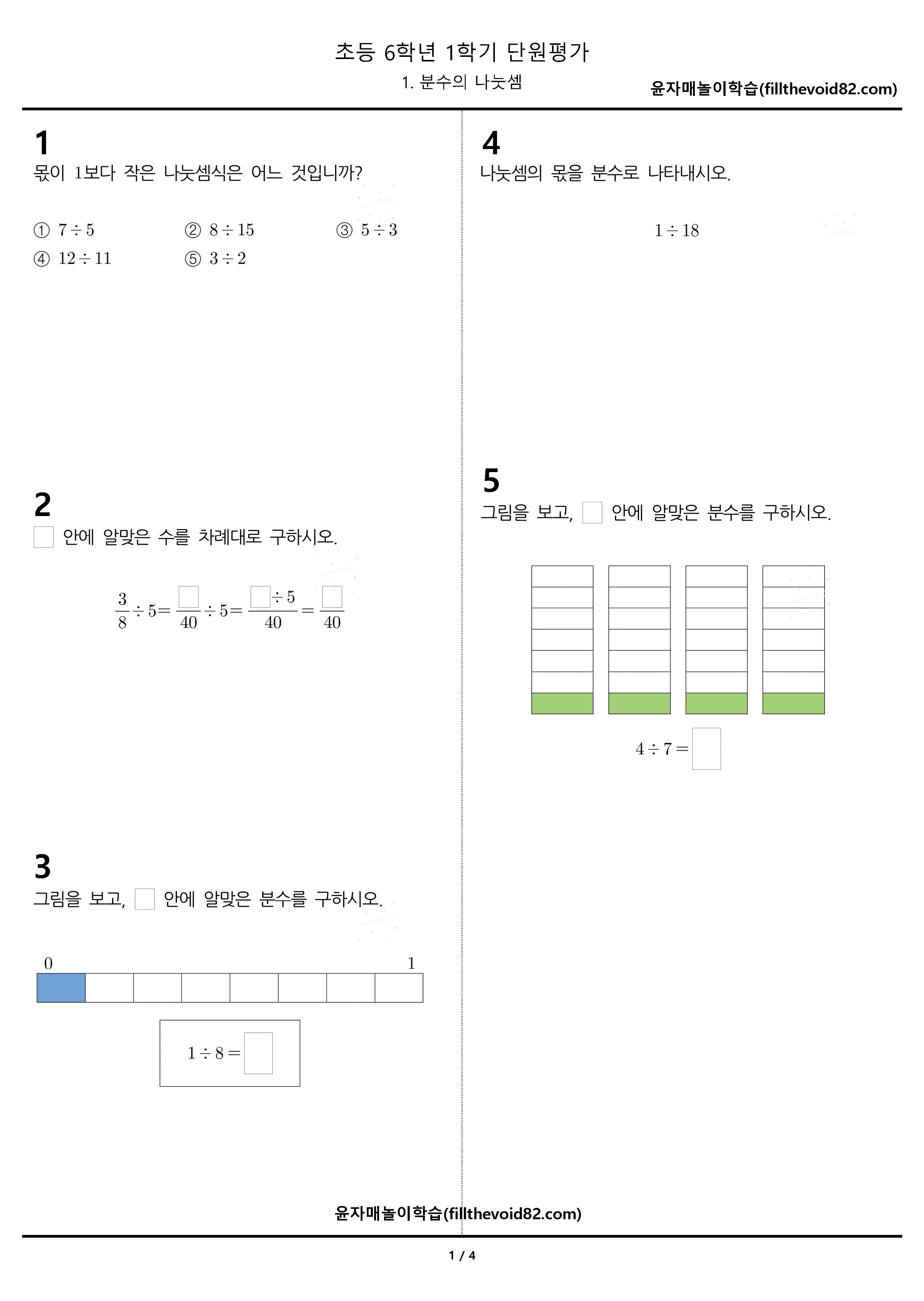 초6 단원평가) 6학년 1학기-1. 분수의 나눗셈
