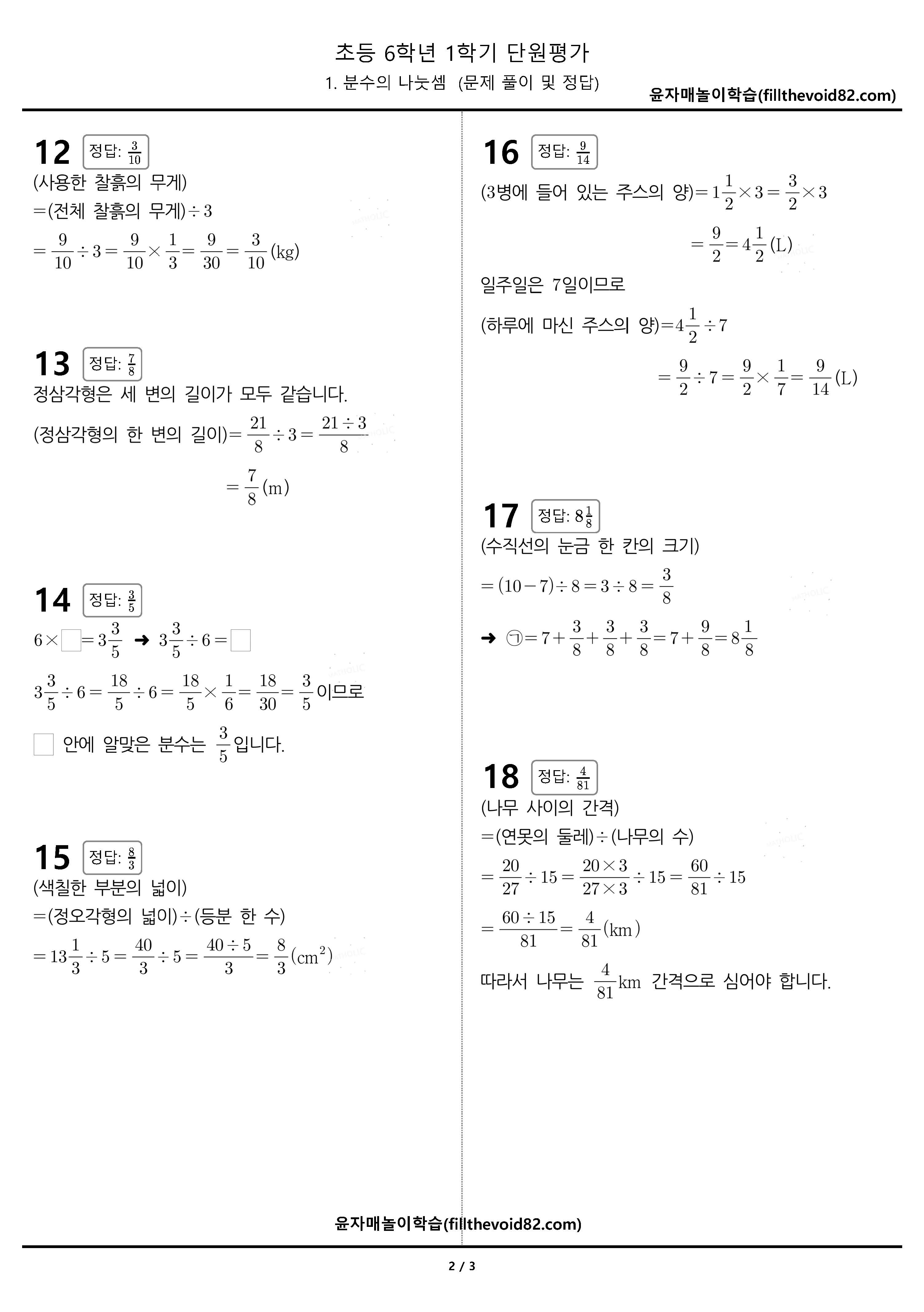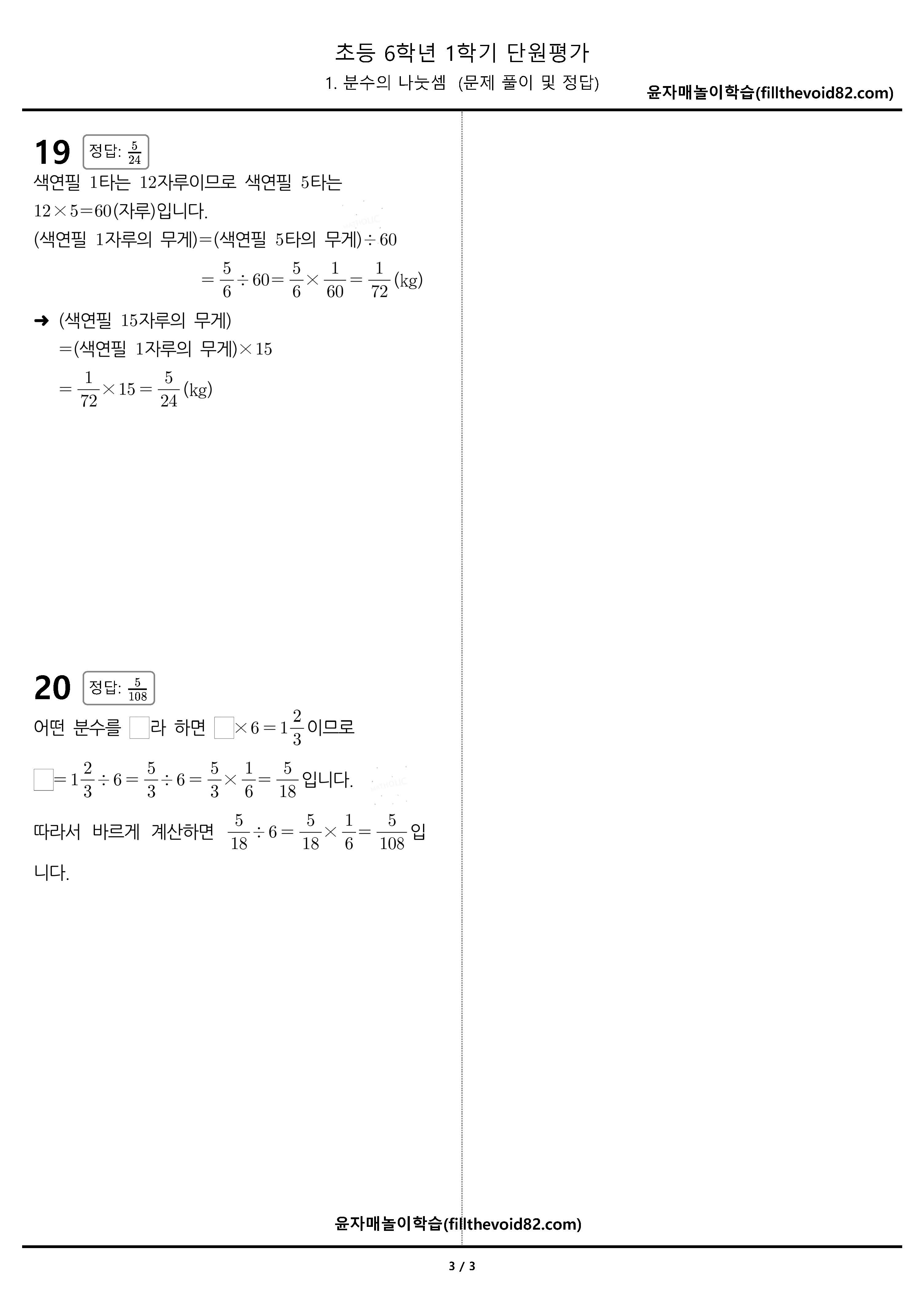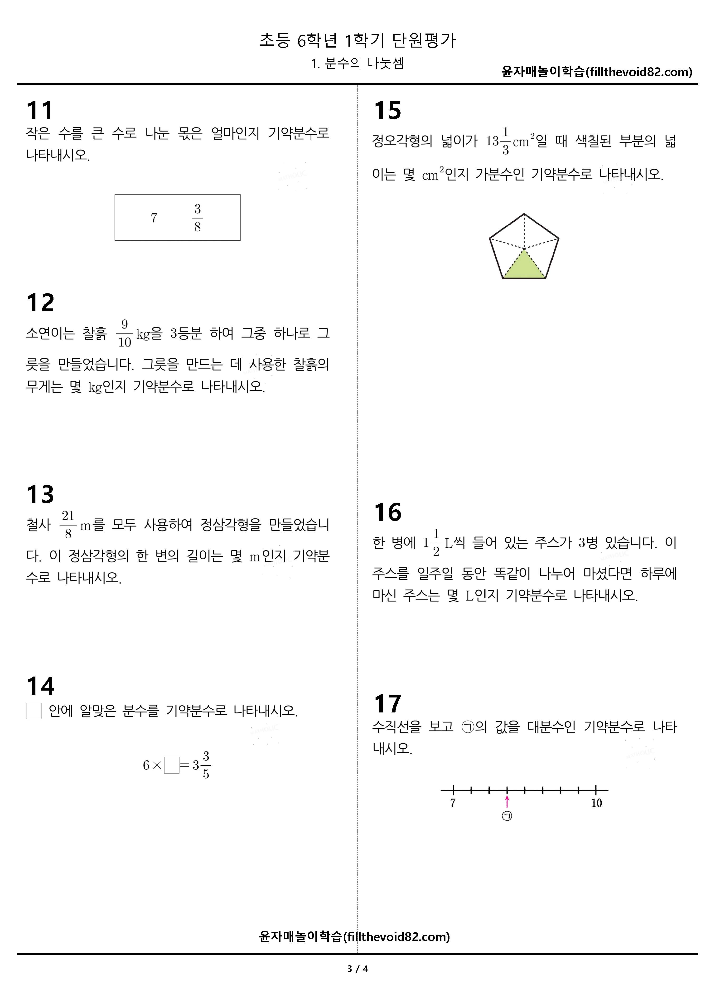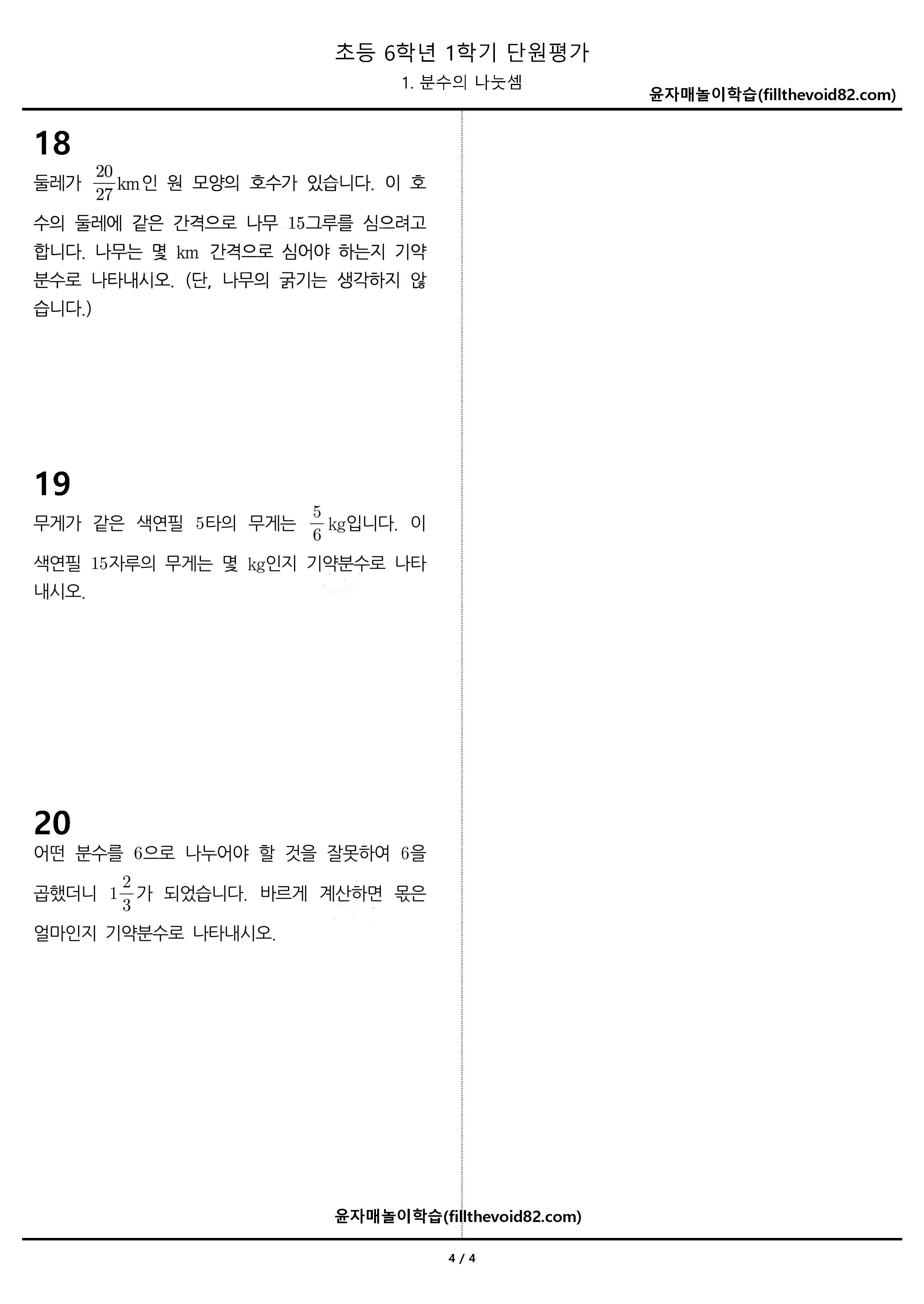 초6 단원평가) 6학년 1학기-1. 분수의 나눗셈