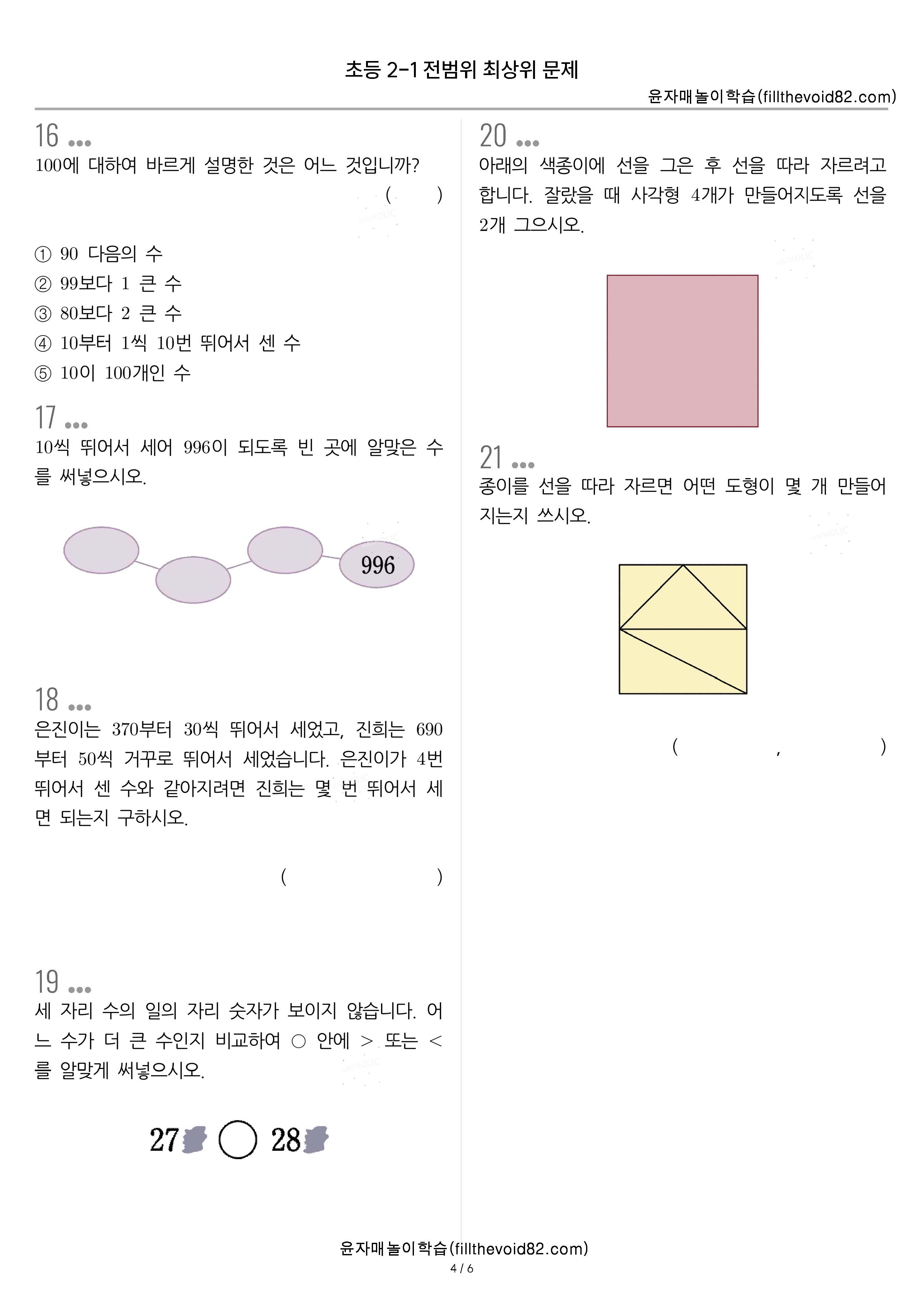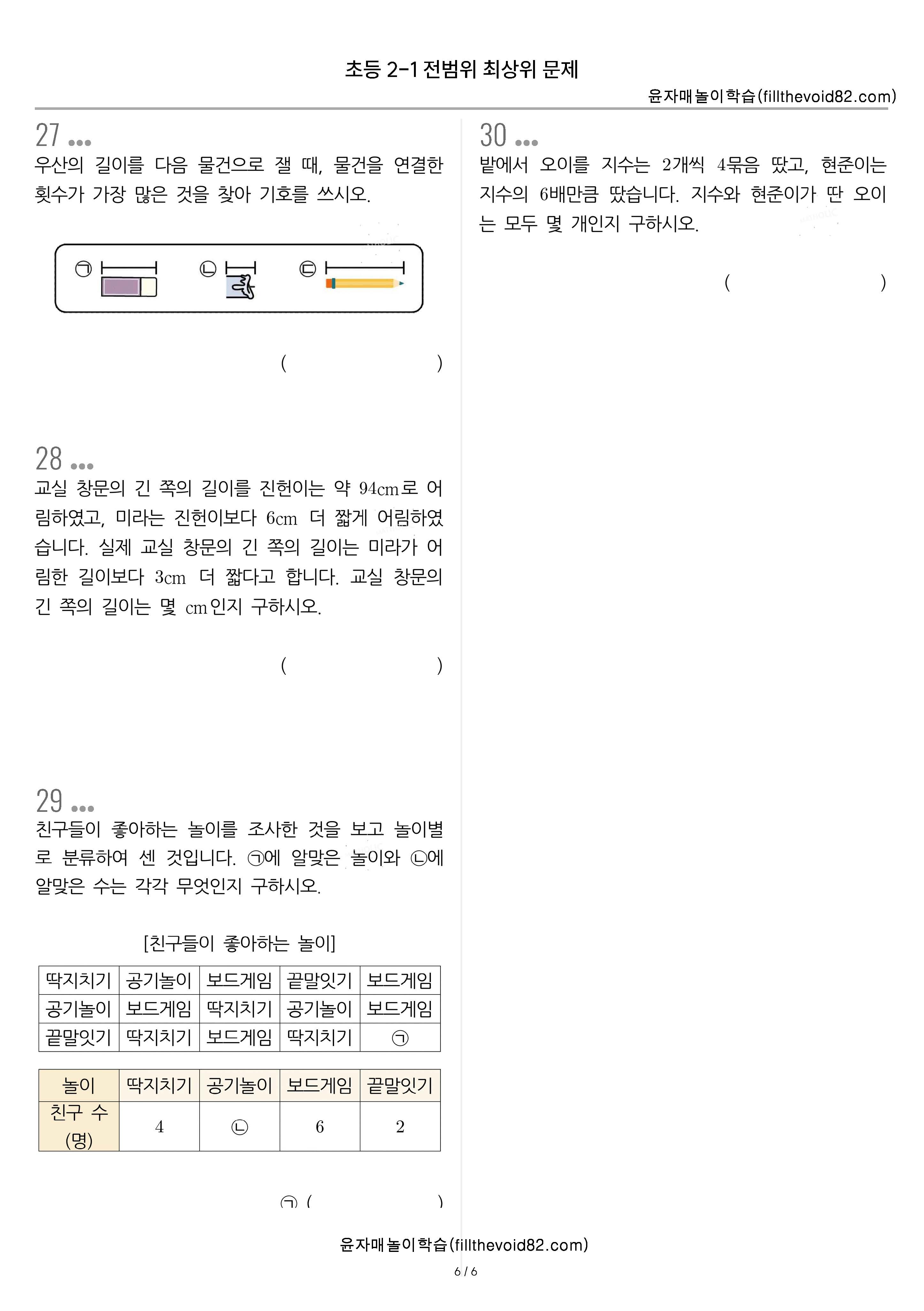 초등 2학년 전 범위 최상위 문제 진단평가 30문제입니다.