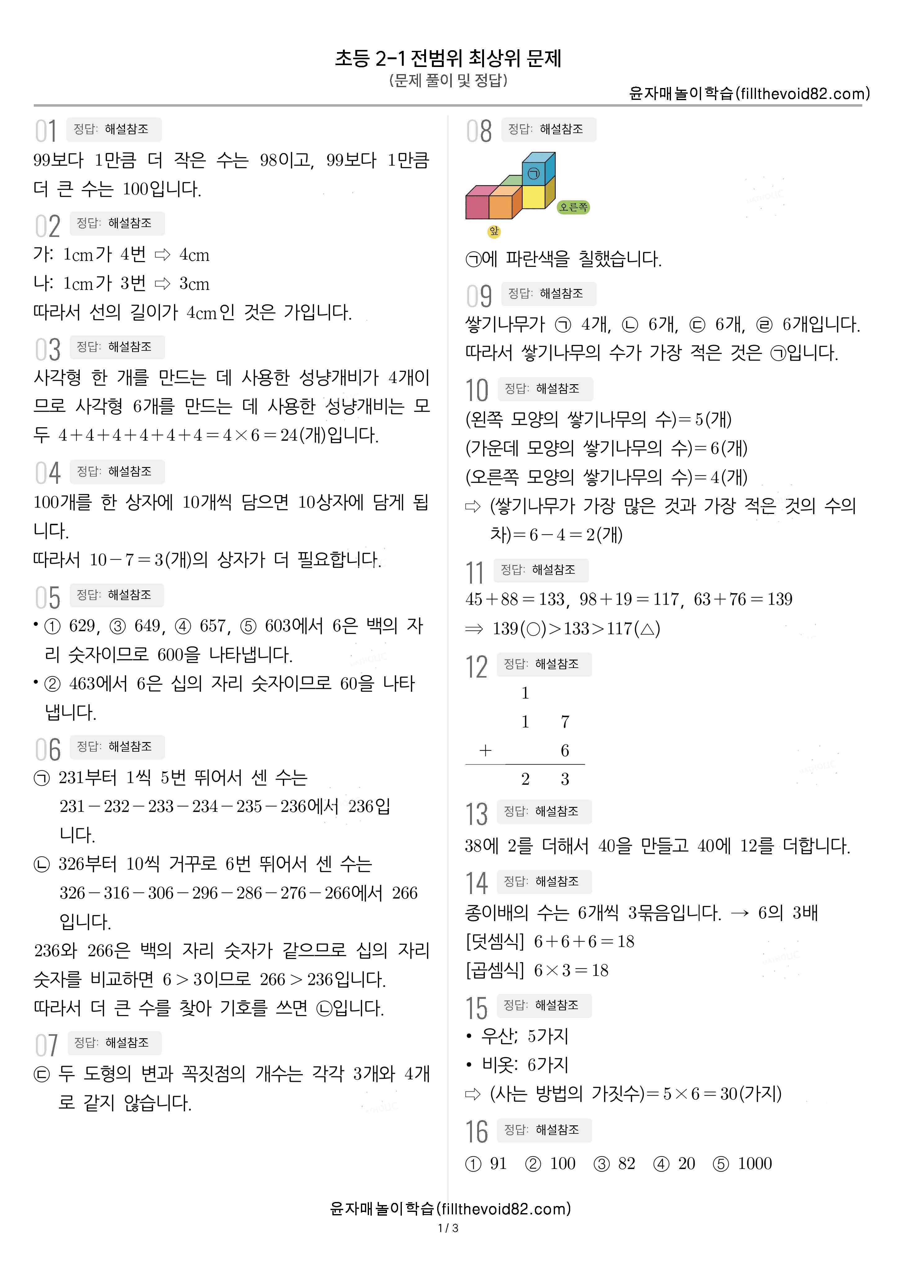 무료진단평가) 초등 2학년 1학기 전범위 최상위문제
