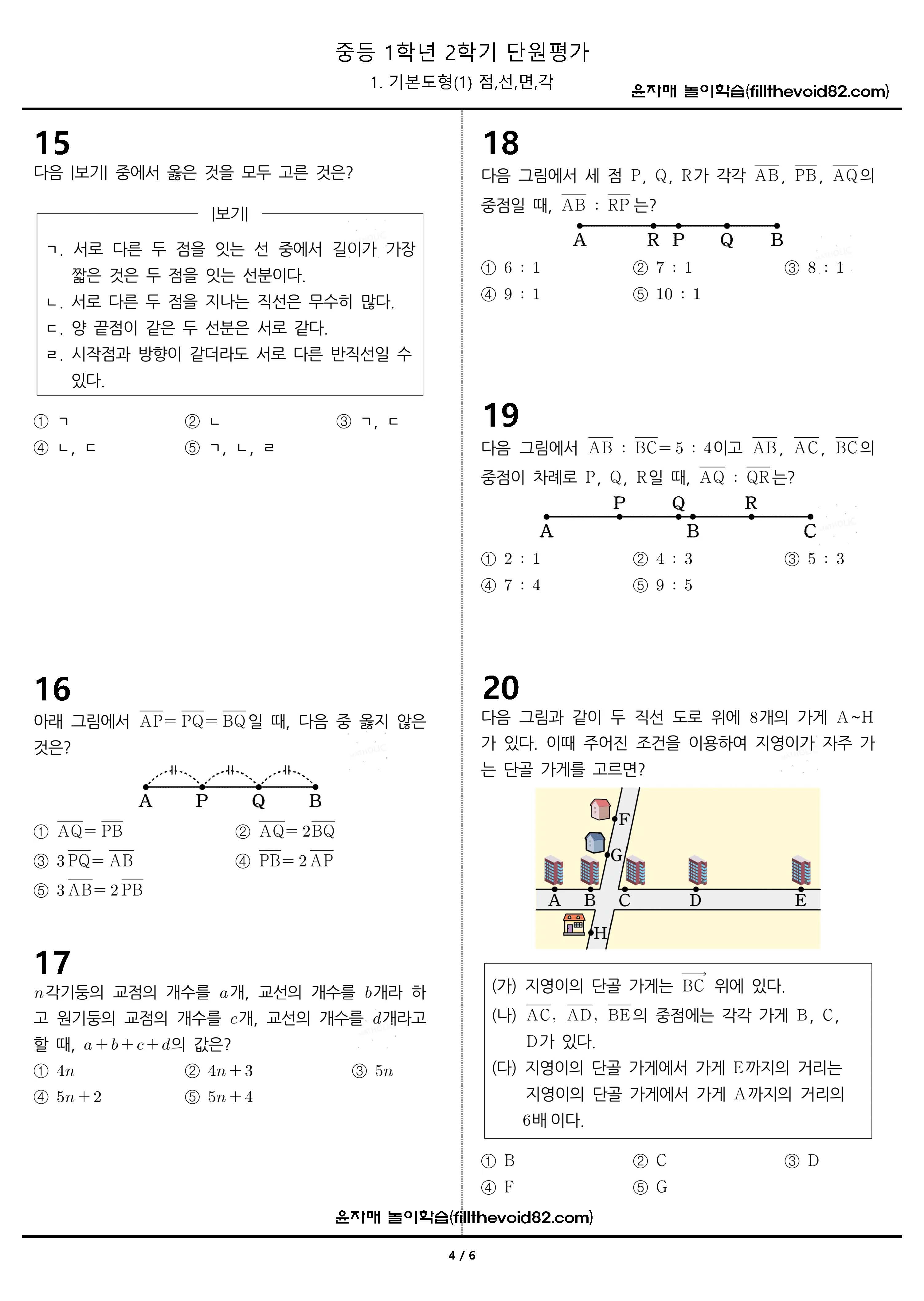 중등 1학년 2학기 1단원을 평가 할 수 있는 무료학습지입니다.