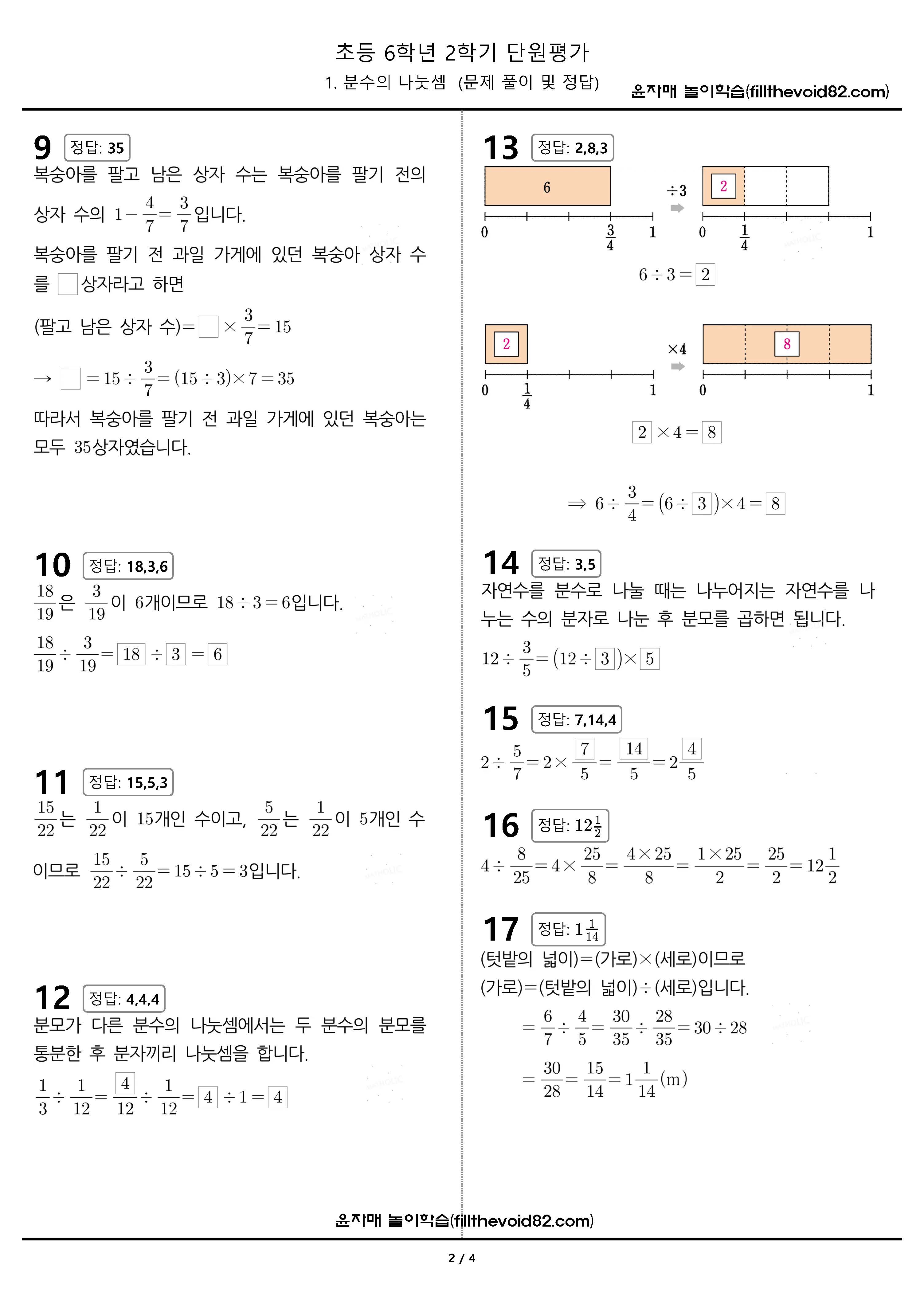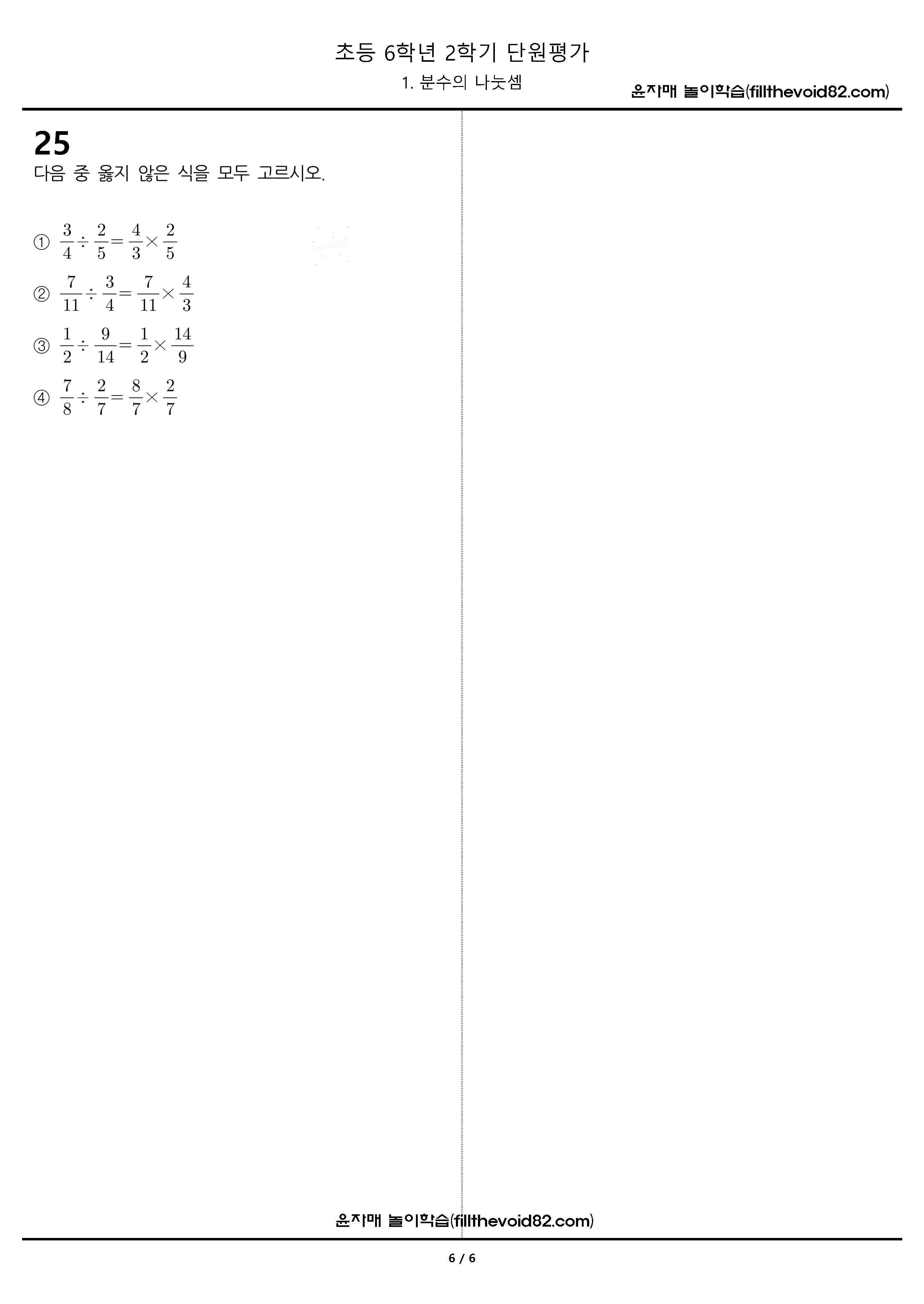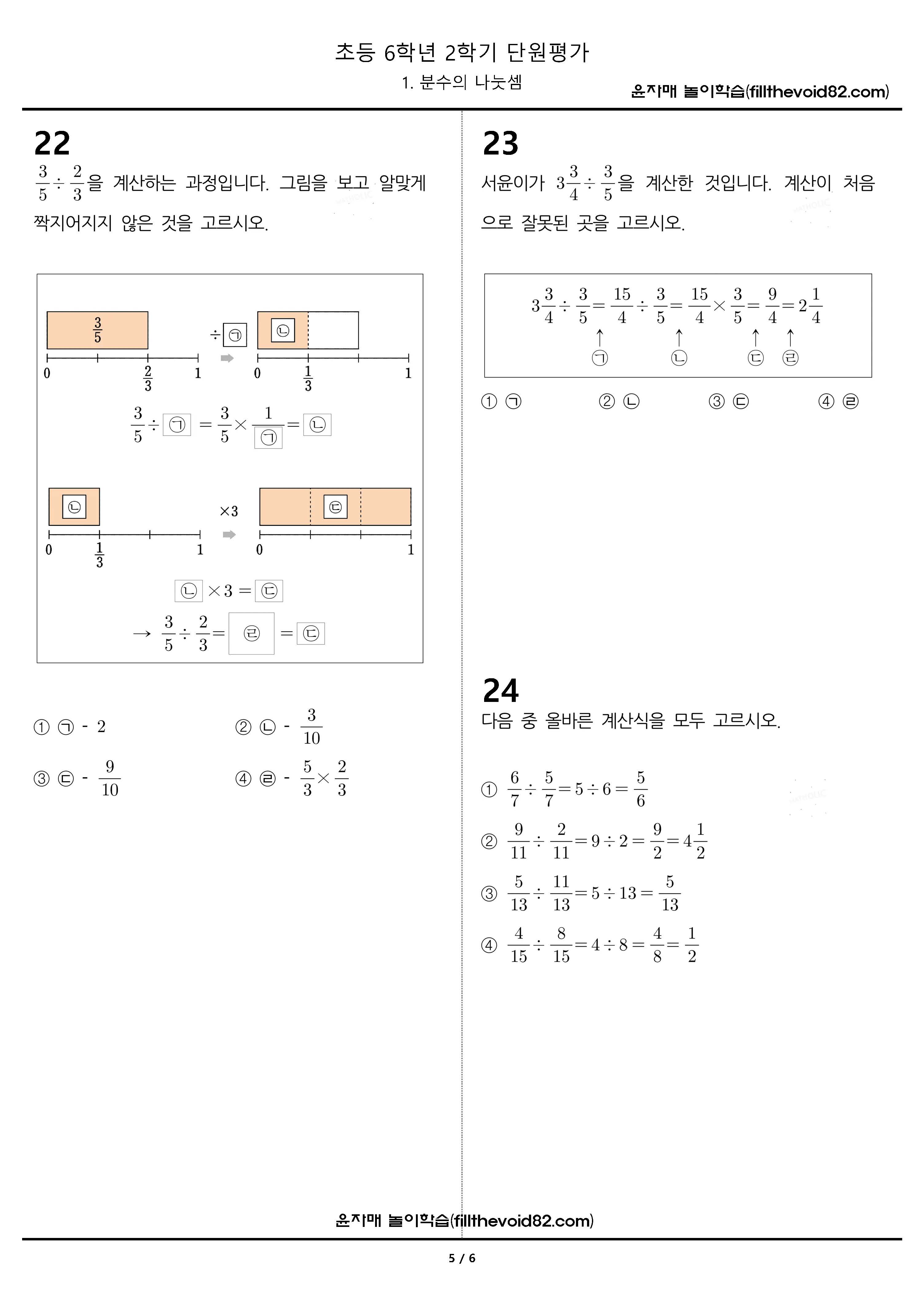 무료학습지) 초등단원평가) 초등 6학년 2학기 - 1. 분수의 나눗셈
