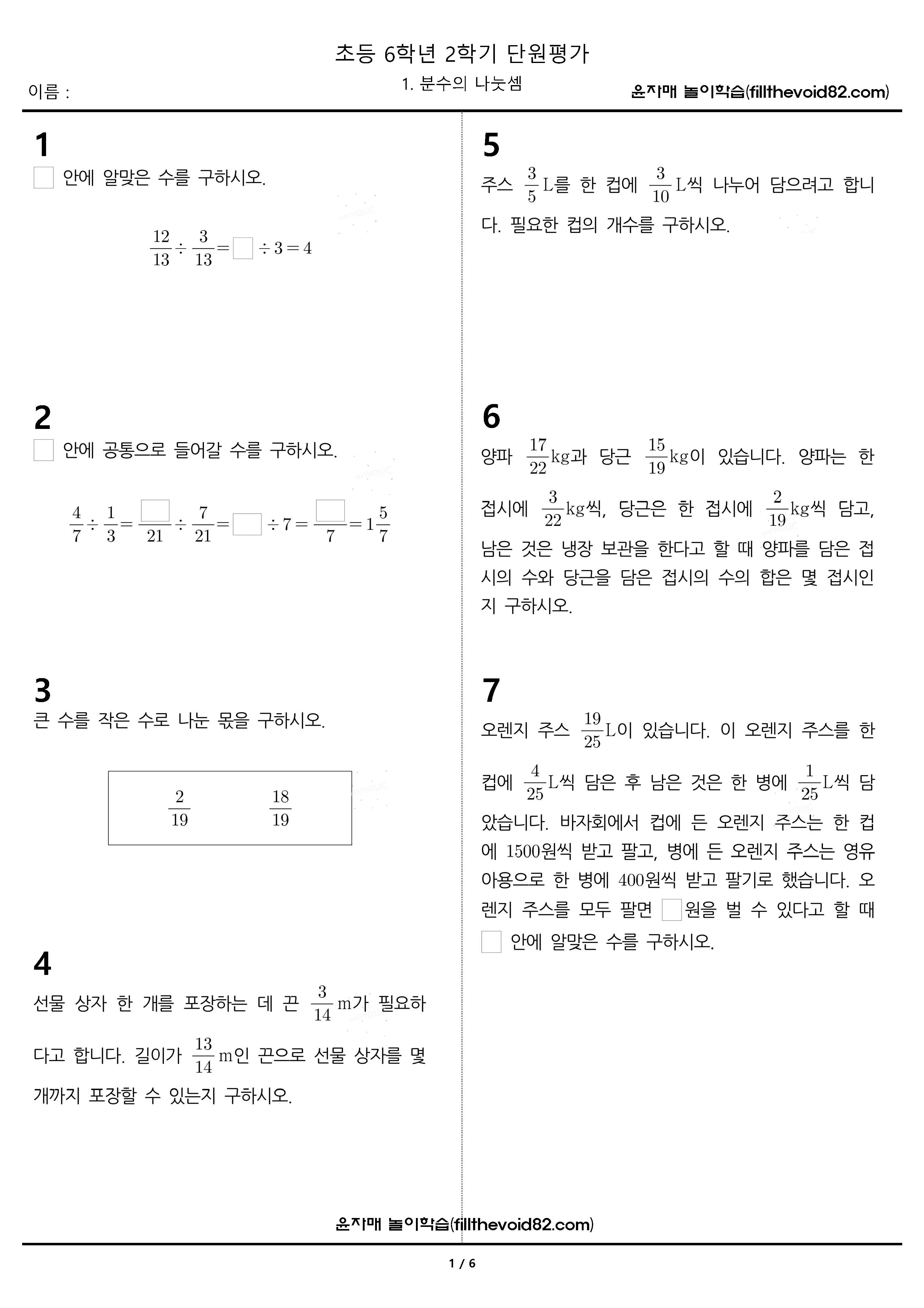 초등 6학년 2학기 1단원을 평가 할 수 있는 무료학습지입니다.