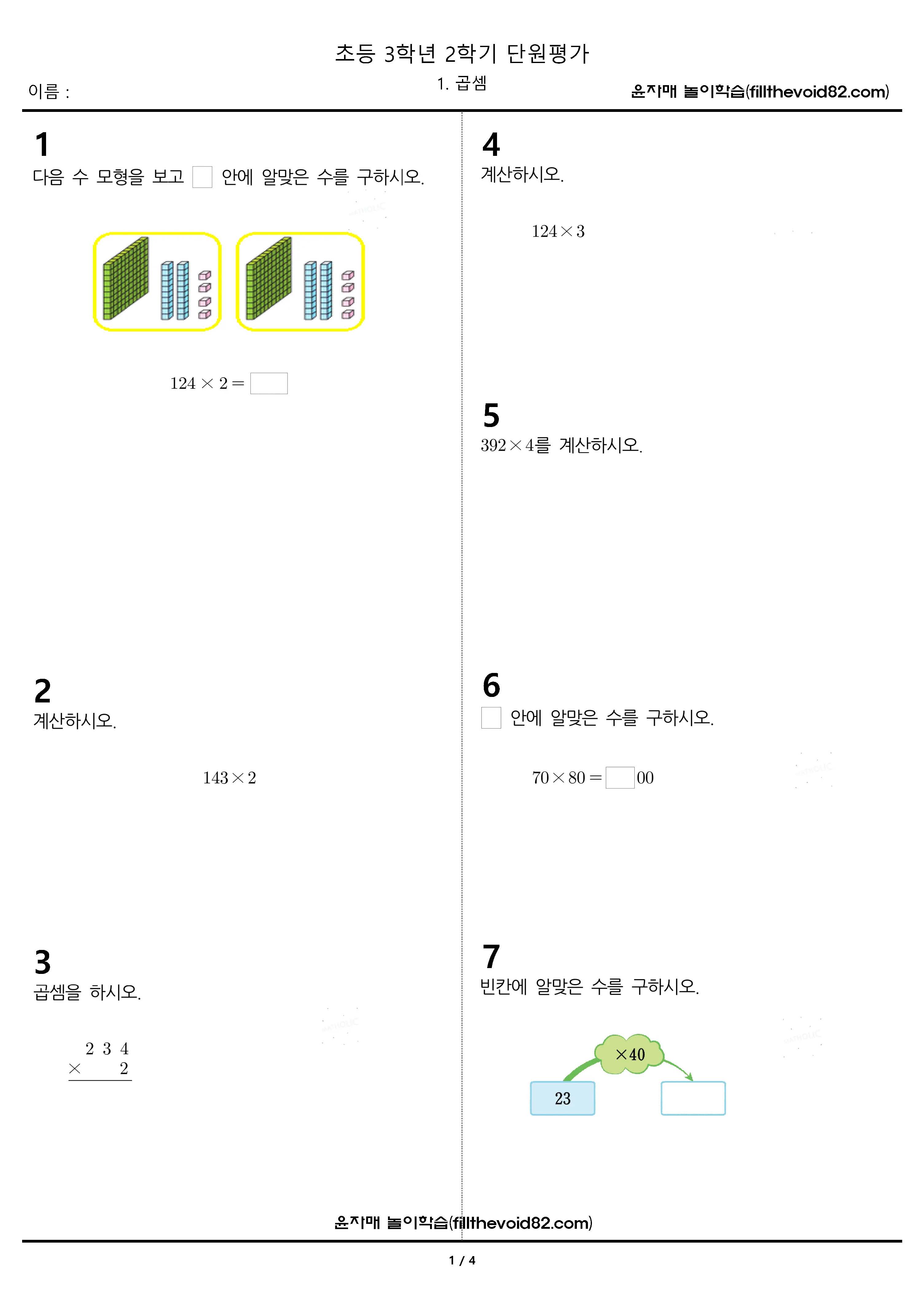 초등 3학년 2학기 1단원을 평가 할 수 있는 무료학습지입니다.