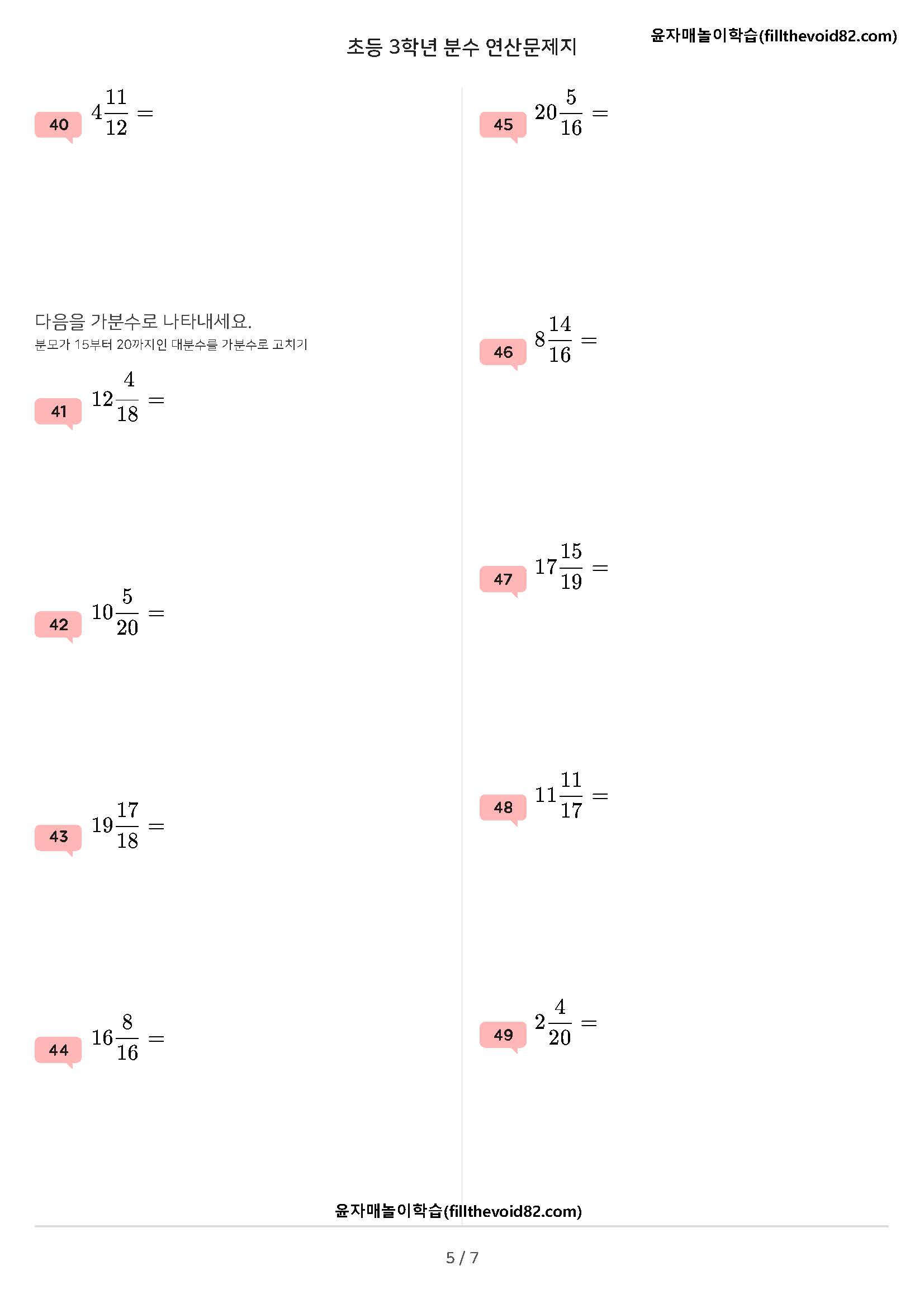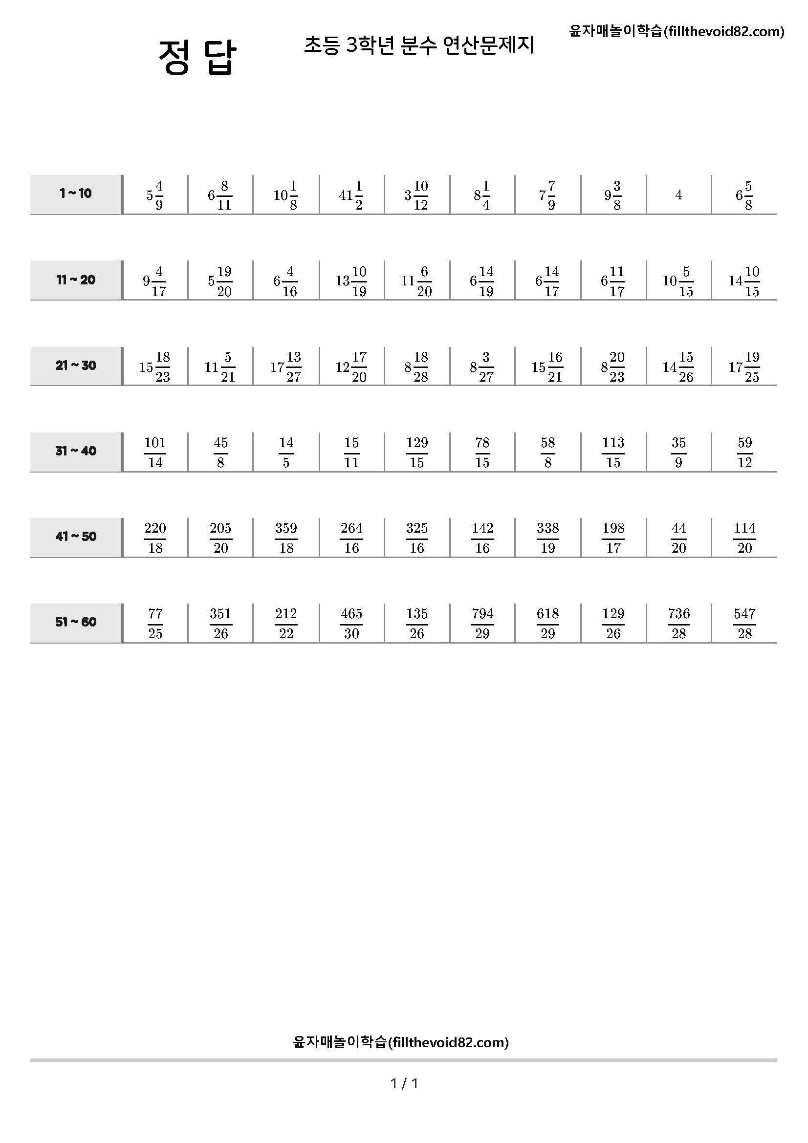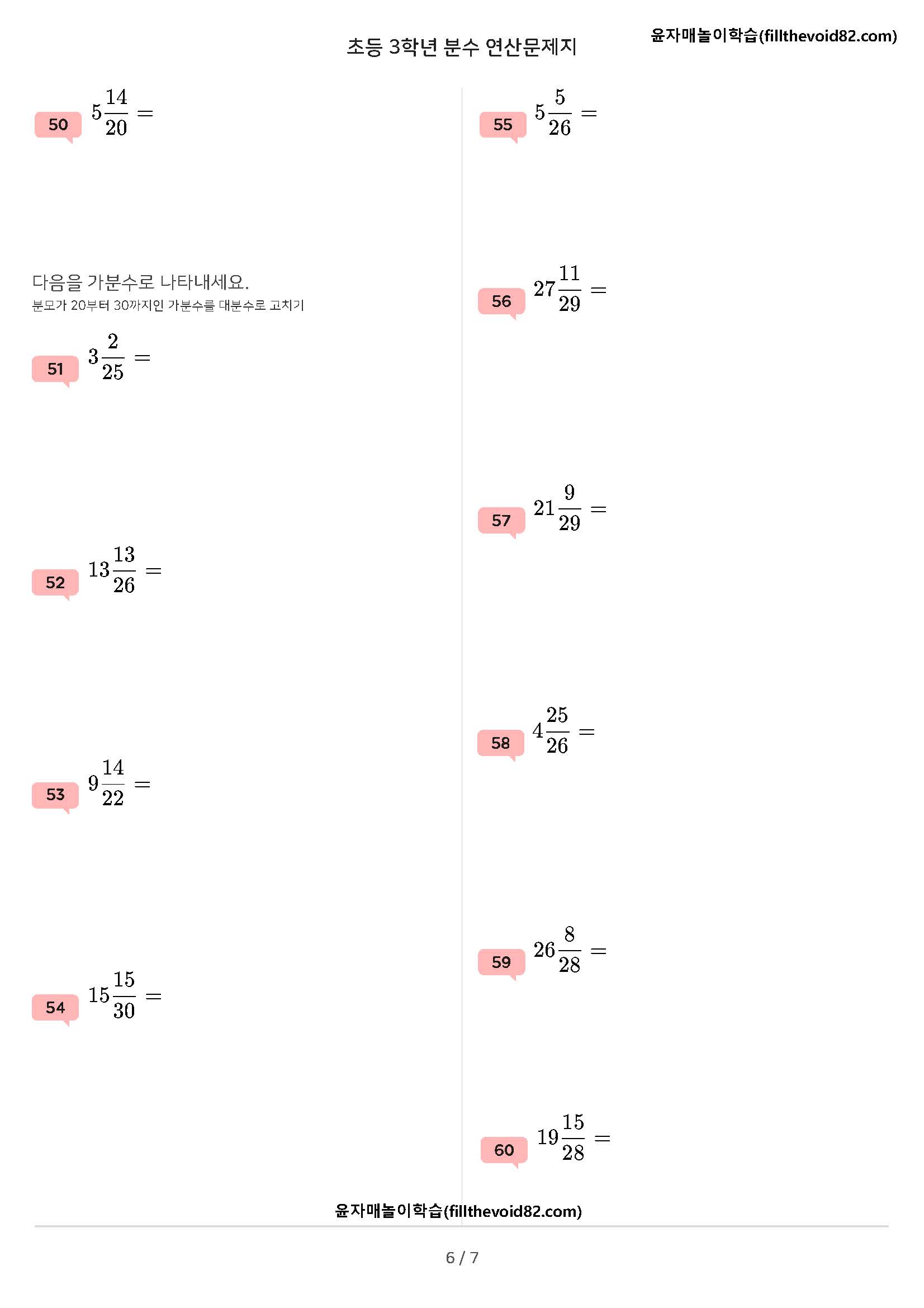 여러 유형의 분수문제 60문제 입니다. 하, 중 수준의 문제들 입니다.