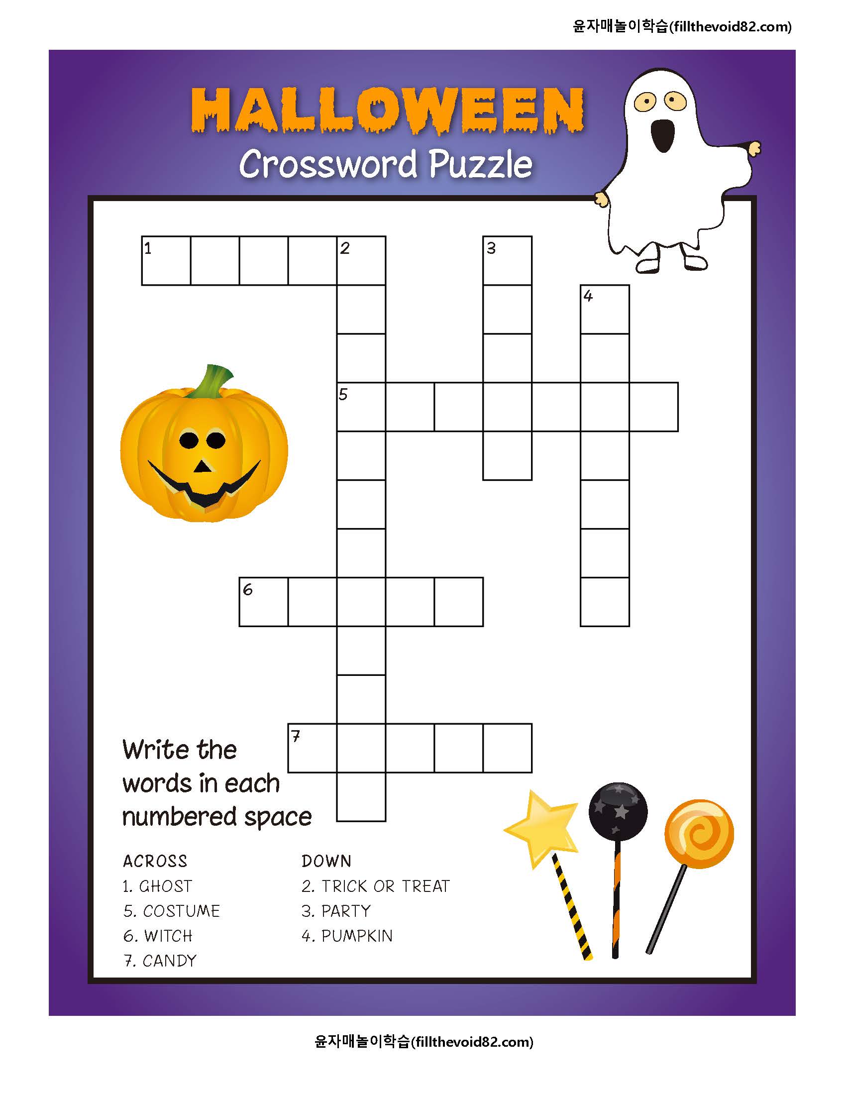 할로윈을 테마로 하는 크로스워드 퍼즐 활동지입니다. 각 학습지마다 난이도가 다르니 아이들의 수준에 맞는 학습지로 즐거운 할로윈게임을 즐겨보시길 바랍니다.