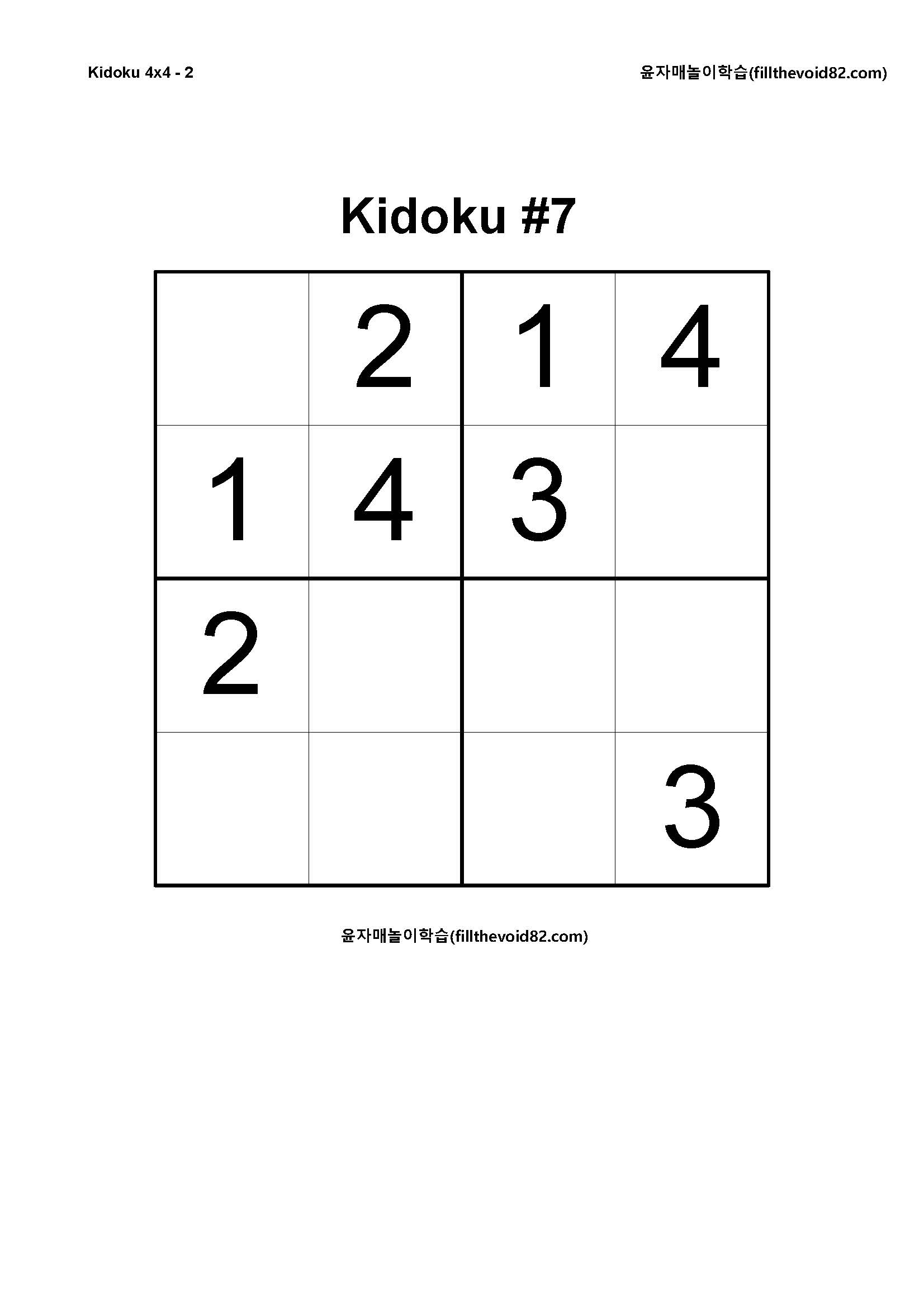 유아들을 위한 4x4 스도쿠입니다.