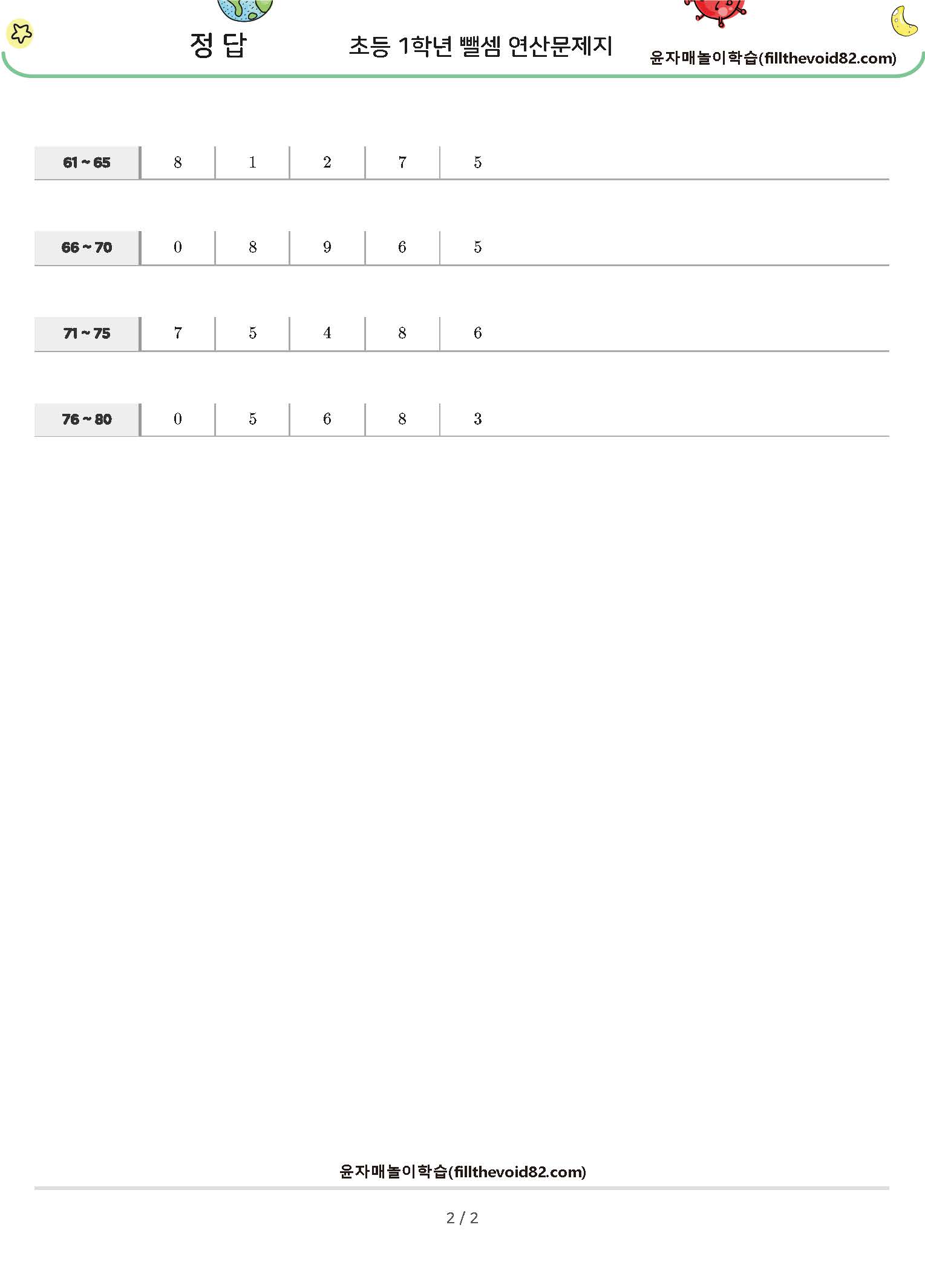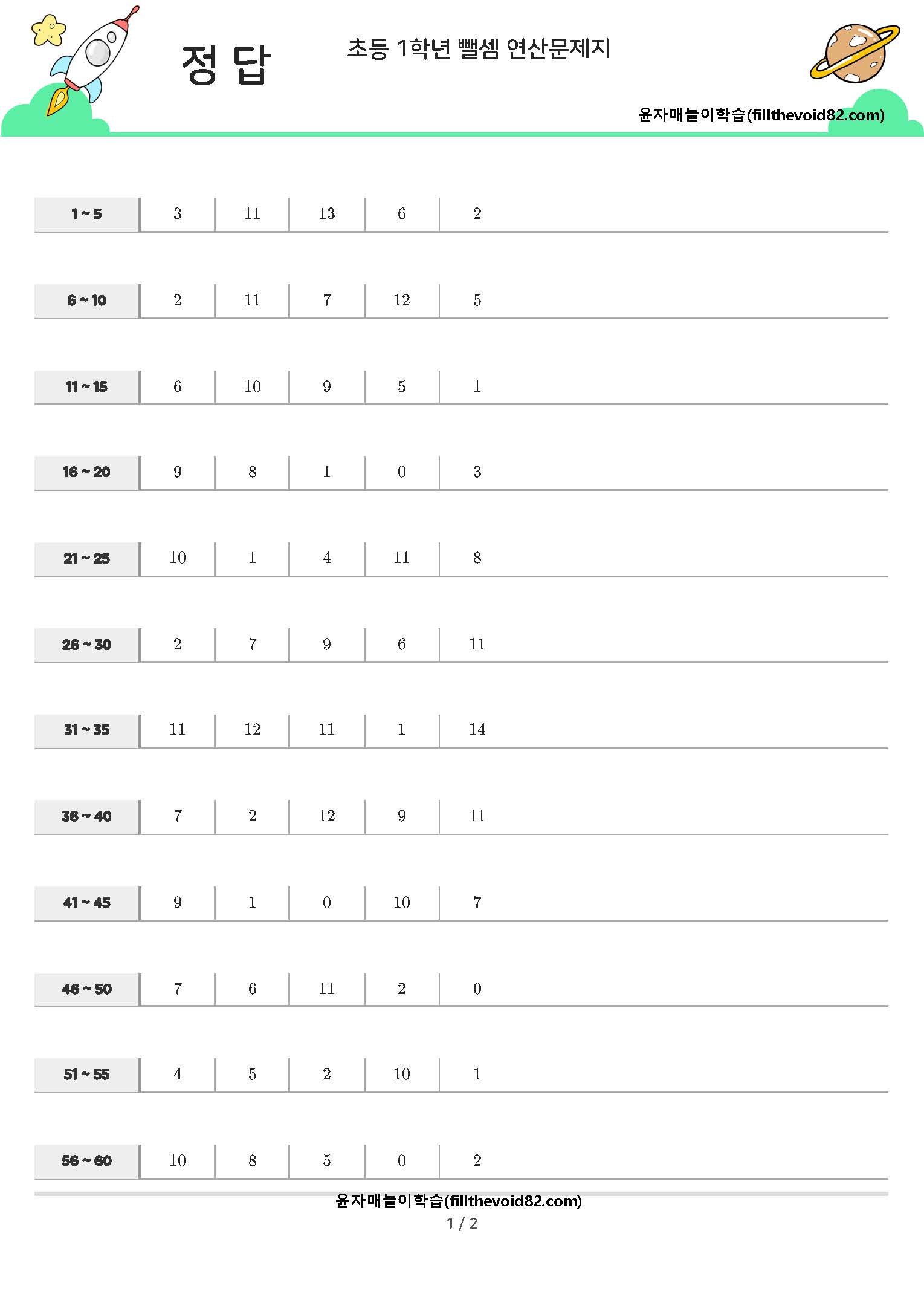 | 초등수학) 초등 1학년 덧셈 연산문제지(더하기 2~10) (0) | 2023.03.21 |