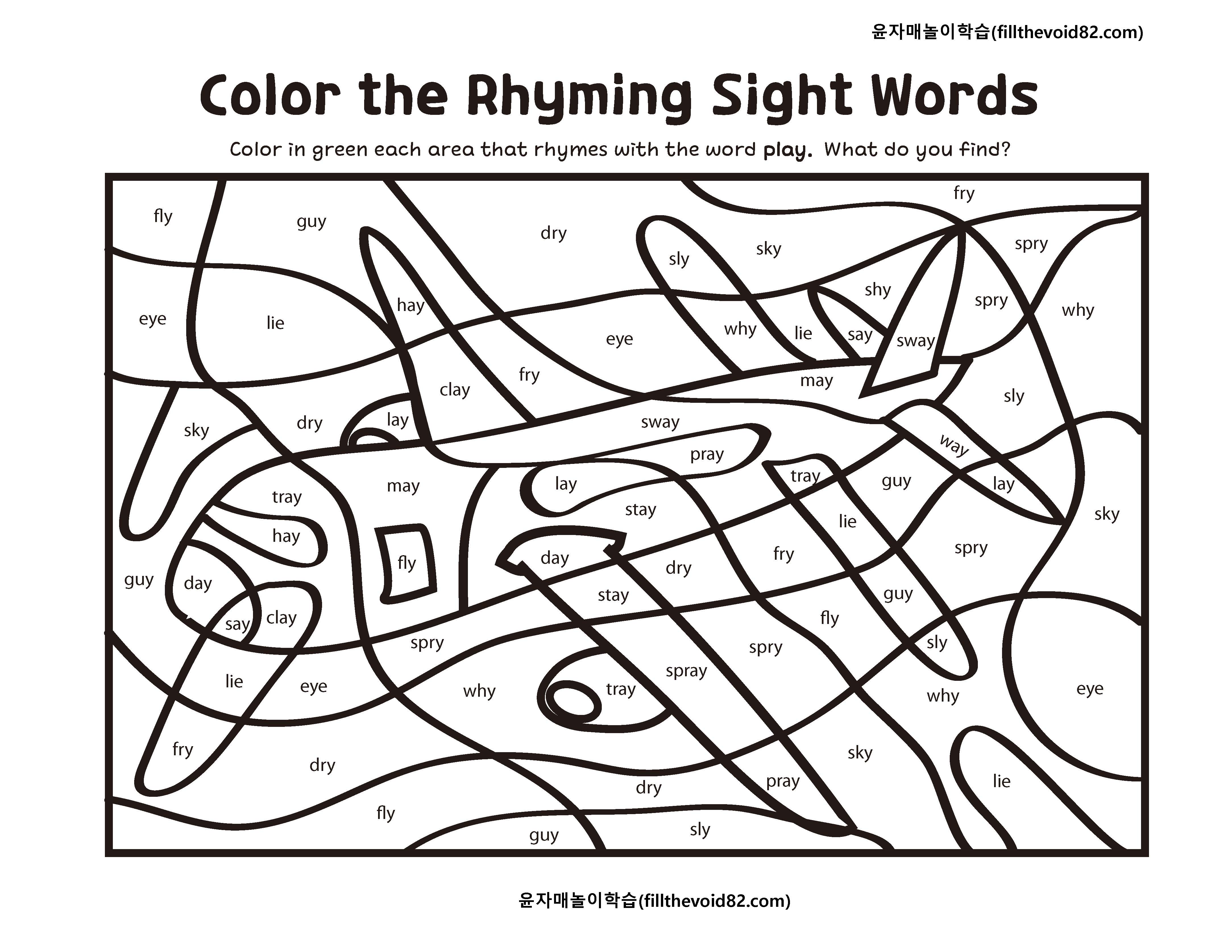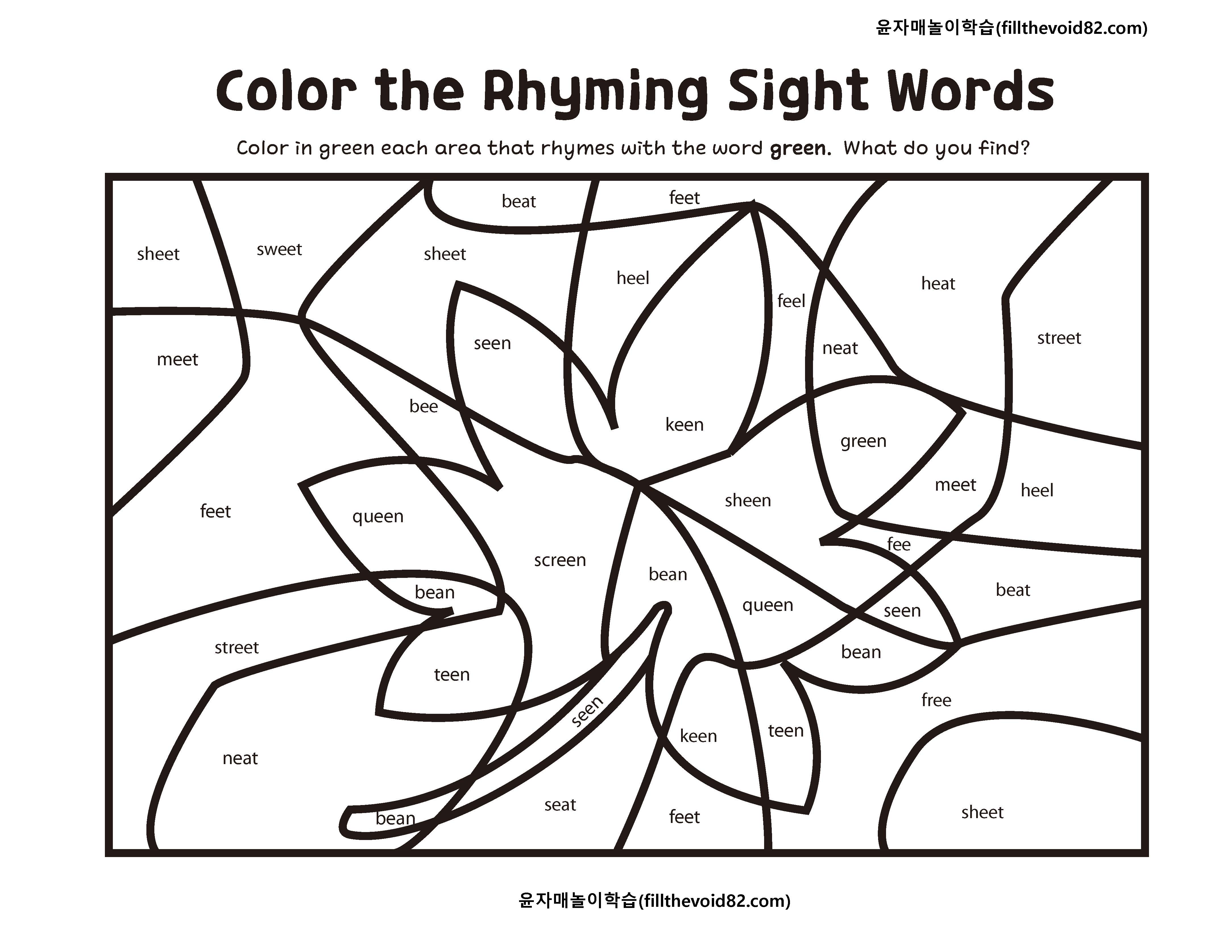 같은 끝소리를 가진 사이트워드를 찾아 색칠해보는 활동지입니다.
