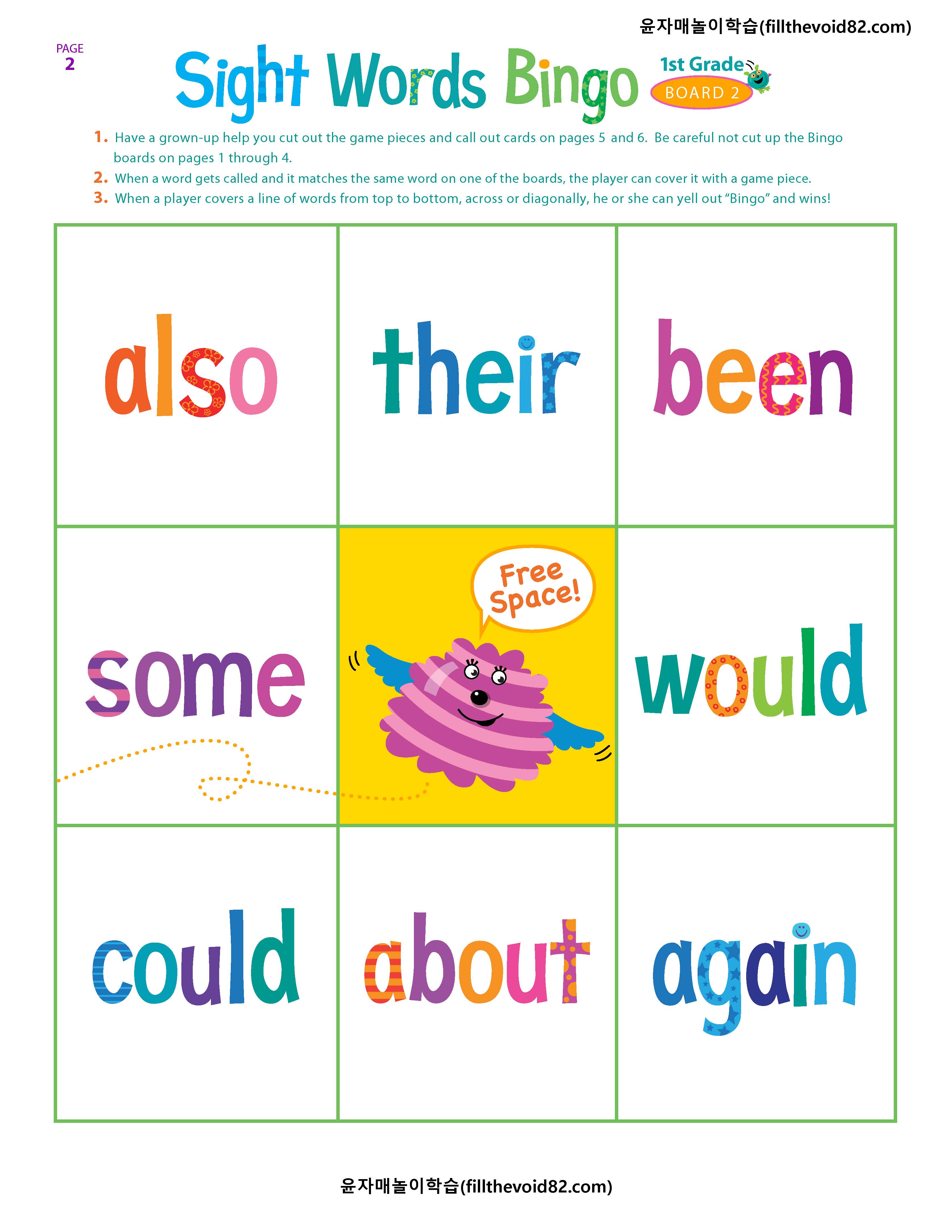 빙고게임을 통해 재밌게 사이트워드를 익힐 수 있는 게임입니다.