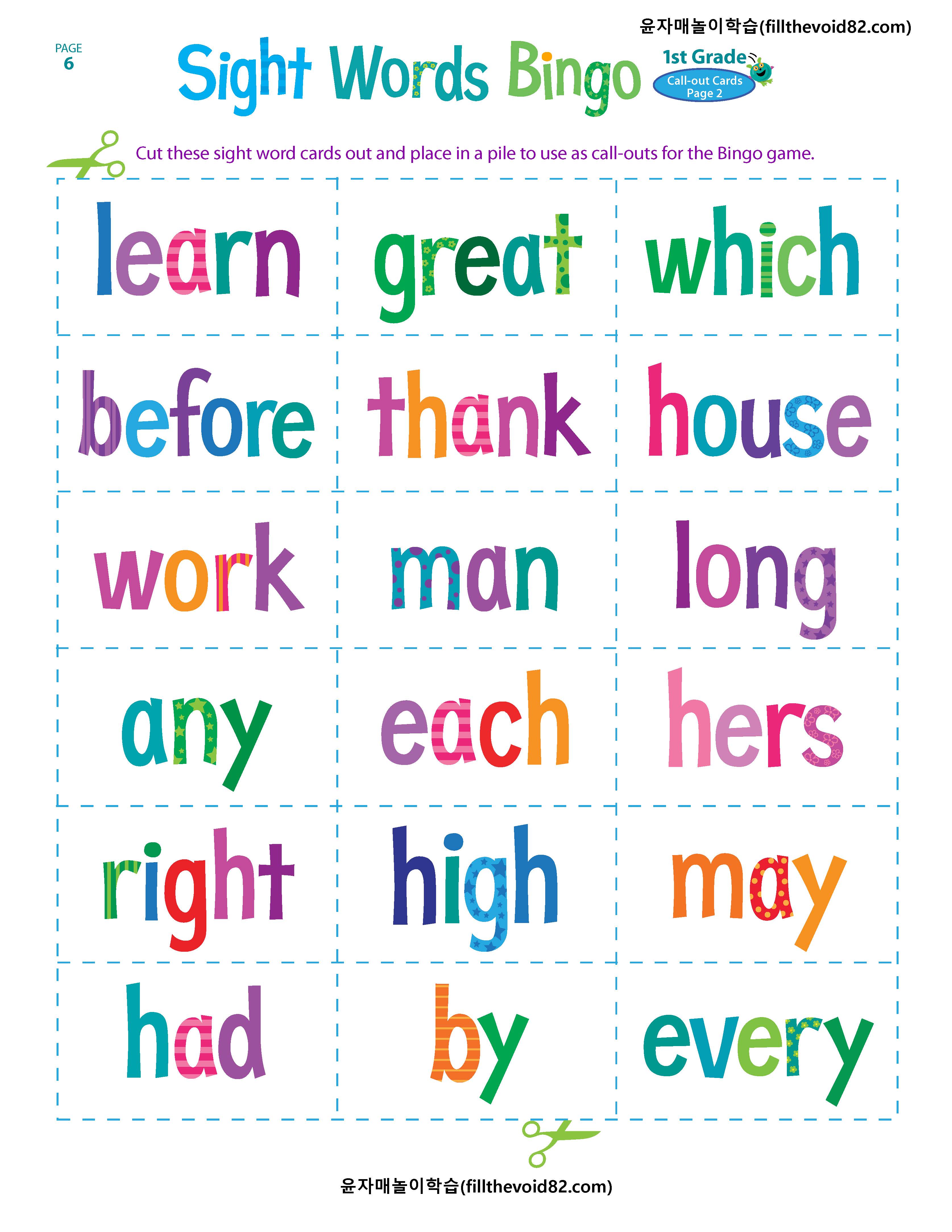 1. 페이지 5와 페이지 6의 사이트 워드 카드를 잘라 낸 후, 섞어 뒤집어 더미에 놓습니다.