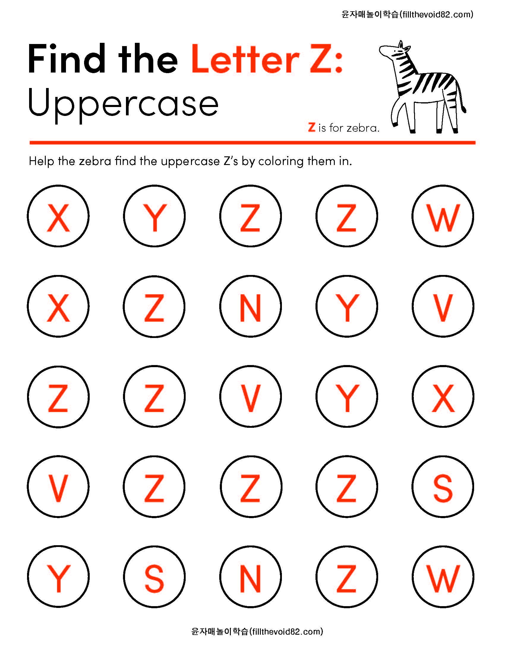 영어학습지) 알파벳 대문자 찾기(R~Z)