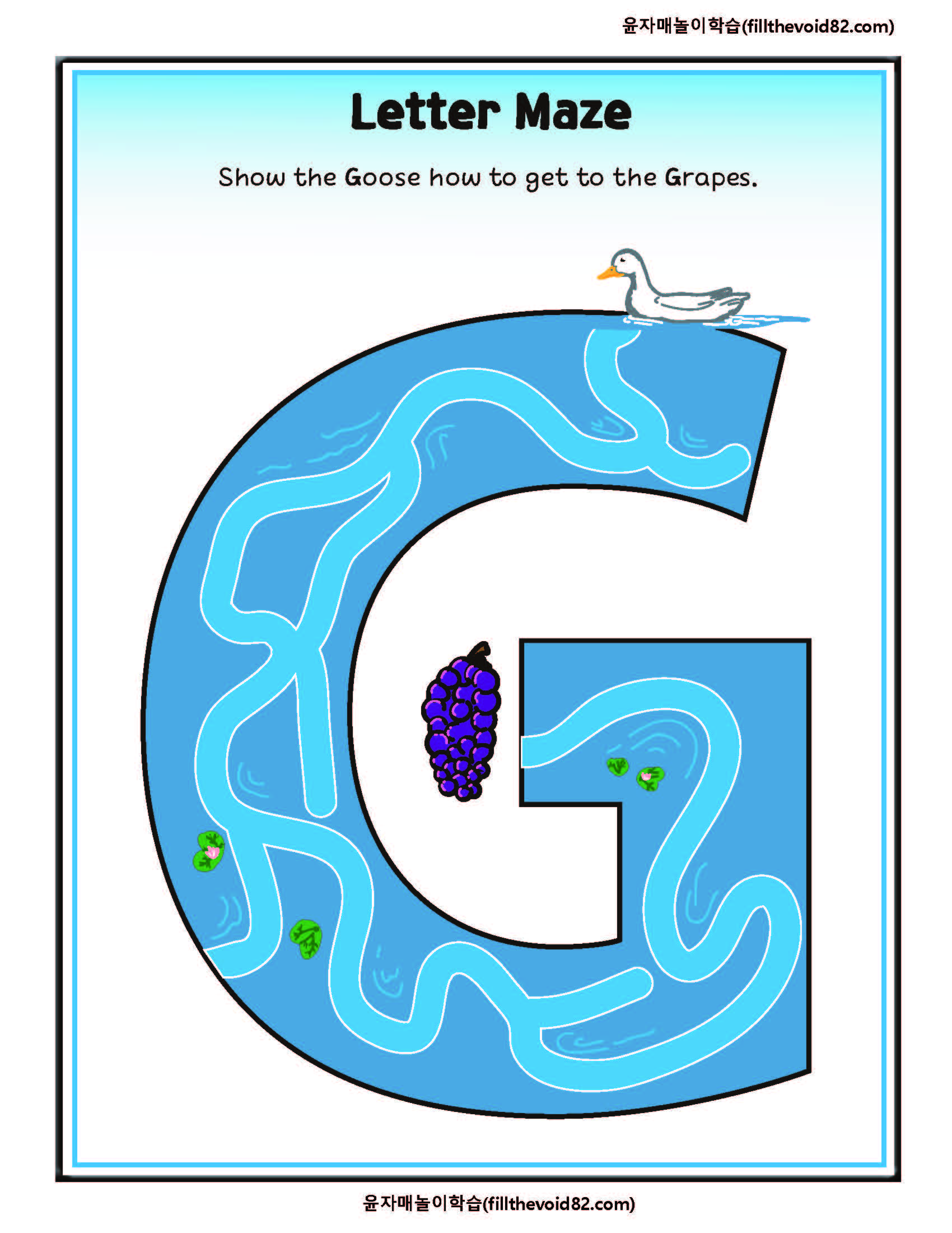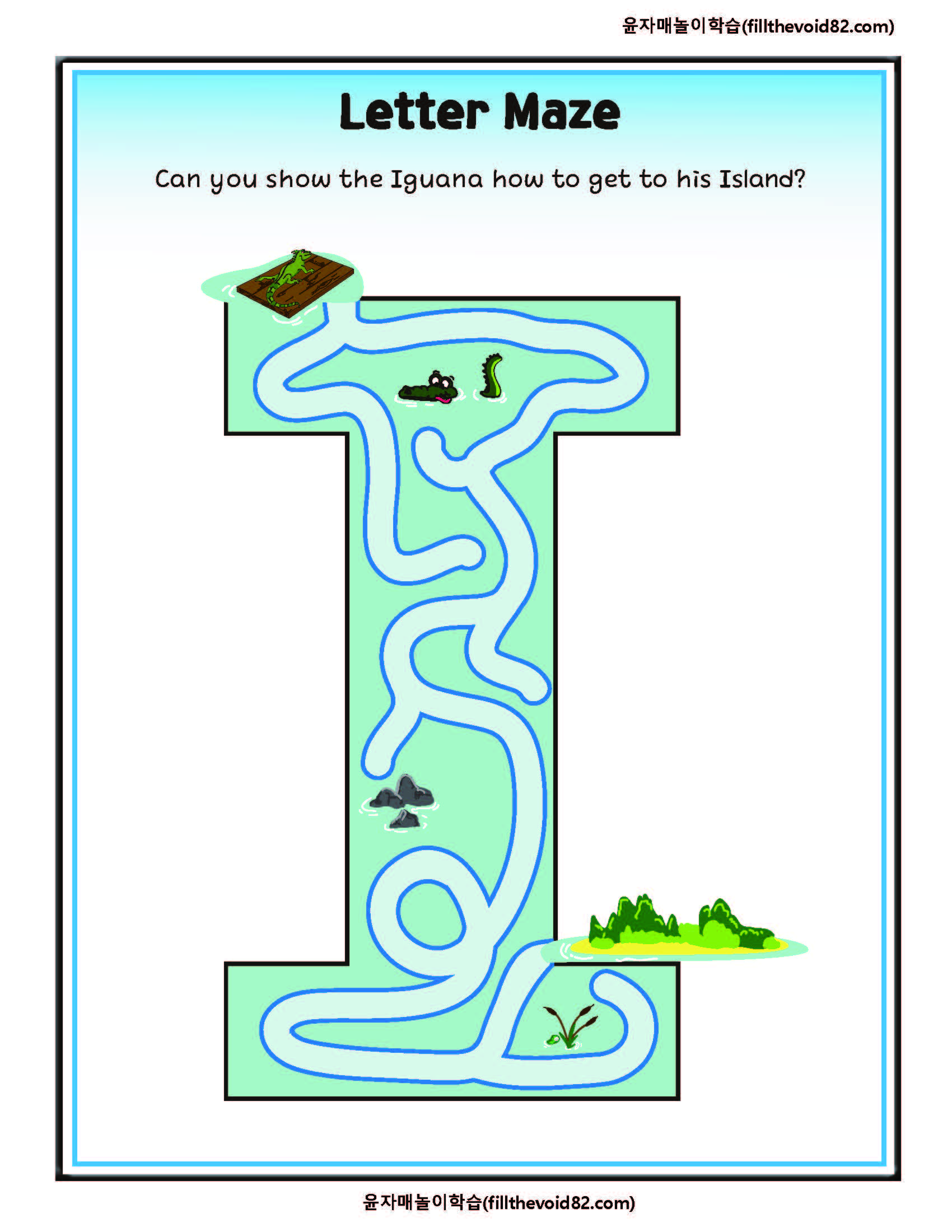 알파벳 미로를 풀어내며 알파벳을 익힐 수 있는 활동지입니다.