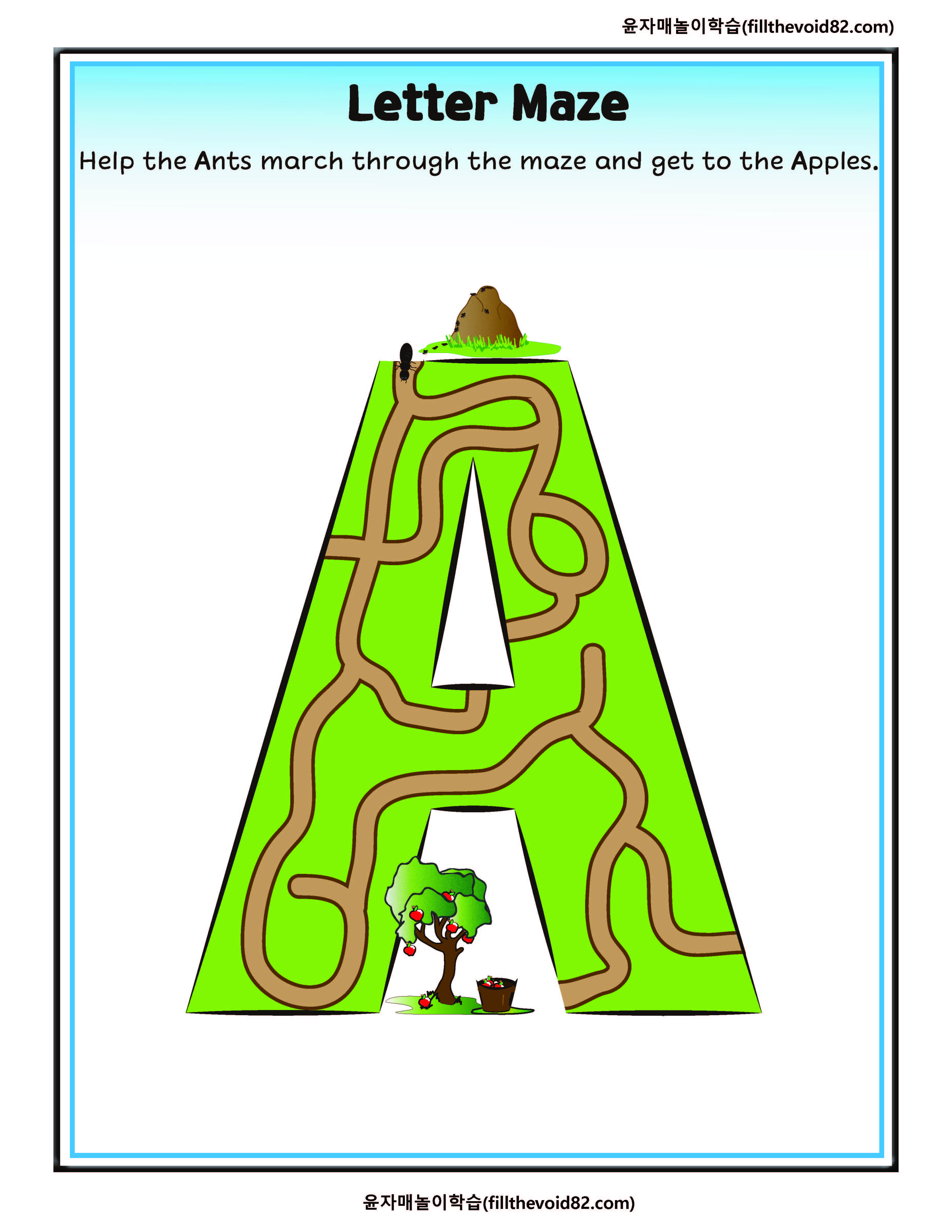 알파벳 미로를 풀어내며 알파벳을 익힐 수 있는 활동지입니다.