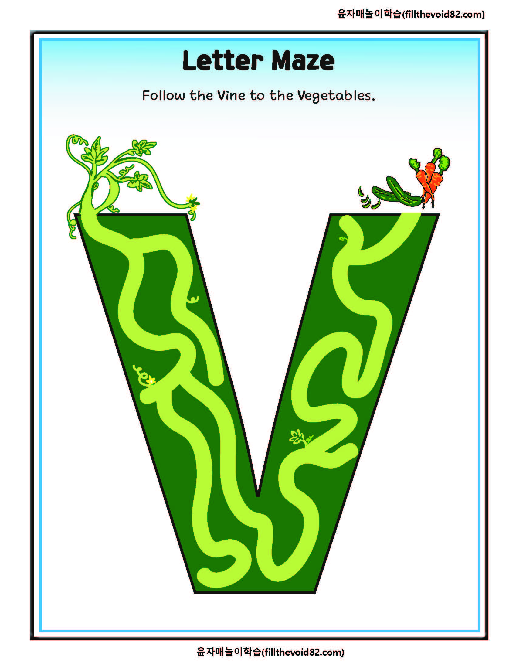 알파벳 미로를 풀어내며 알파벳을 익힐 수 있는 활동지입니다.