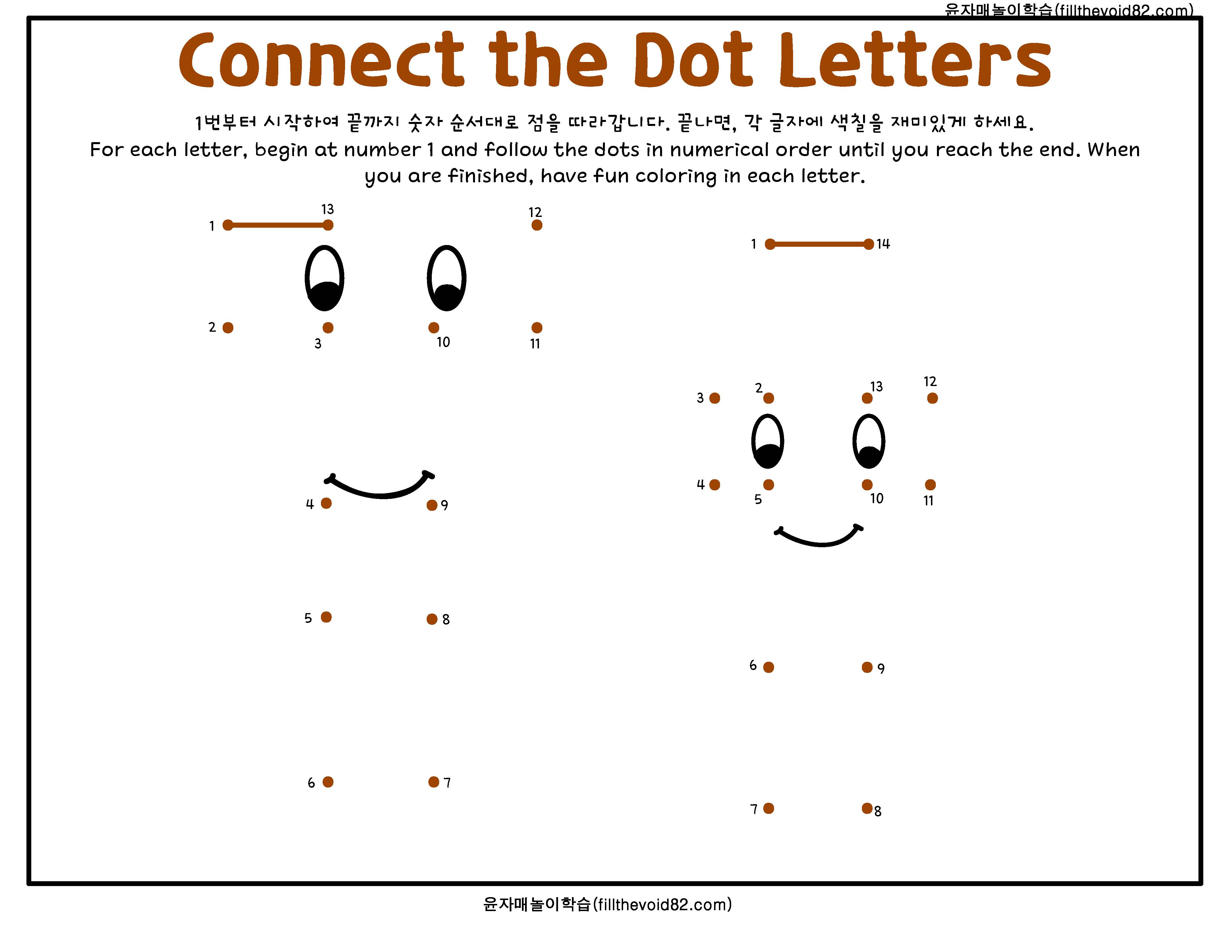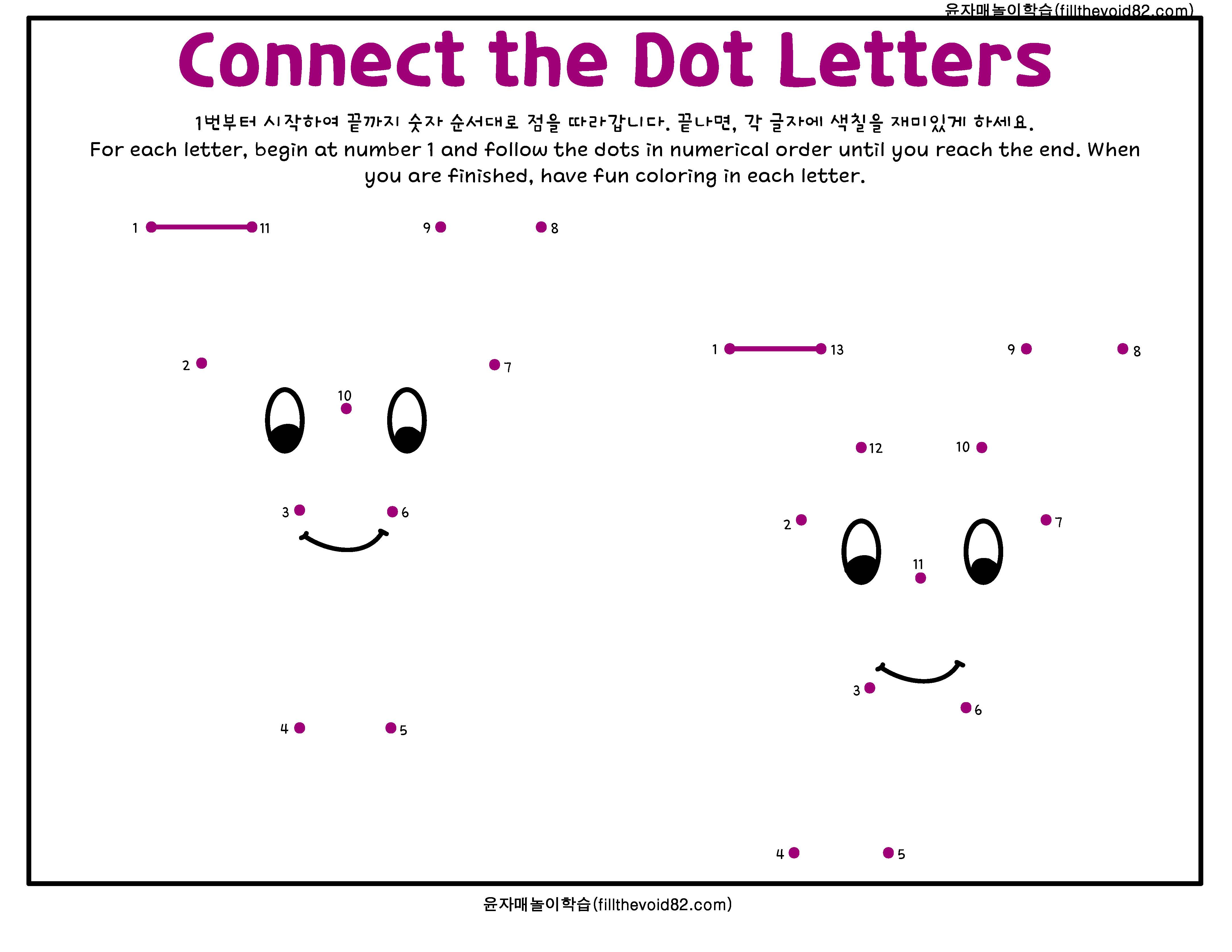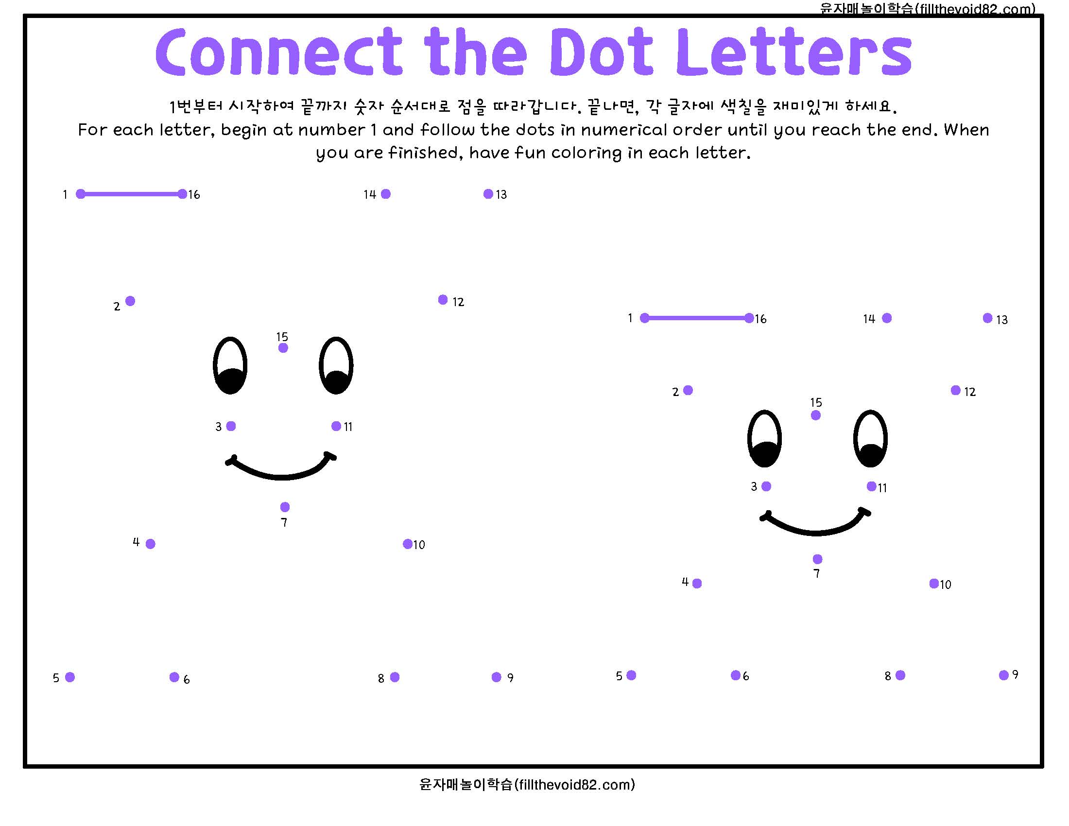 숫자 순서대로 점을 잇고, 나타나는 알파벳을 색칠하며 익혀보는 활동지입니다.