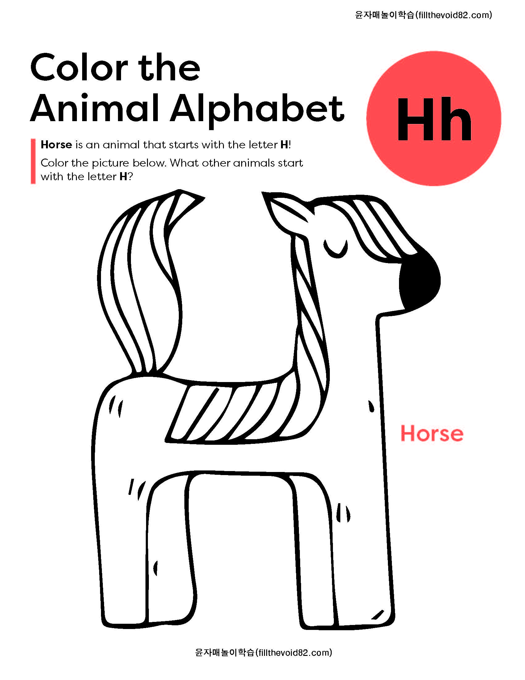 동물모양 알파벳 'A~H'를 색칠해 보는 알파벳 익히기 활동지입니다.