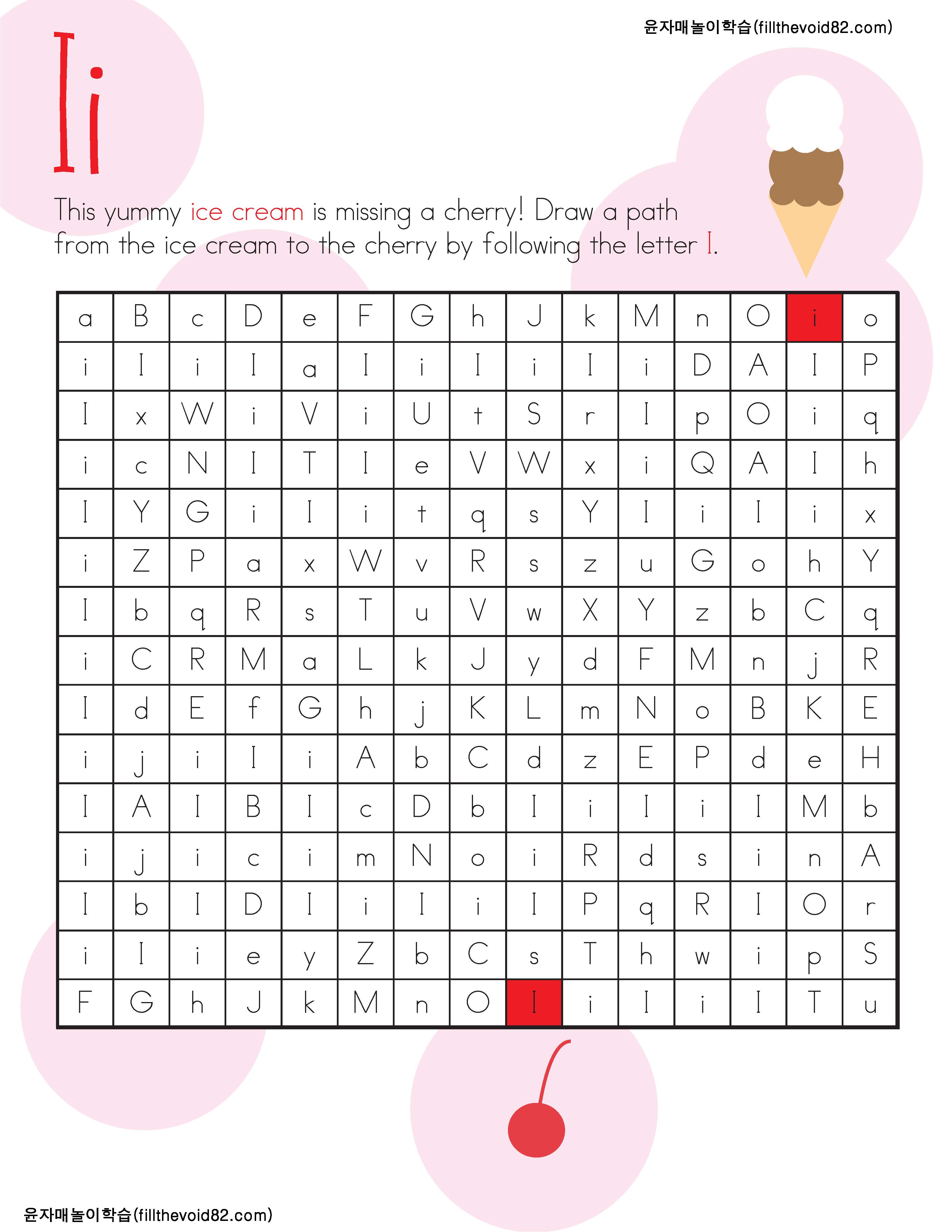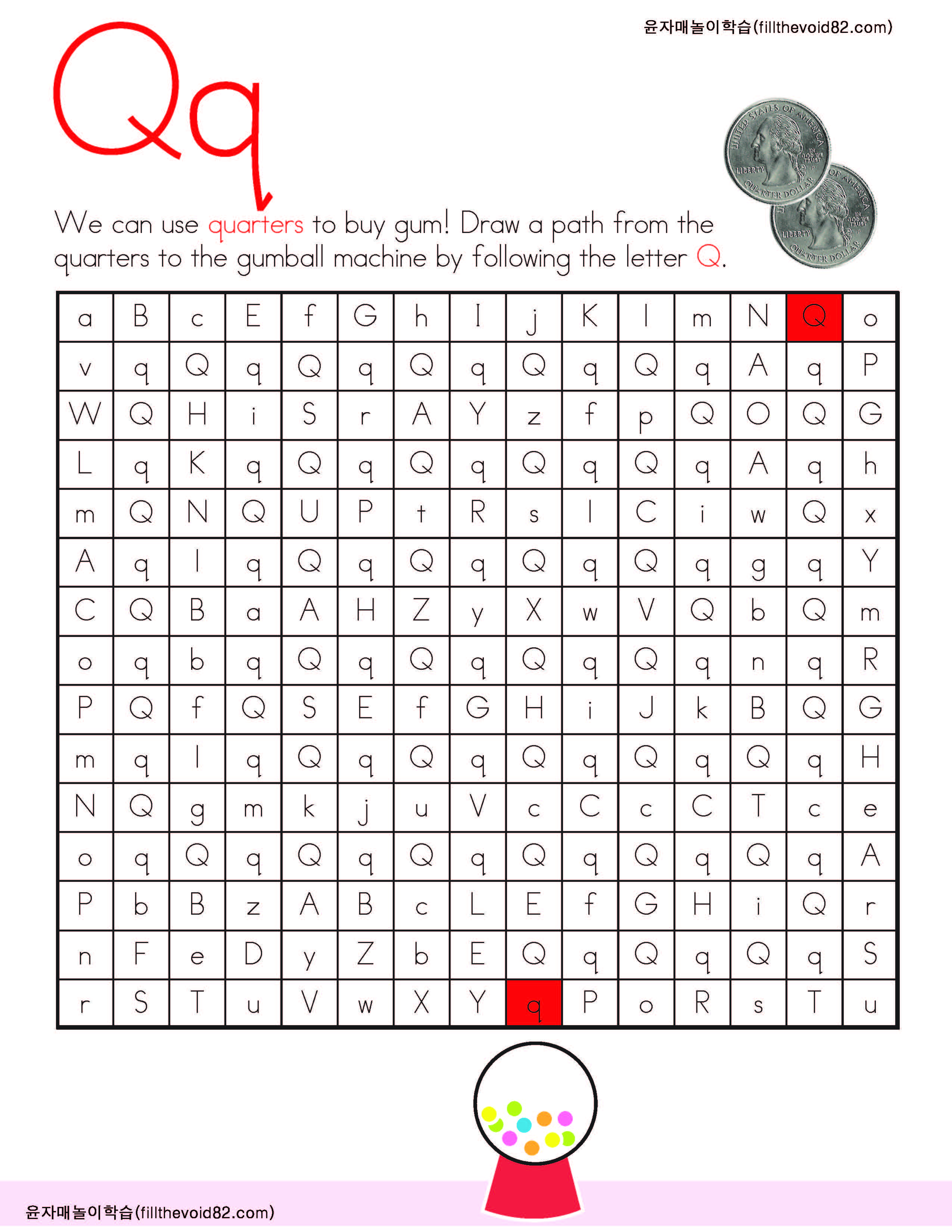 알파벳을 익힐 수 있는 알파벳 미로 학습지입니다.(I~Q)