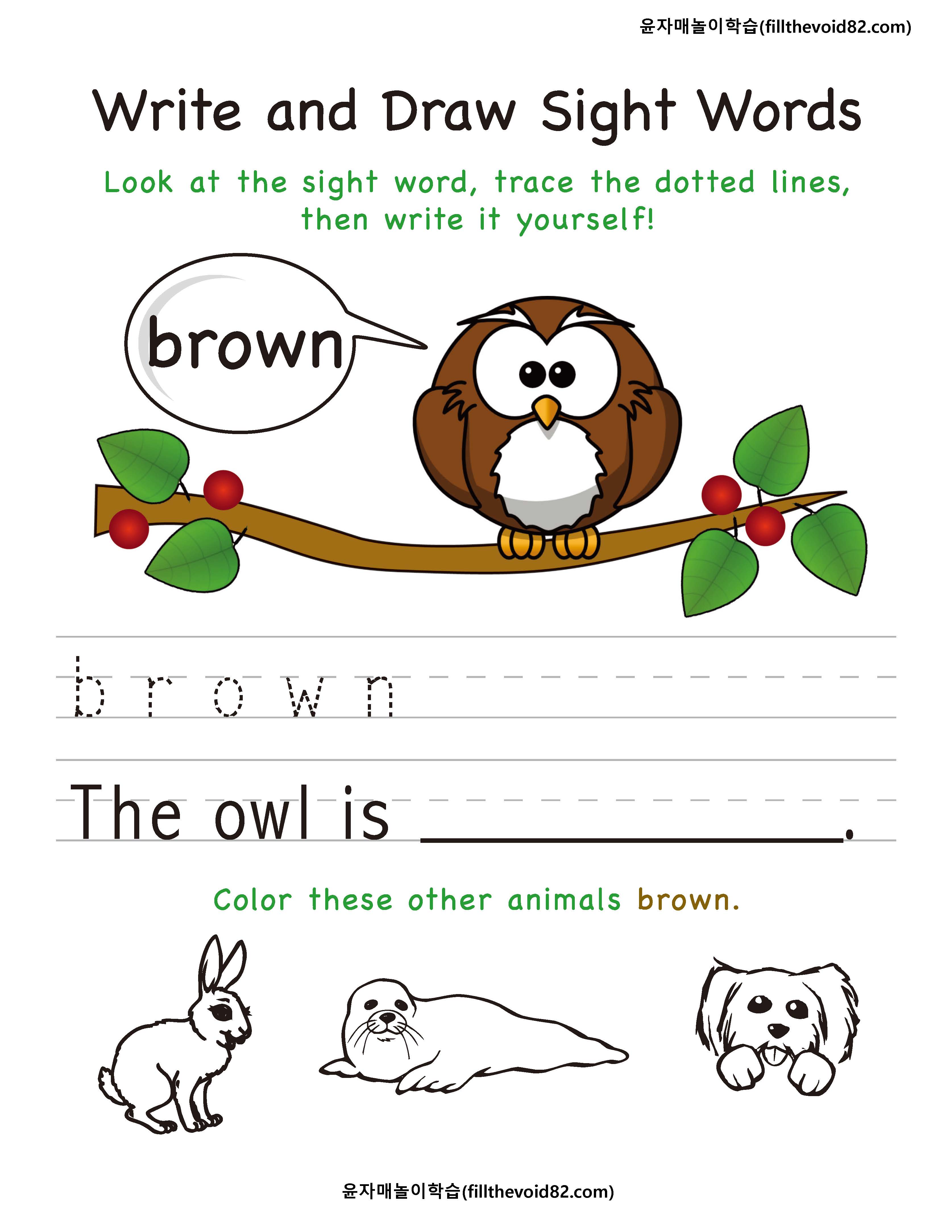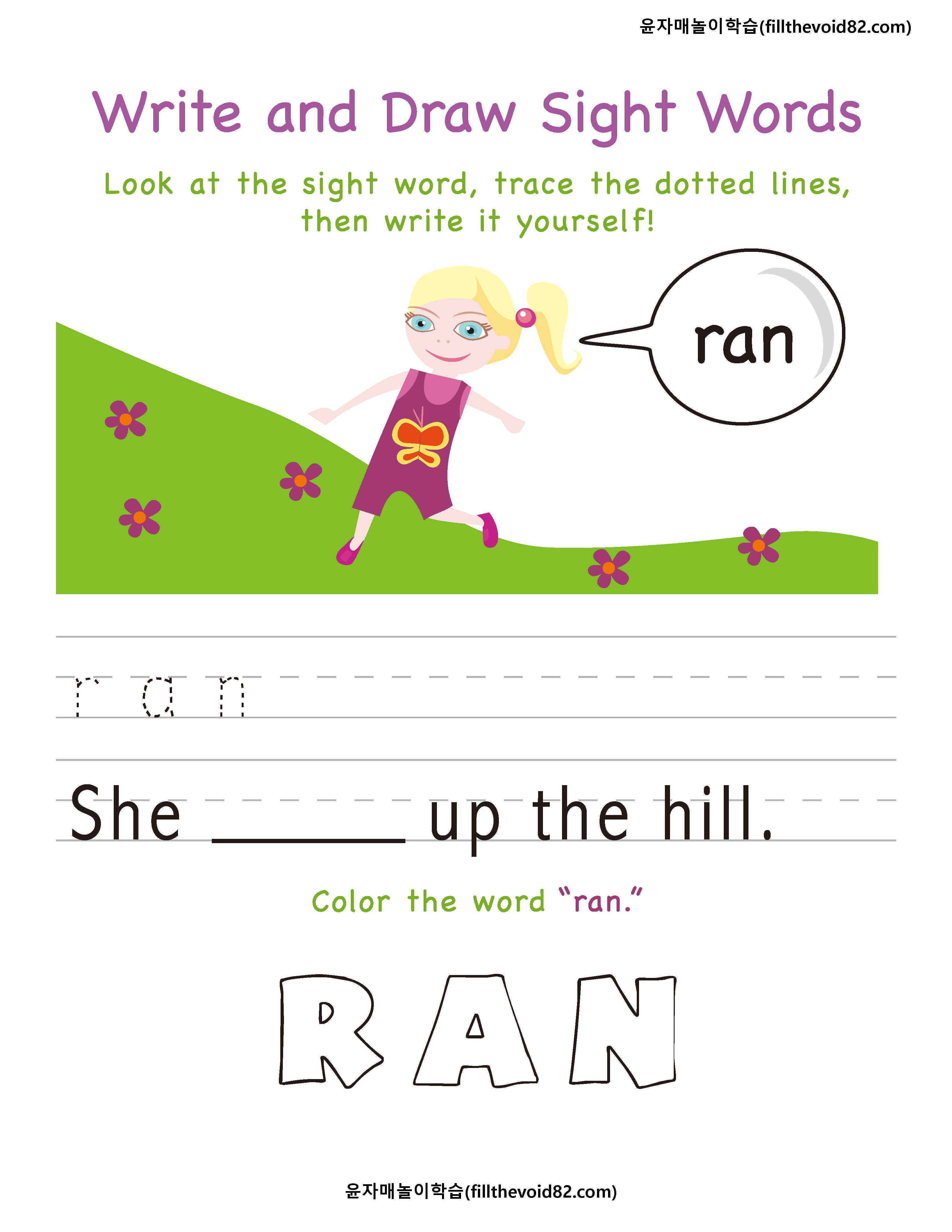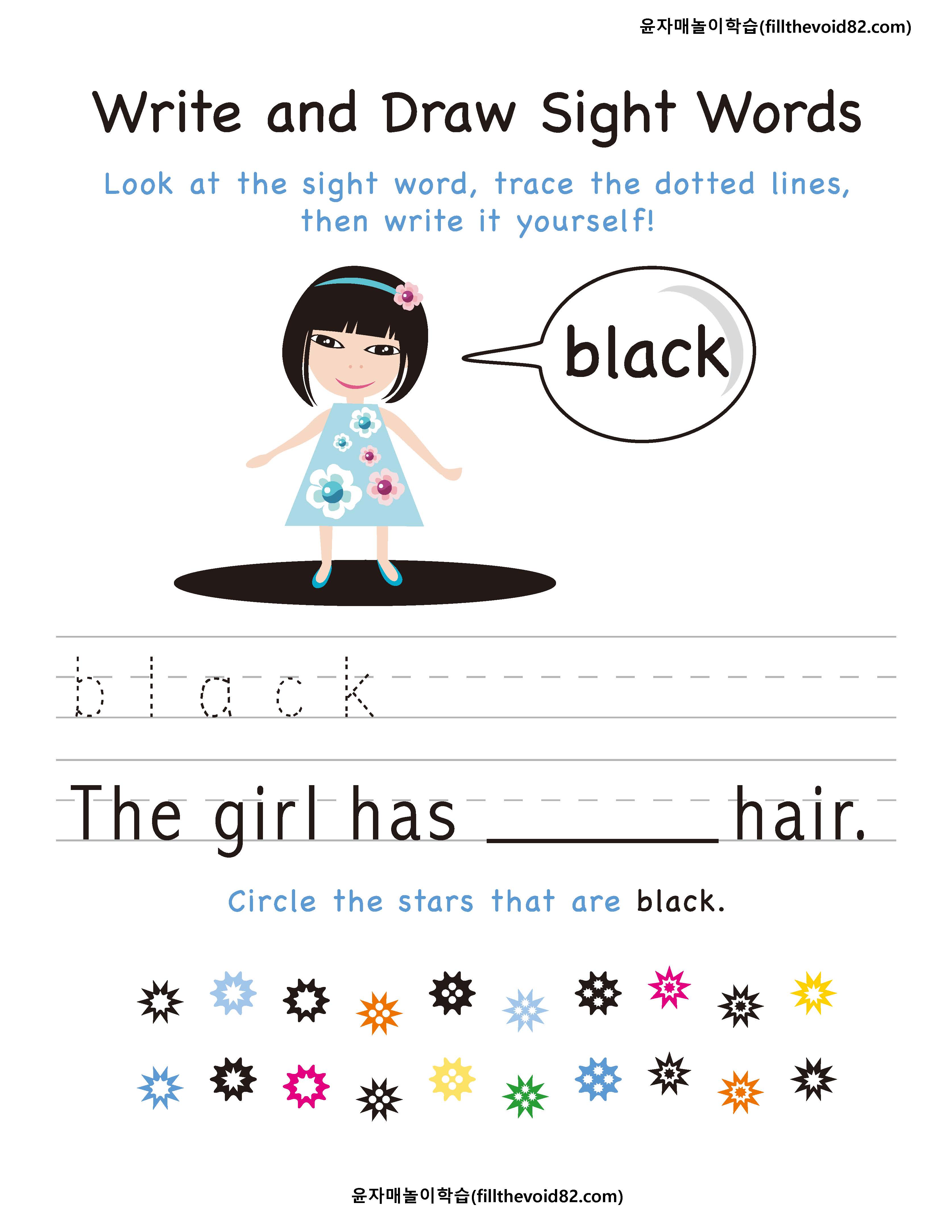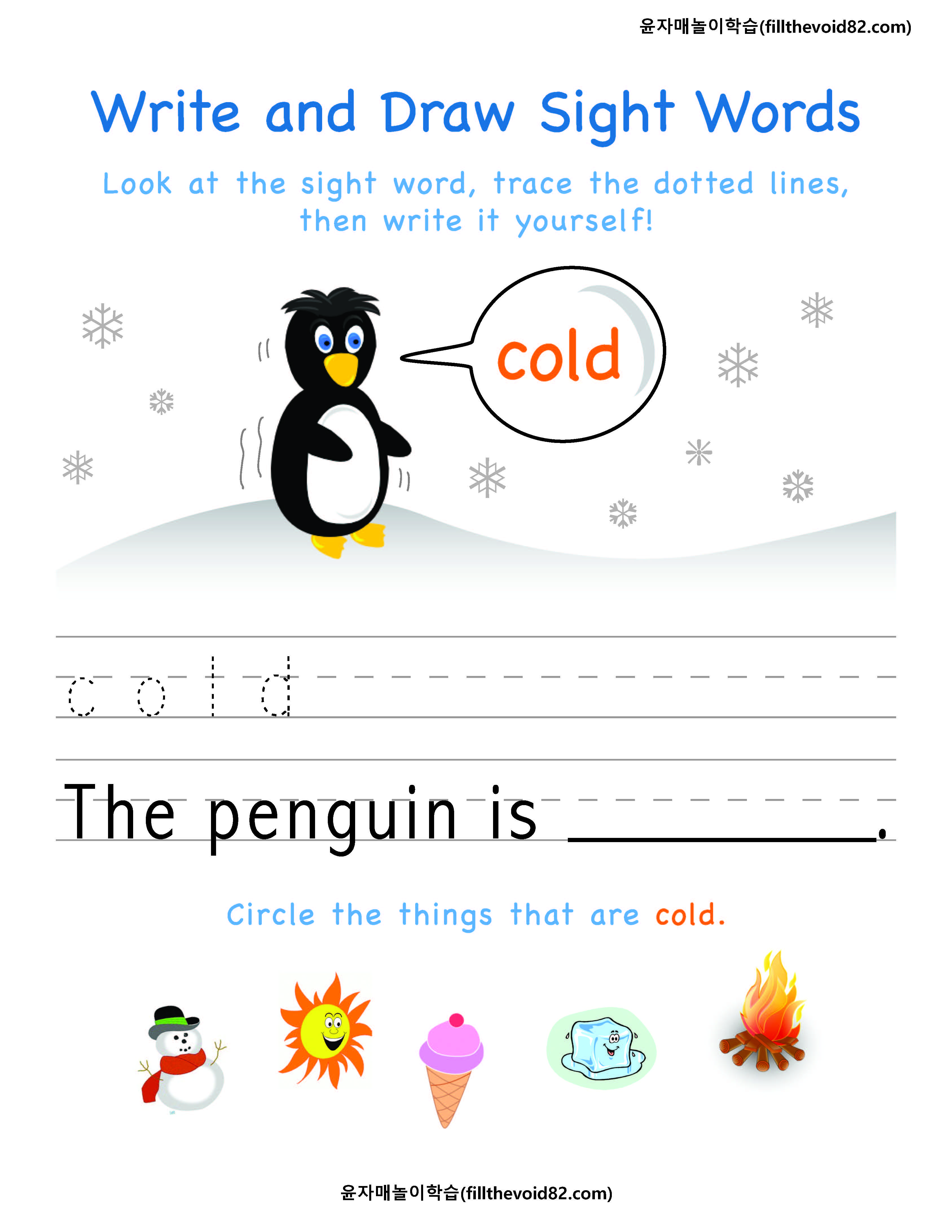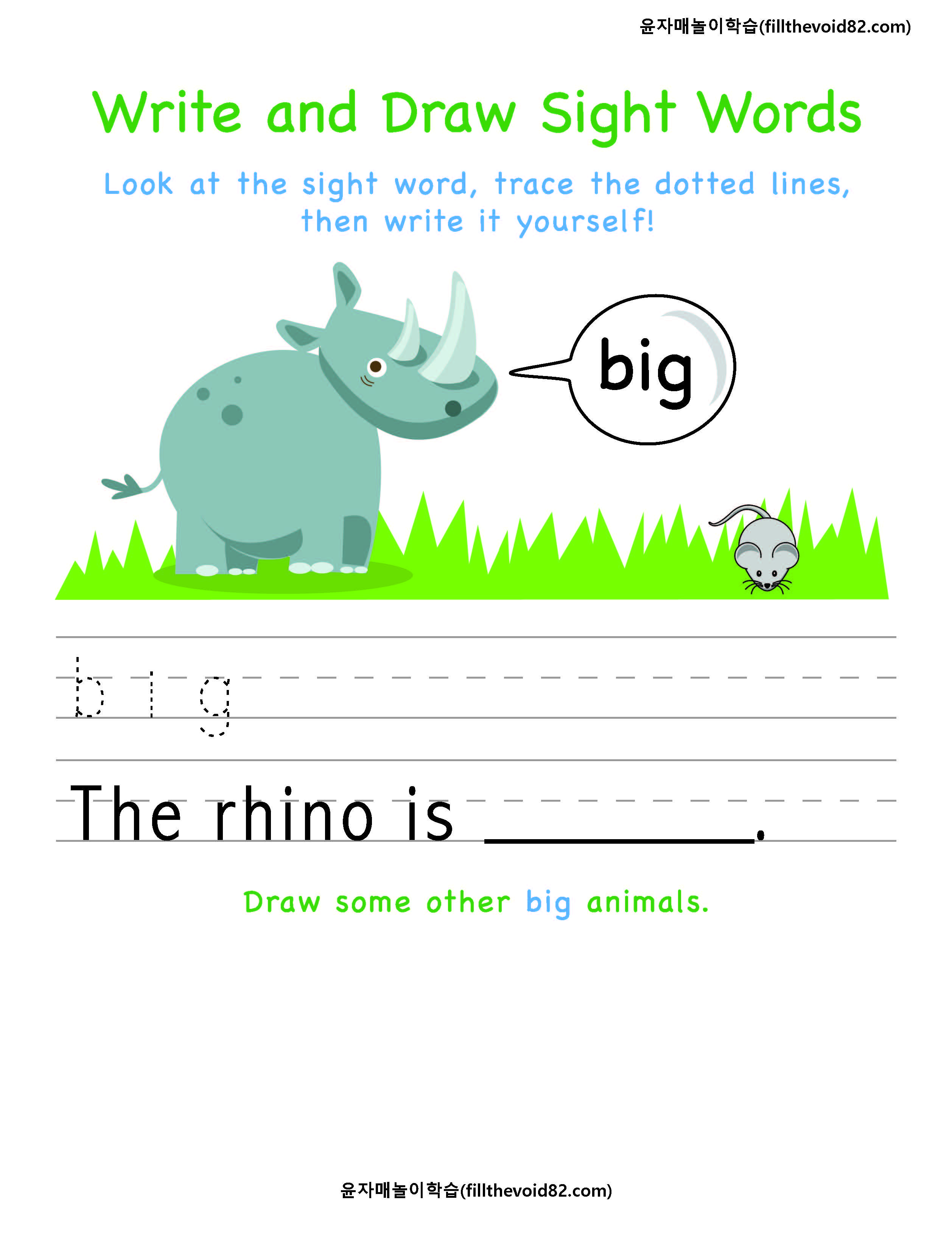 Sight words(사이트 워드)를 쓰고 그리며 익힐 수 있는 재미있는 활동지입니다.