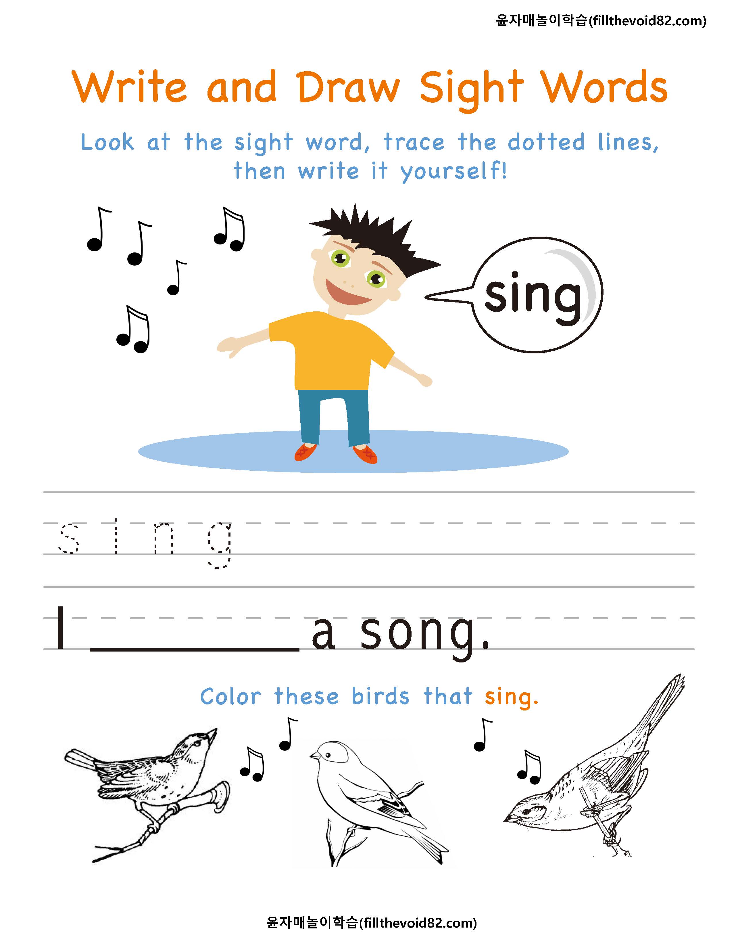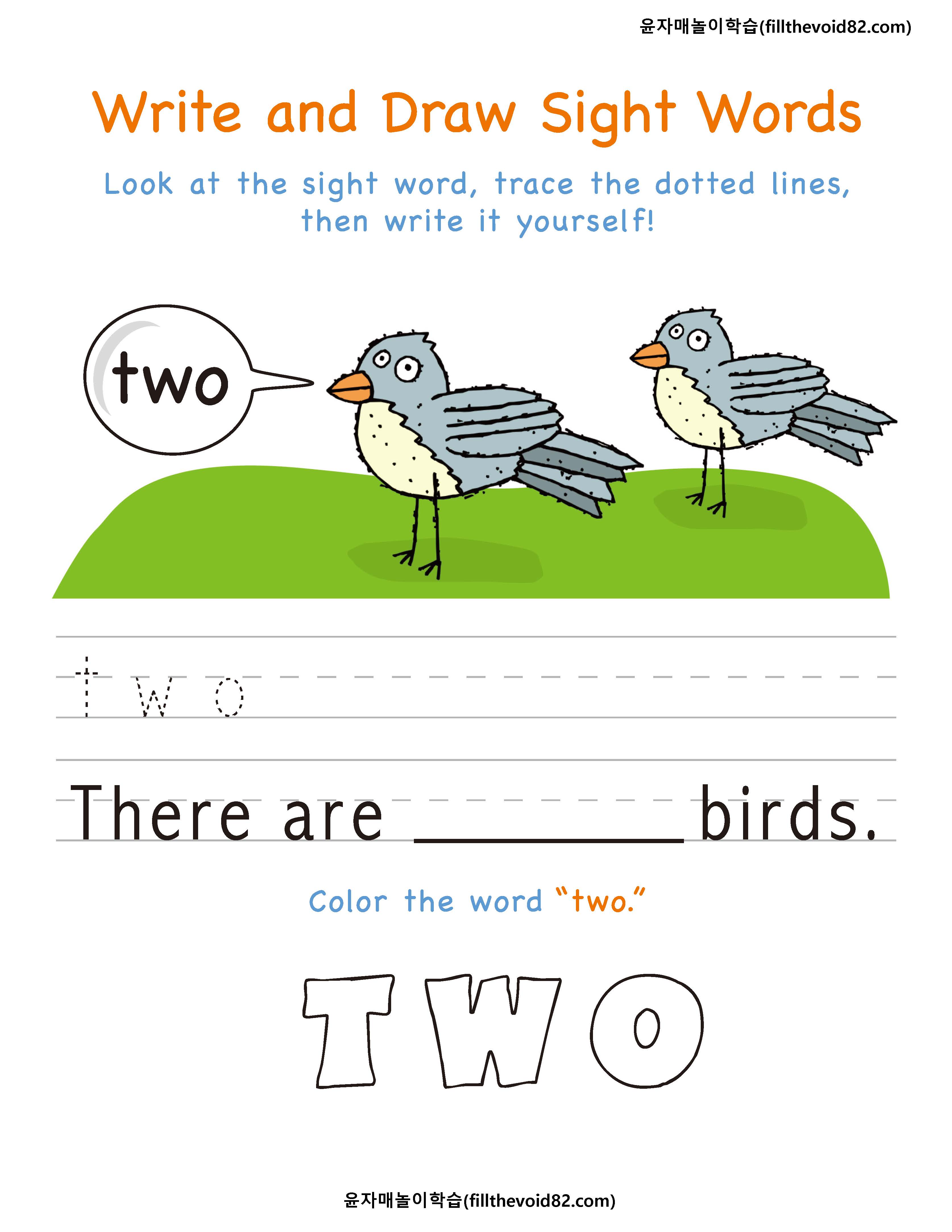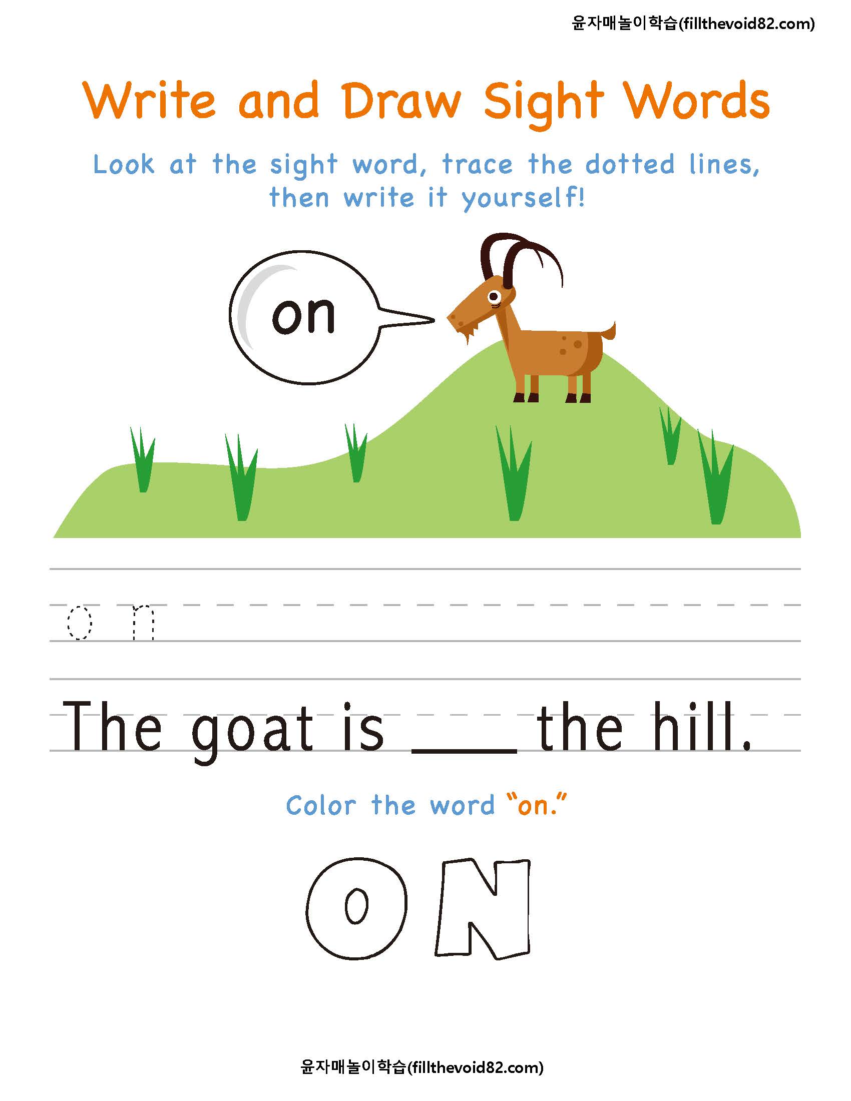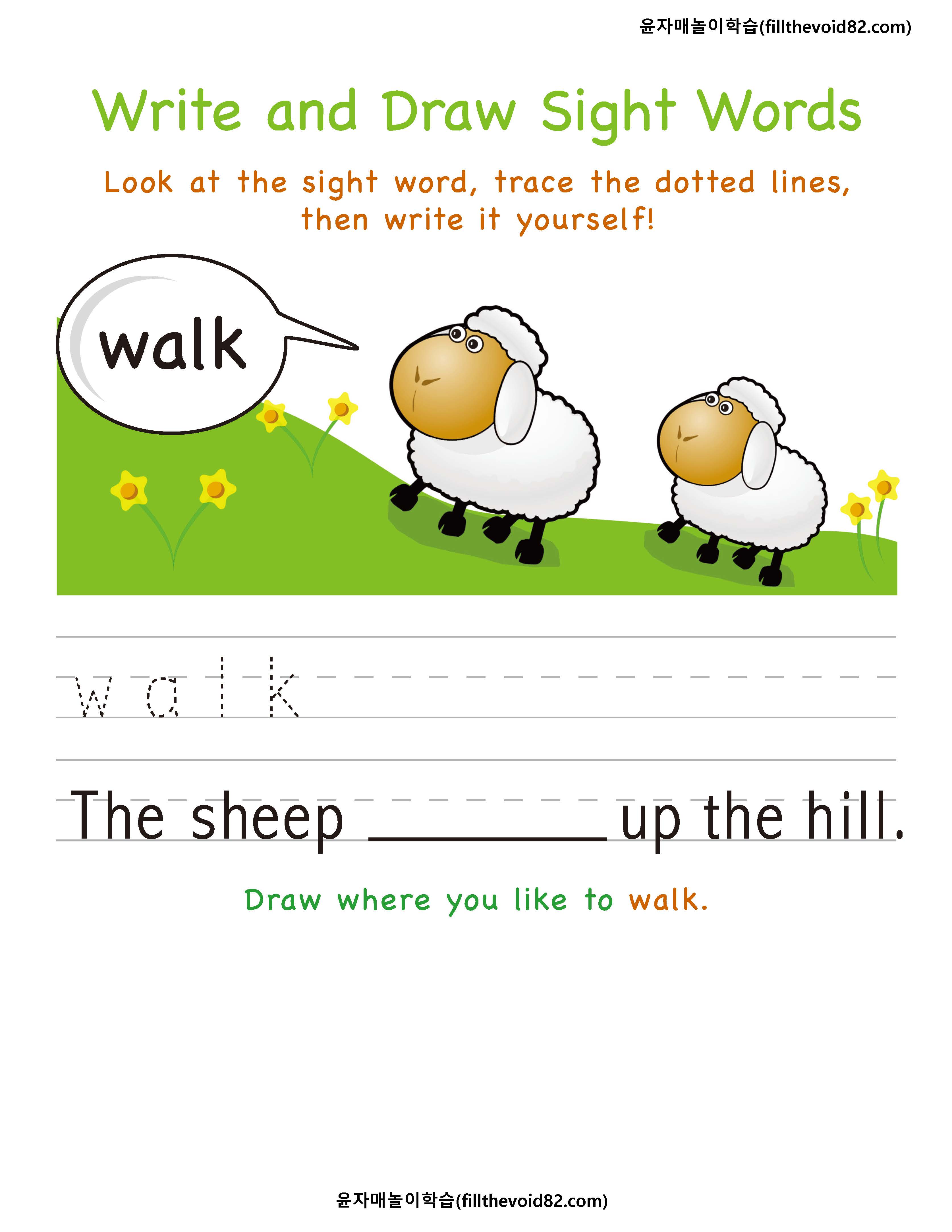 Sight words(사이트 워드)를 쓰고 그리며 익힐 수 있는 재미있는 활동지입니다.