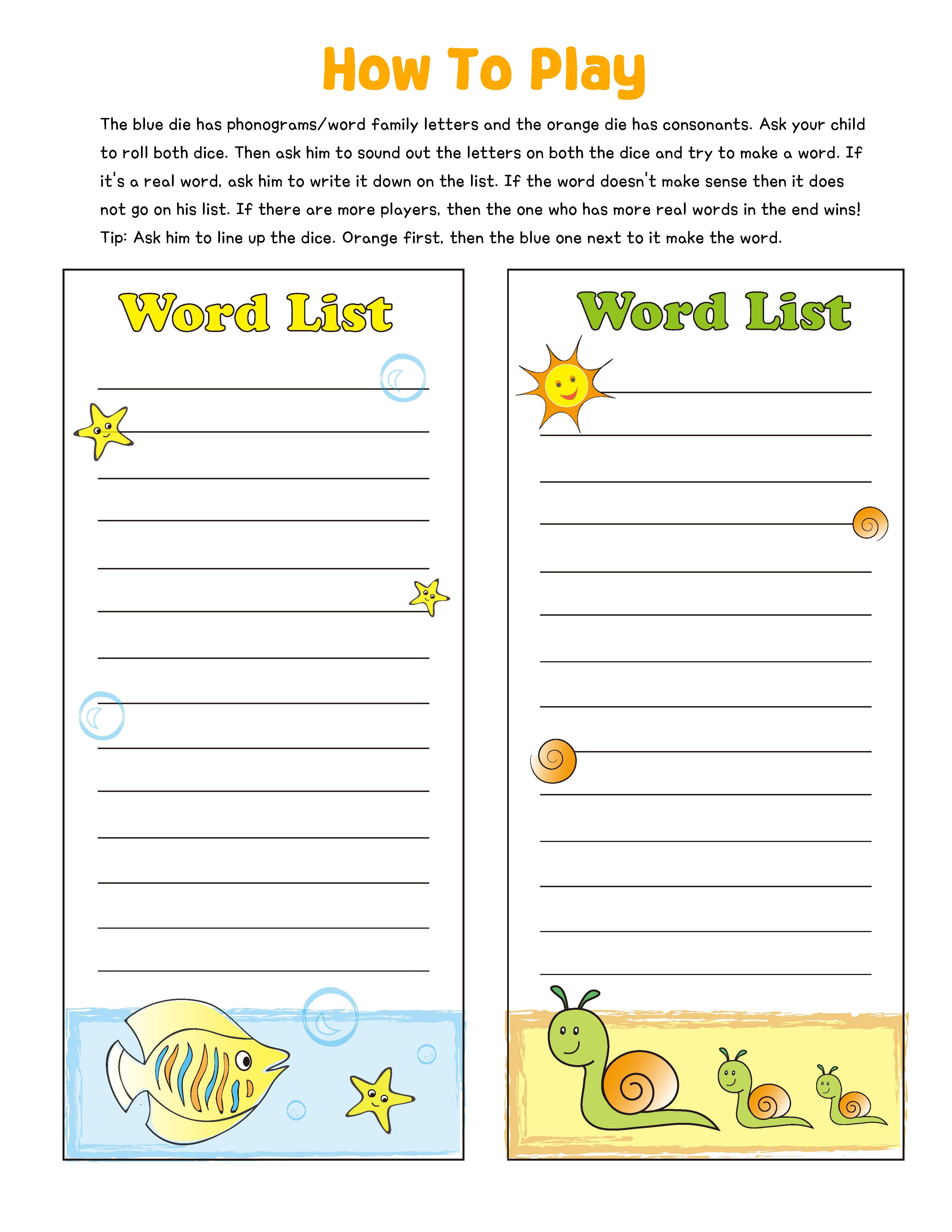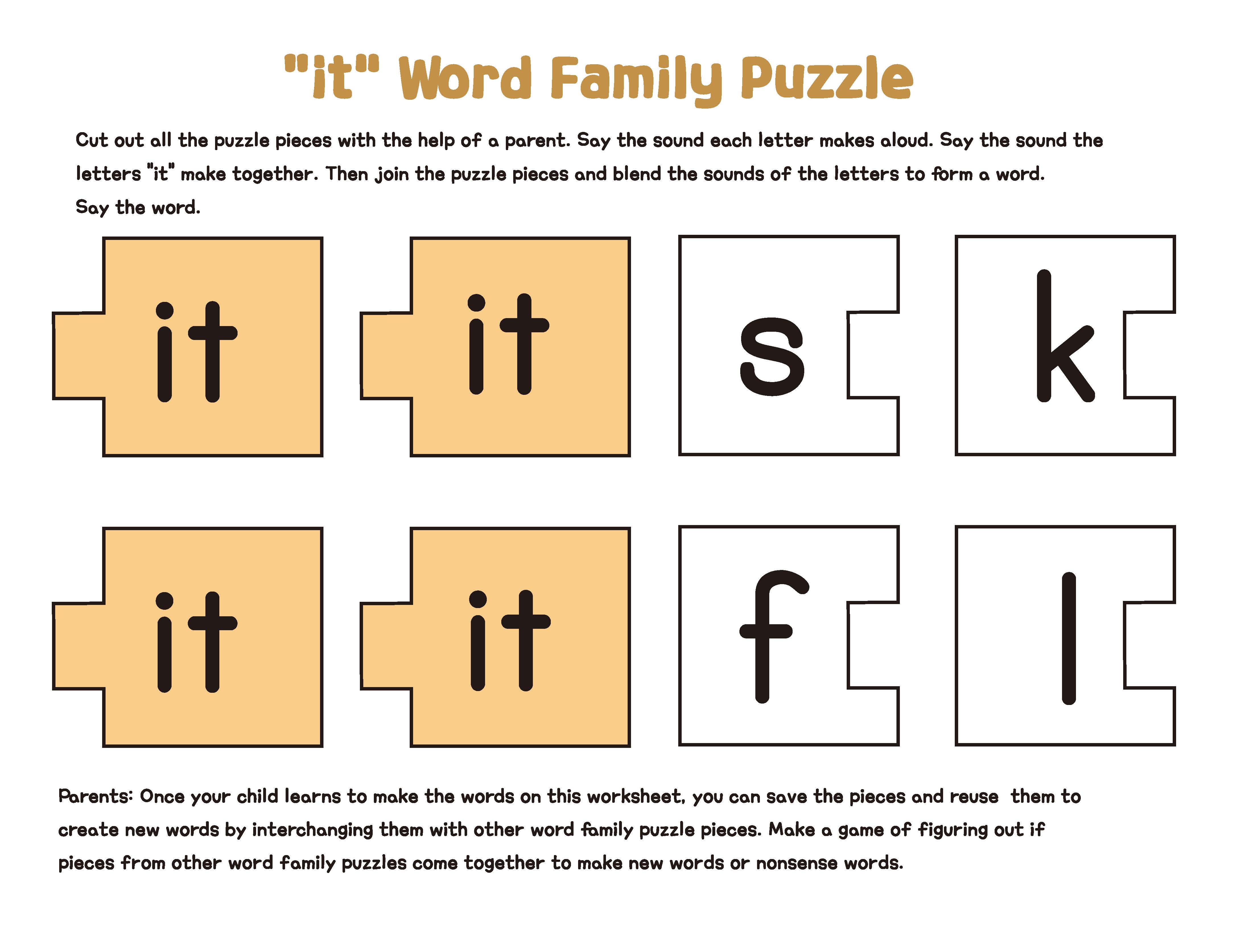 Word family는 단어를 형성하는 데 도움이 되는 유용한 빌딩 블록입니다. 이 활동지를 통해 아이들은 퍼즐 조각으로 단어를 만들고 주사위를 던져 단어를 만들며 재밌게 익힐 수 있습니다.