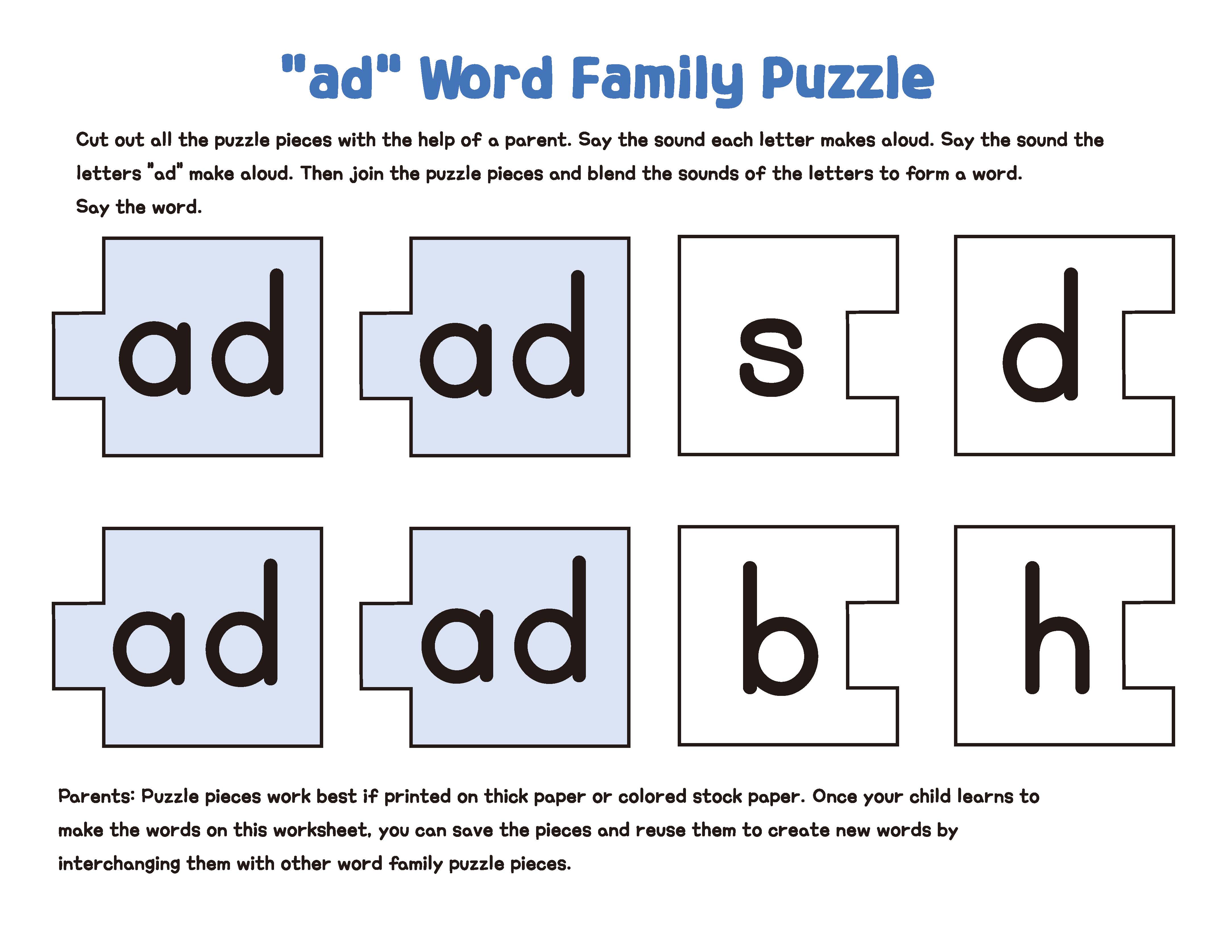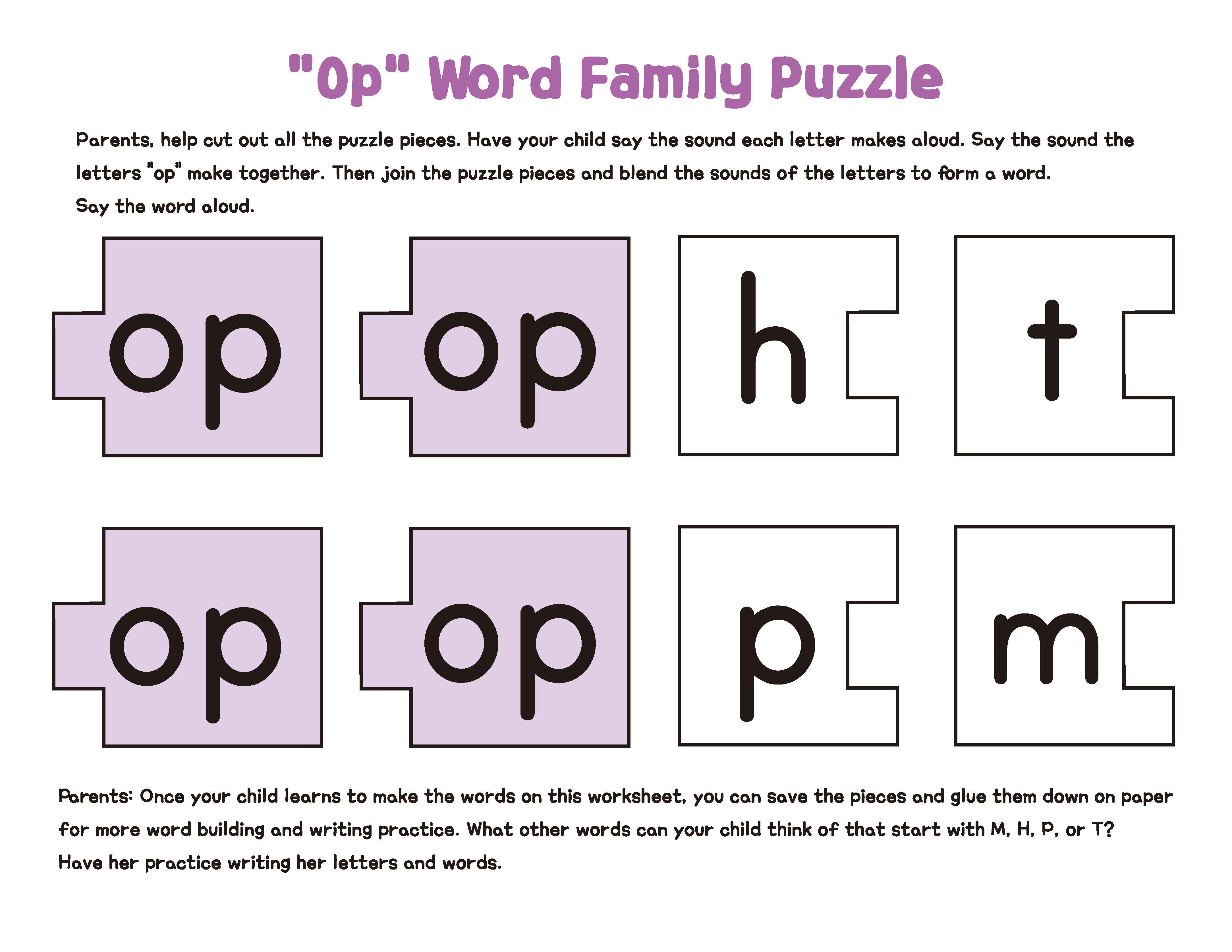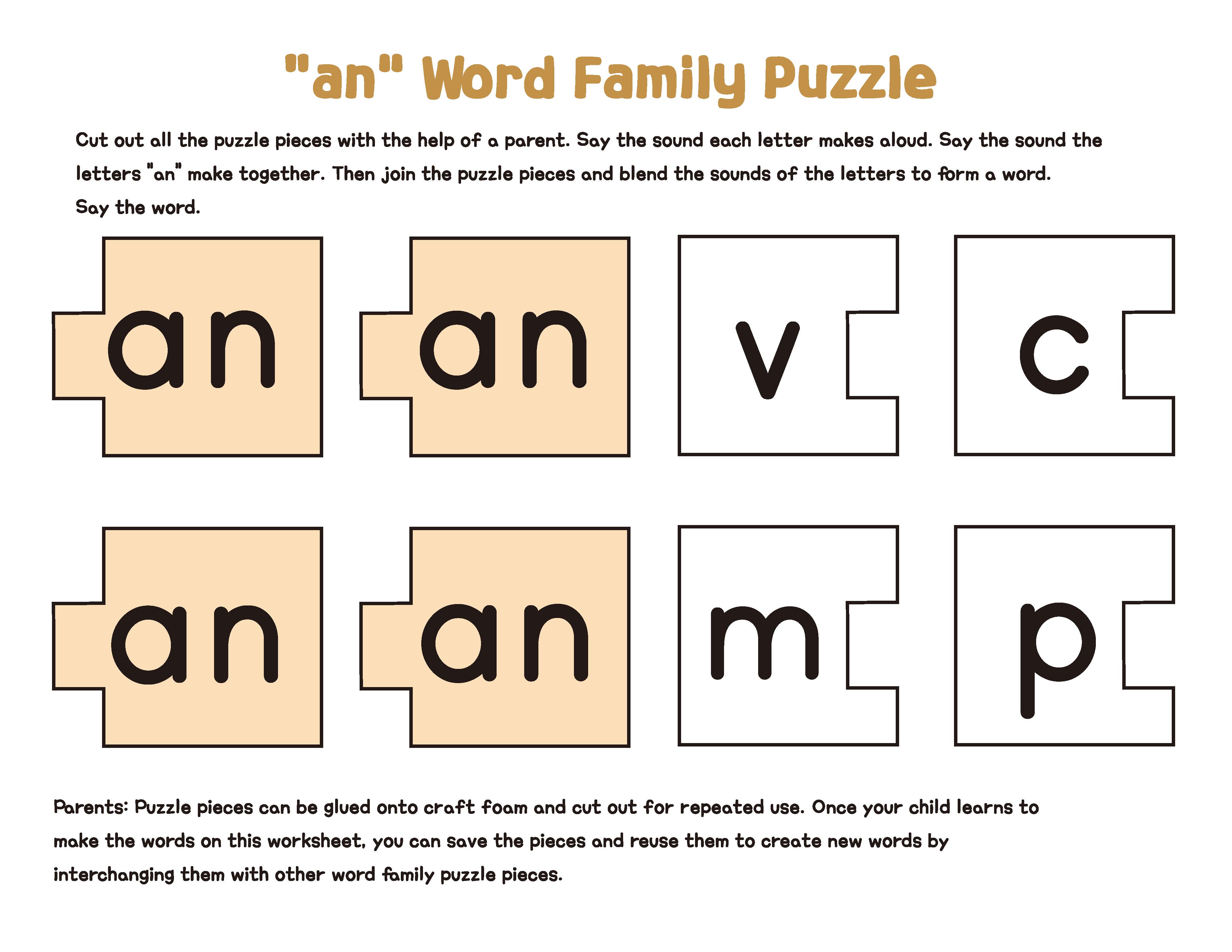 Word family는 단어를 형성하는 데 도움이 되는 유용한 빌딩 블록입니다. 이 활동지를 통해 아이들은 퍼즐 조각으로 단어를 만들고 주사위를 던져 단어를 만들며 재밌게 익힐 수 있습니다.