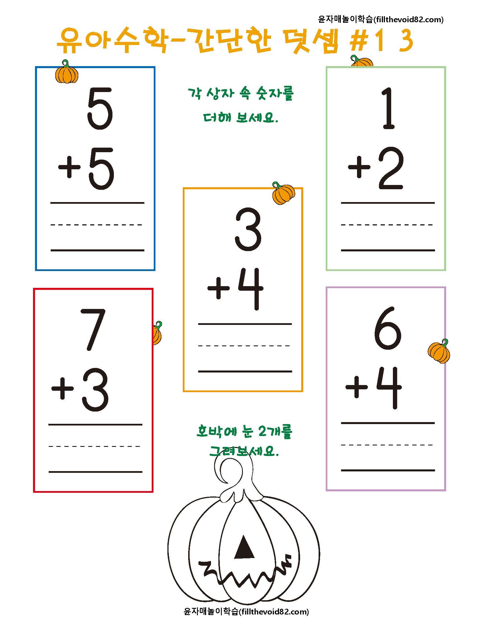한 자리 수 덧셈-세로셈 워크지입니다.
