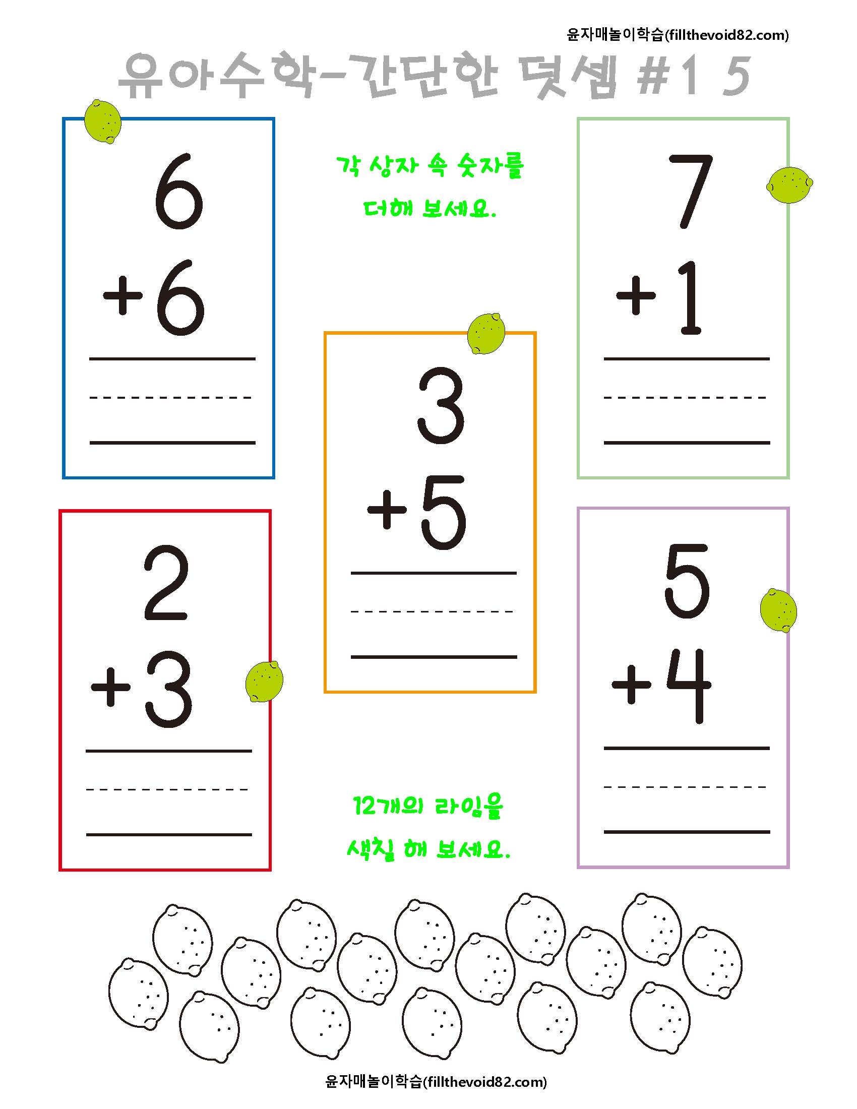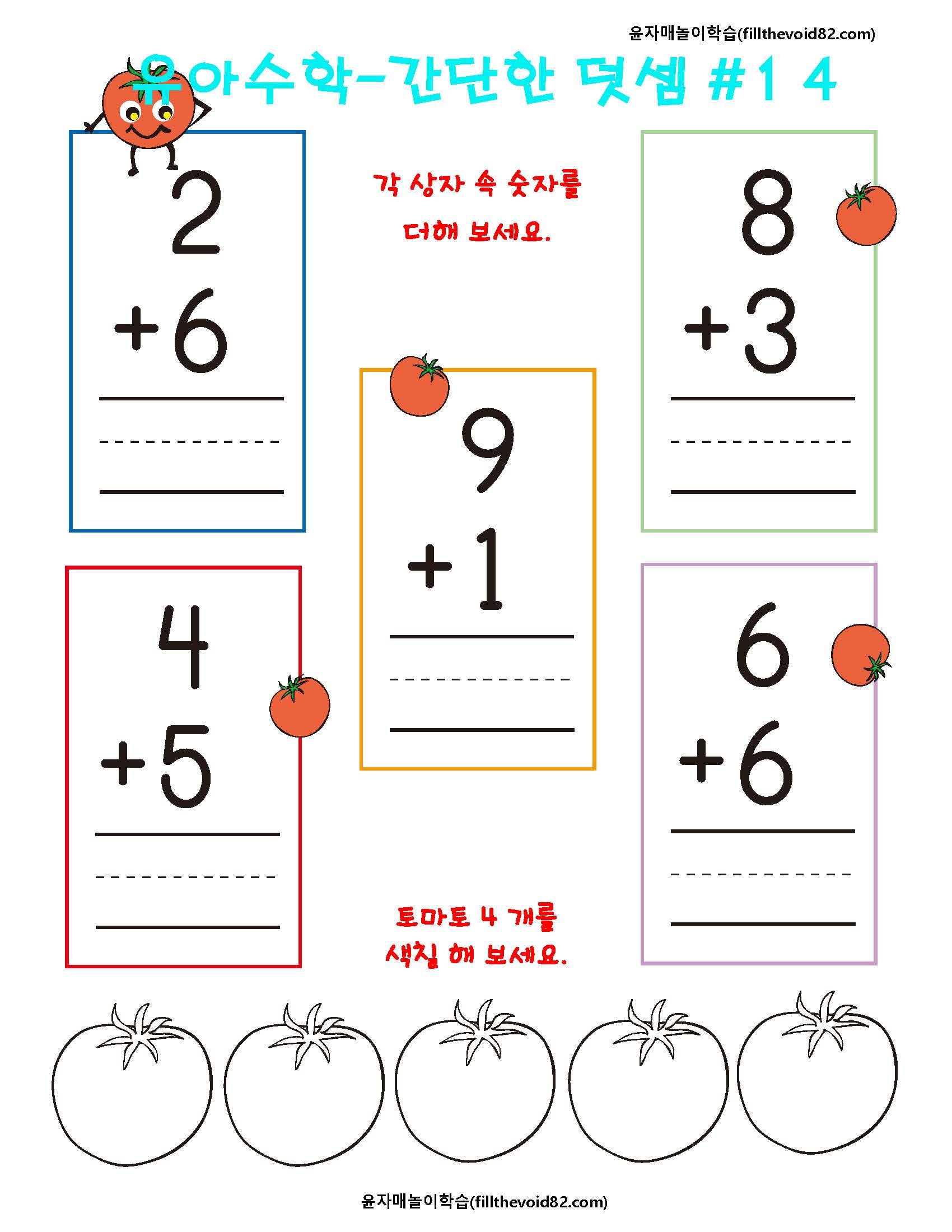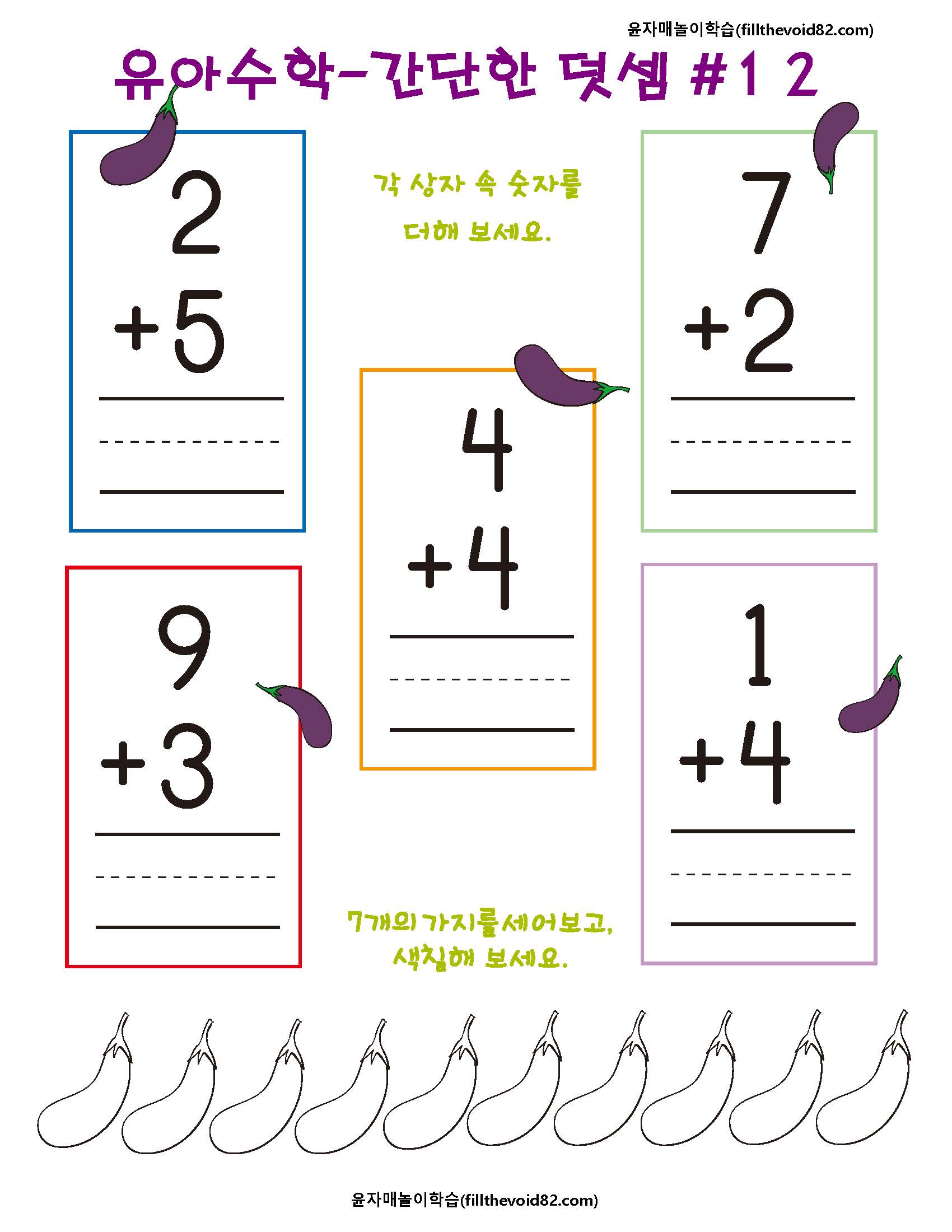 한 자리 수 덧셈-세로셈 워크지입니다.