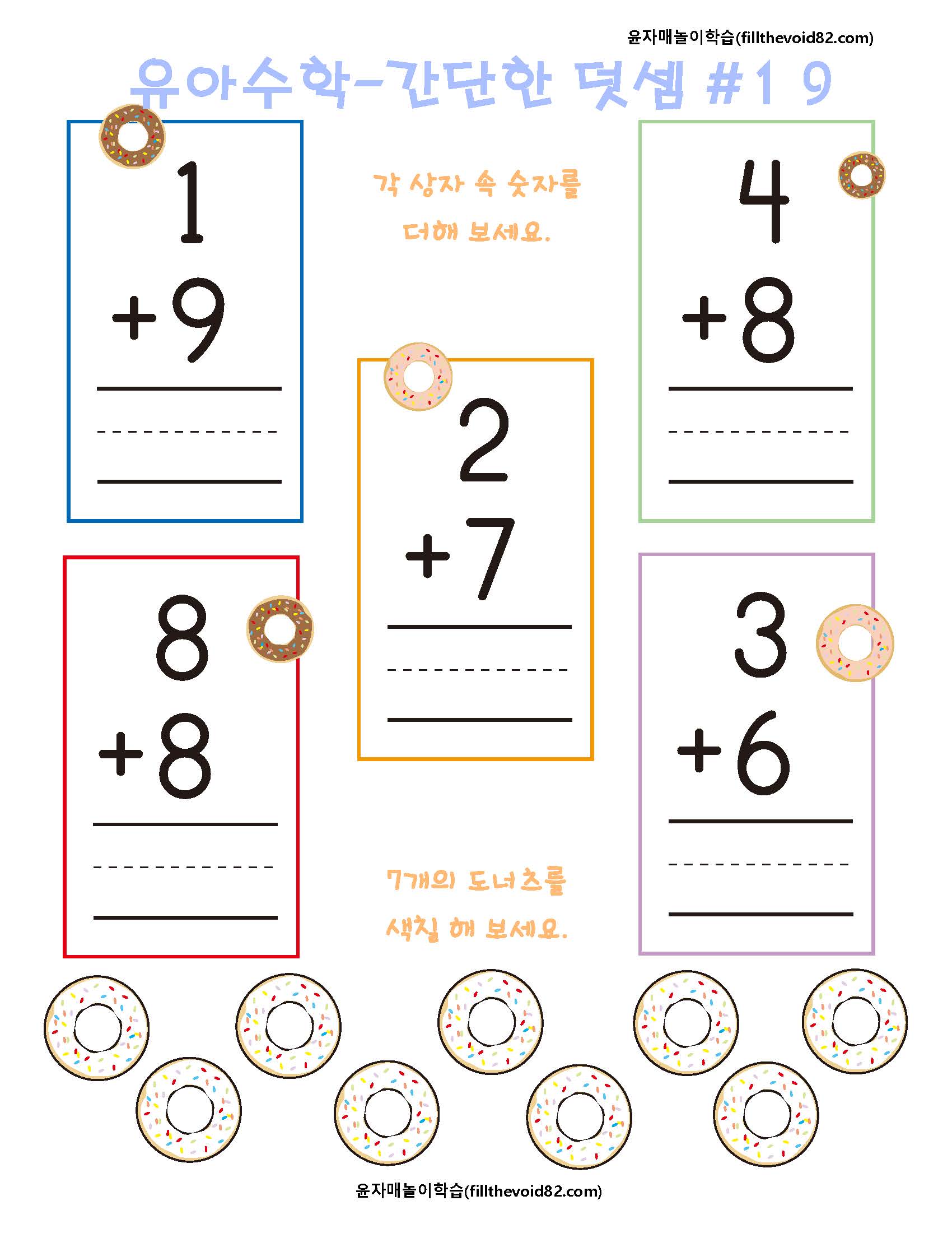 한 자리 수 덧셈-세로셈 워크지입니다.