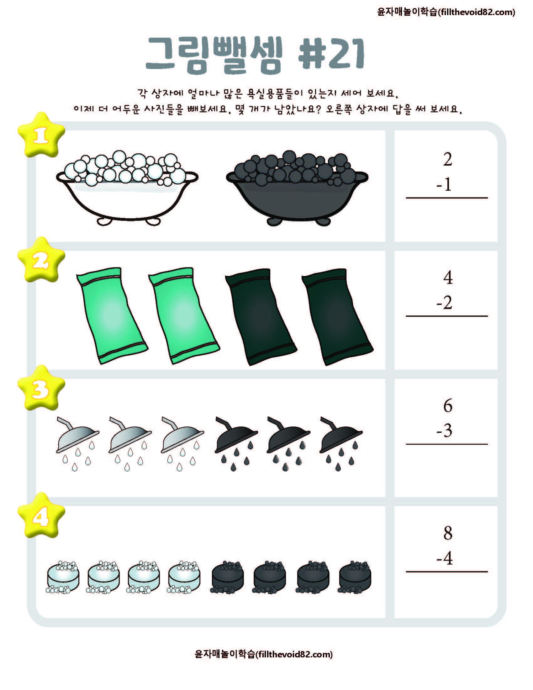 무료학습지) 유아수학) 그림 뺄셈(4)