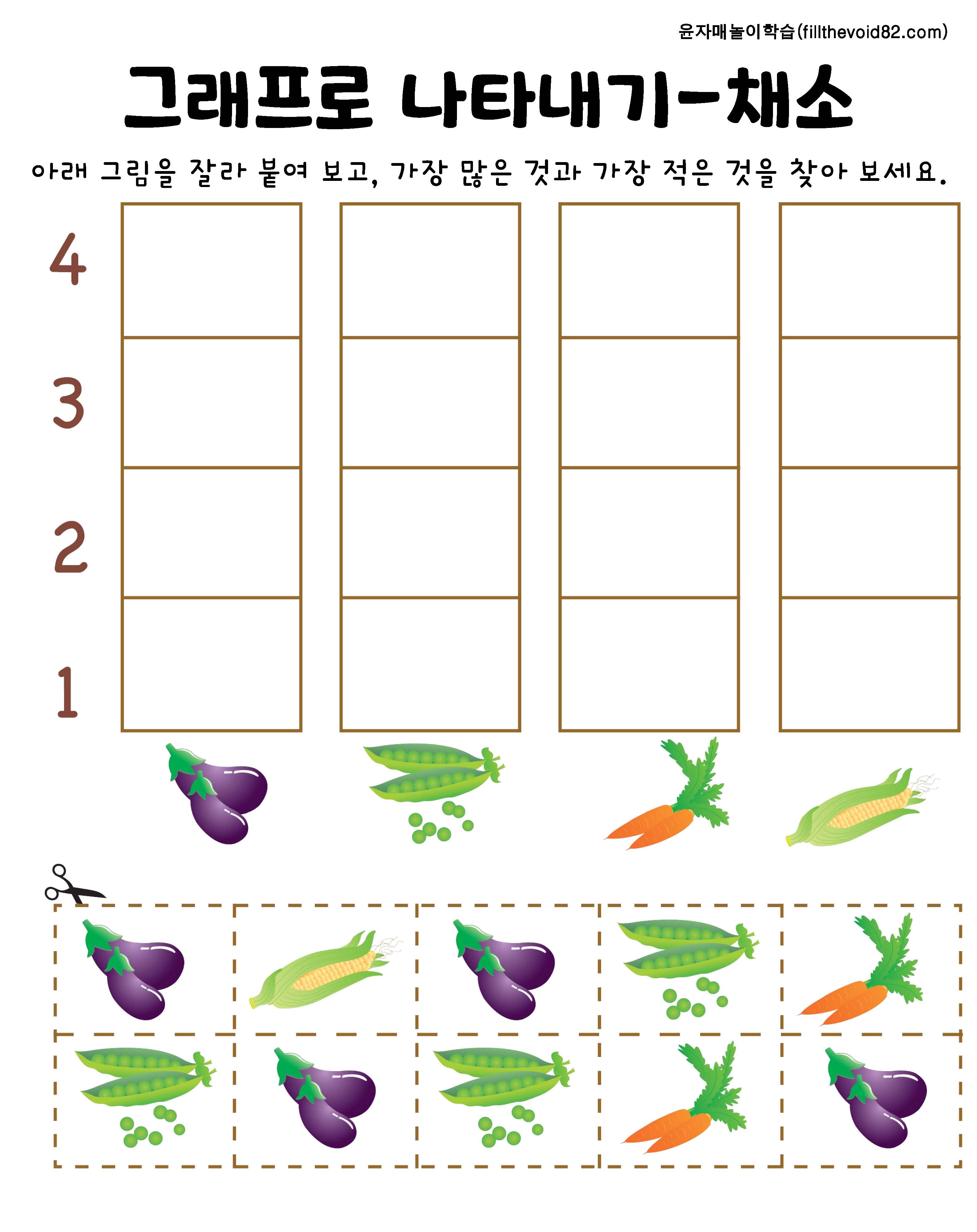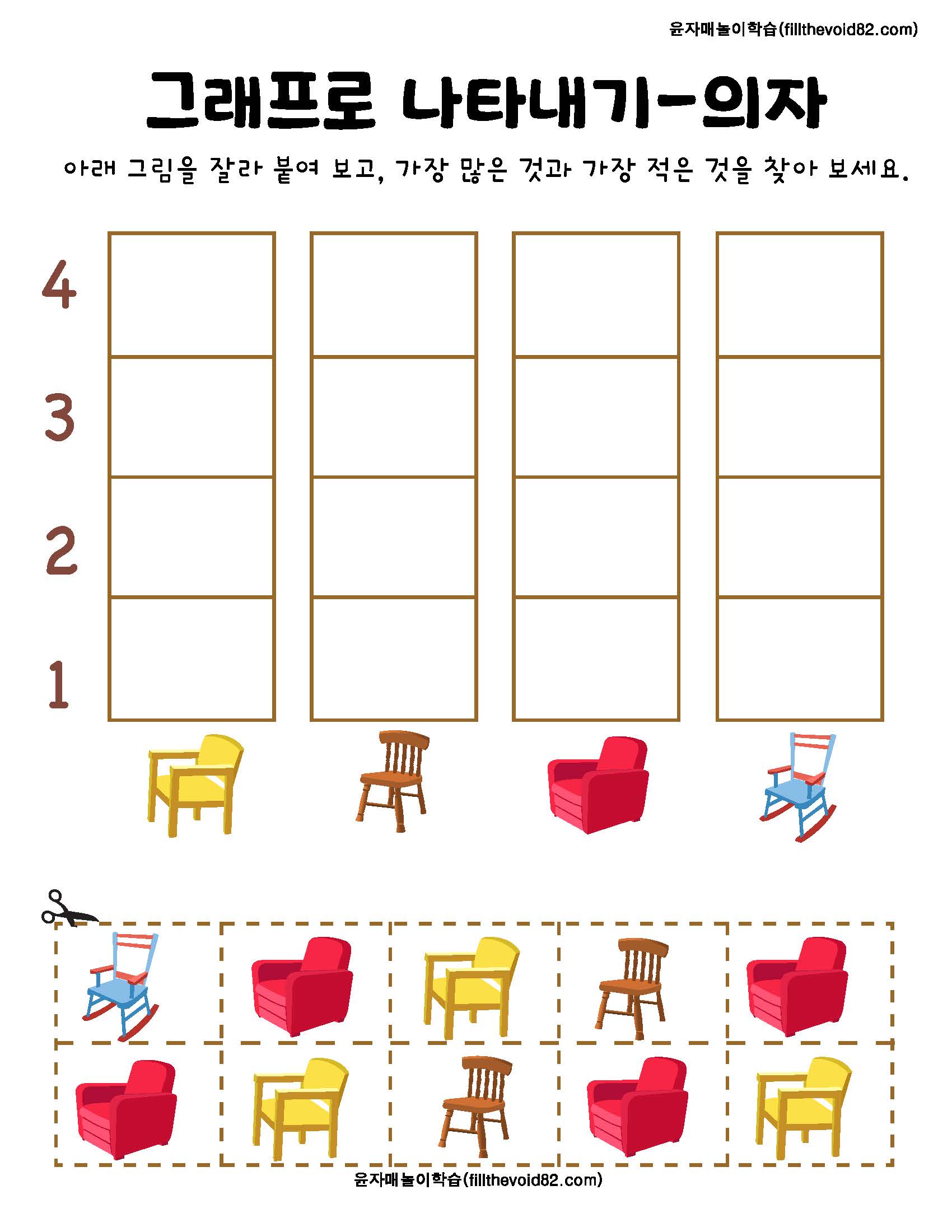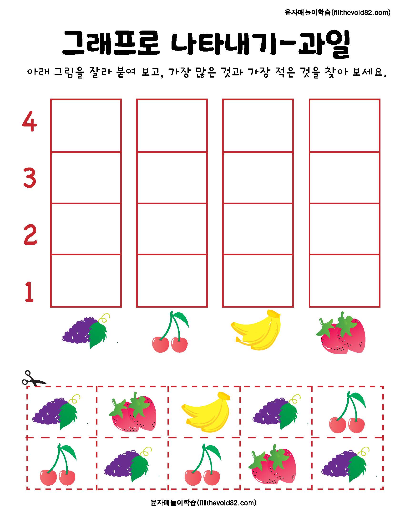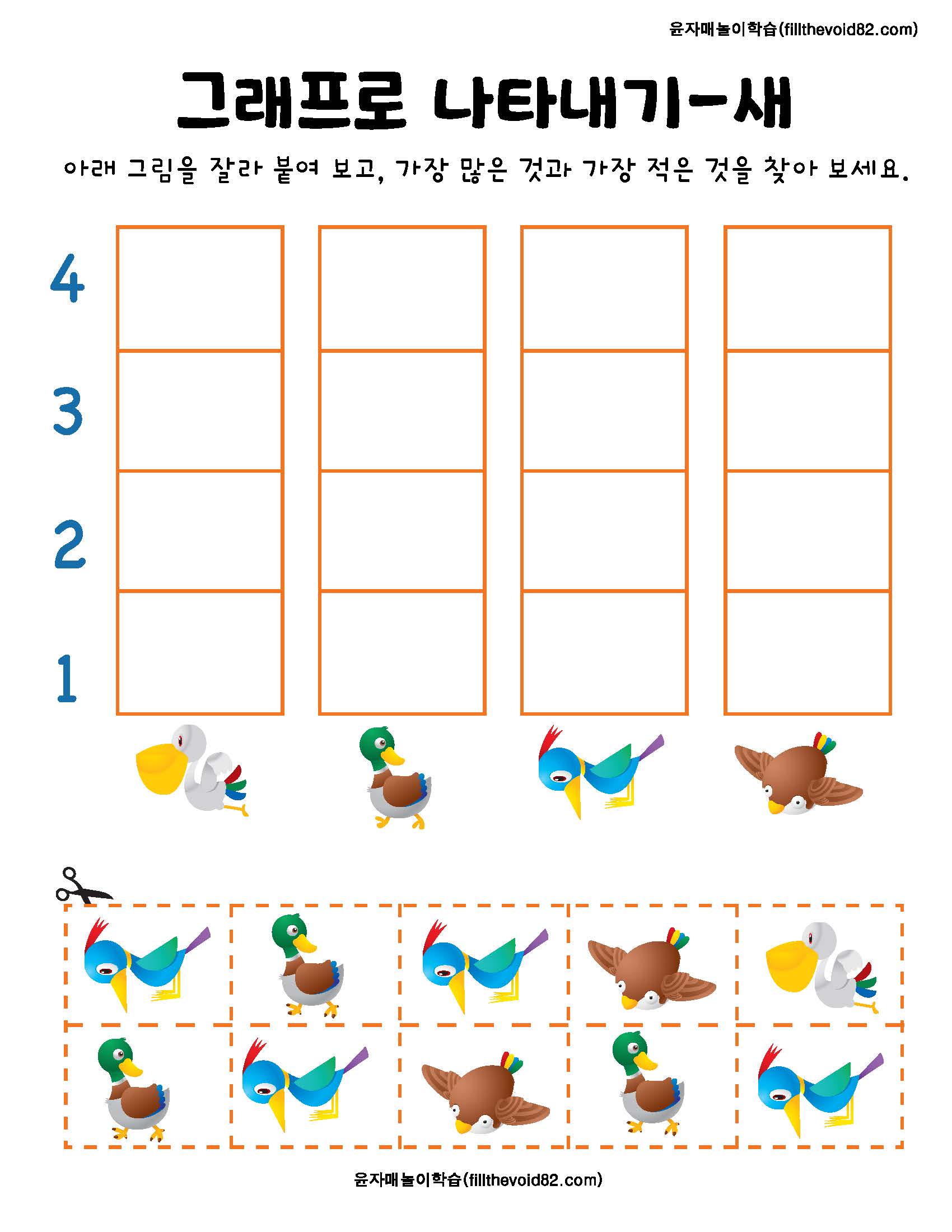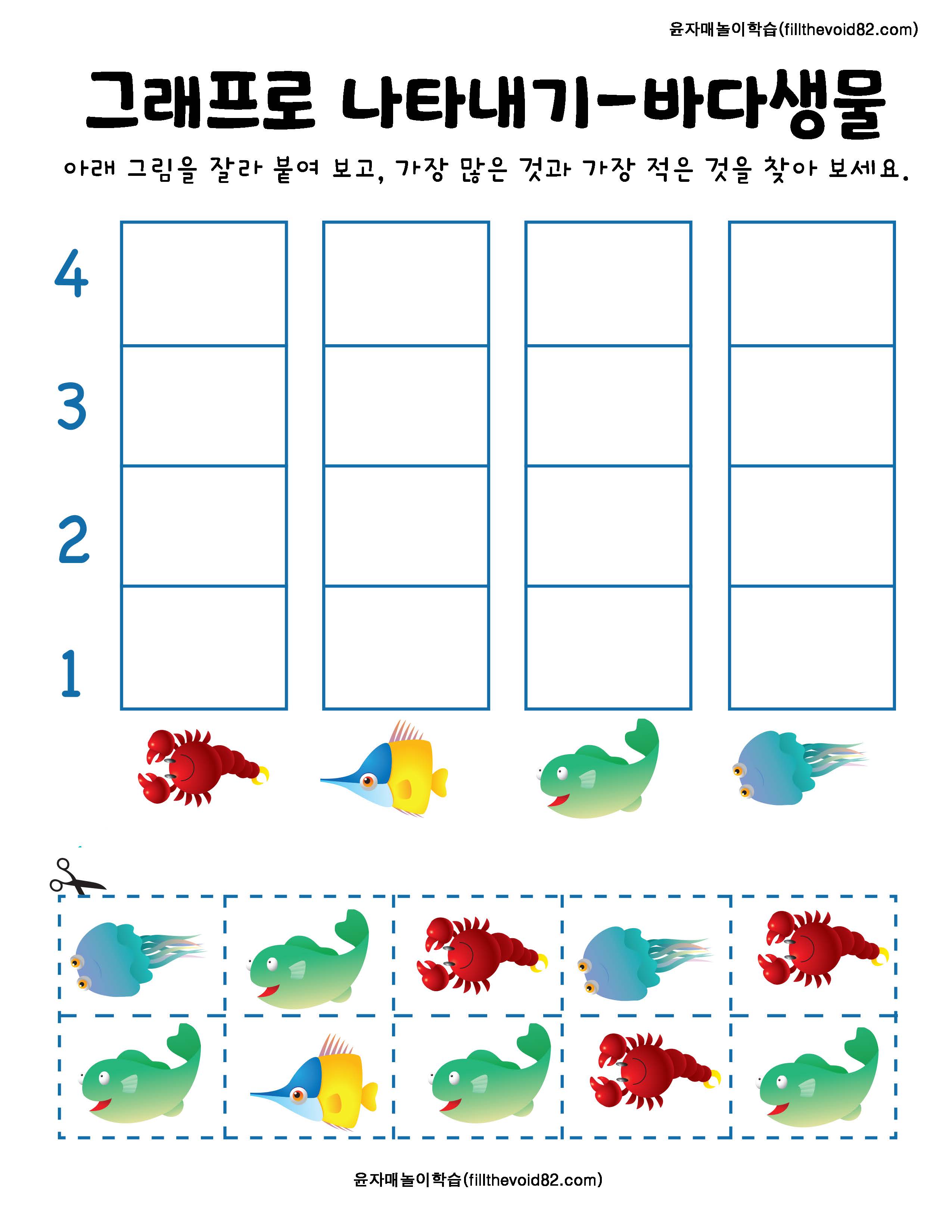 그림을 분류하여 그래프에 붙이고 많고 적음을 학습하는 활동지입니다.