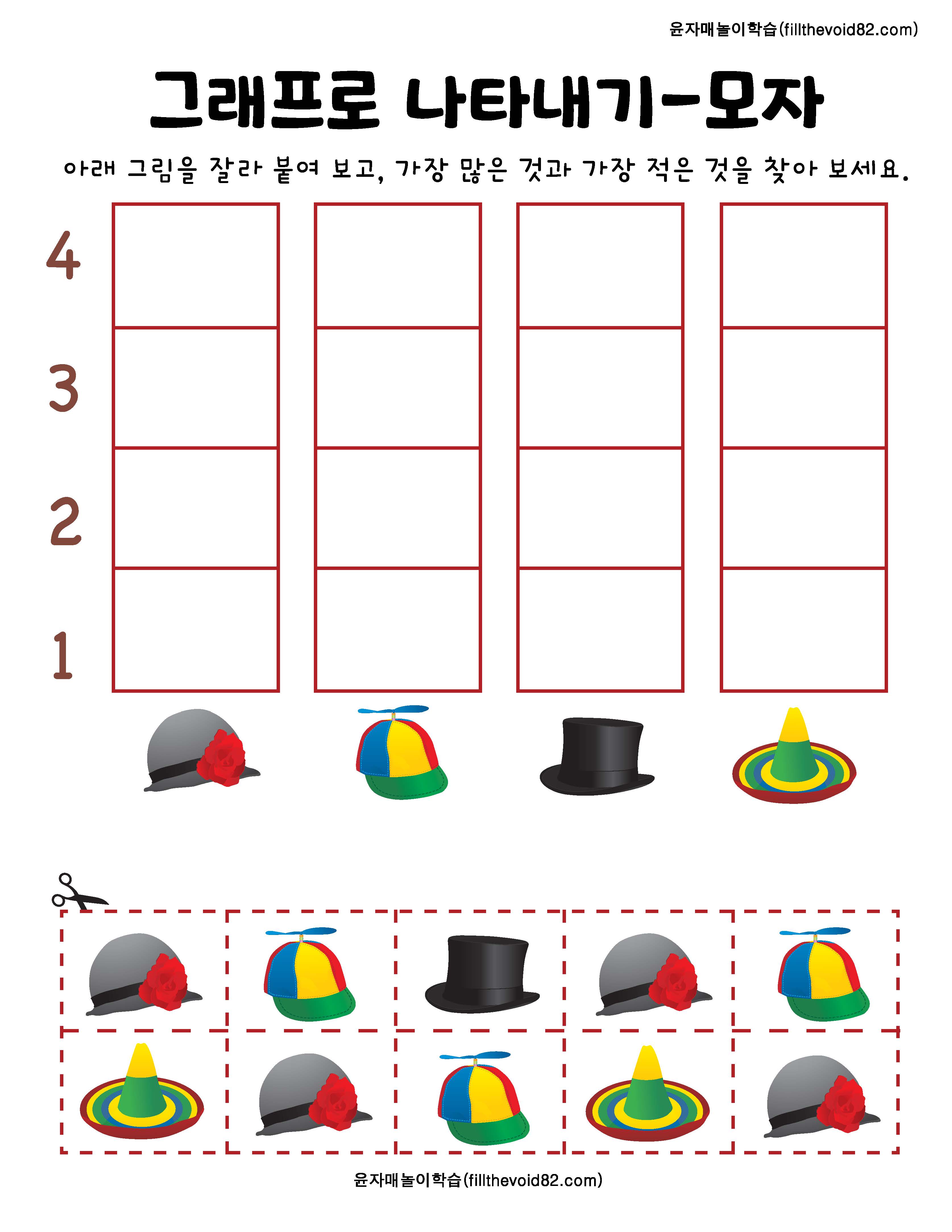그림을 분류하여 그래프에 붙이고 많고 적음을 학습하는 활동지입니다.