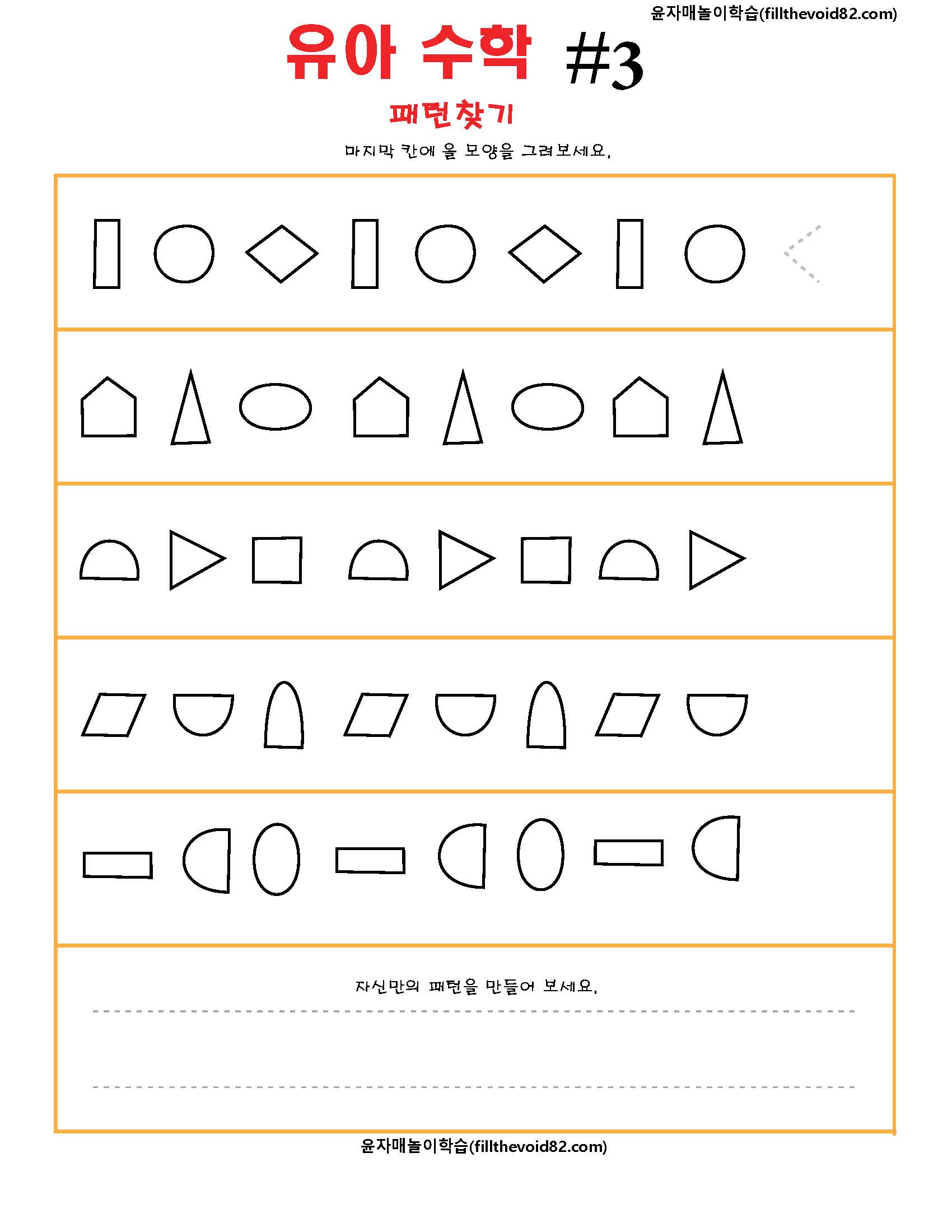 취학 전 아이들이 재밌게 해 볼 수 있는 패턴그리기 학습지입니다.