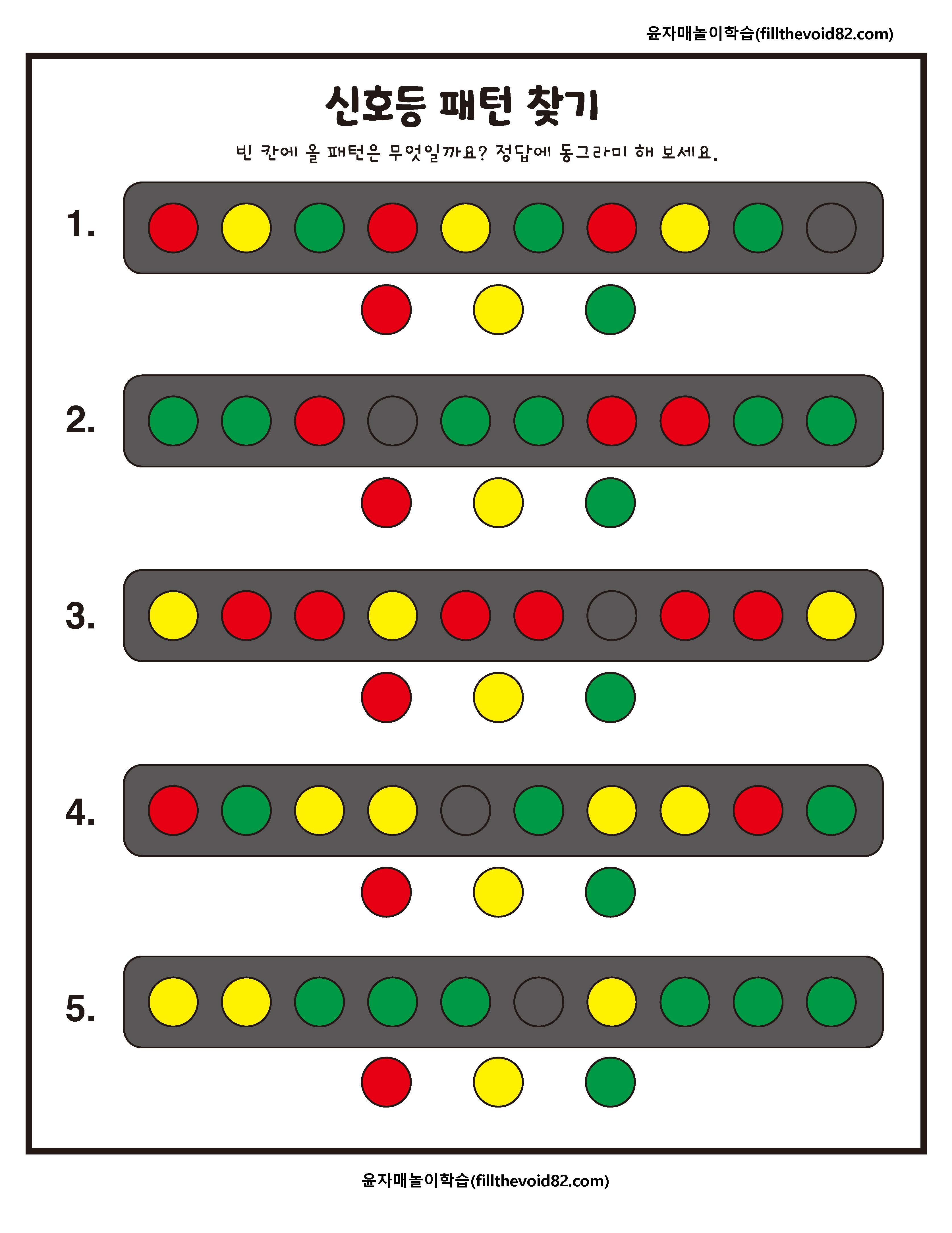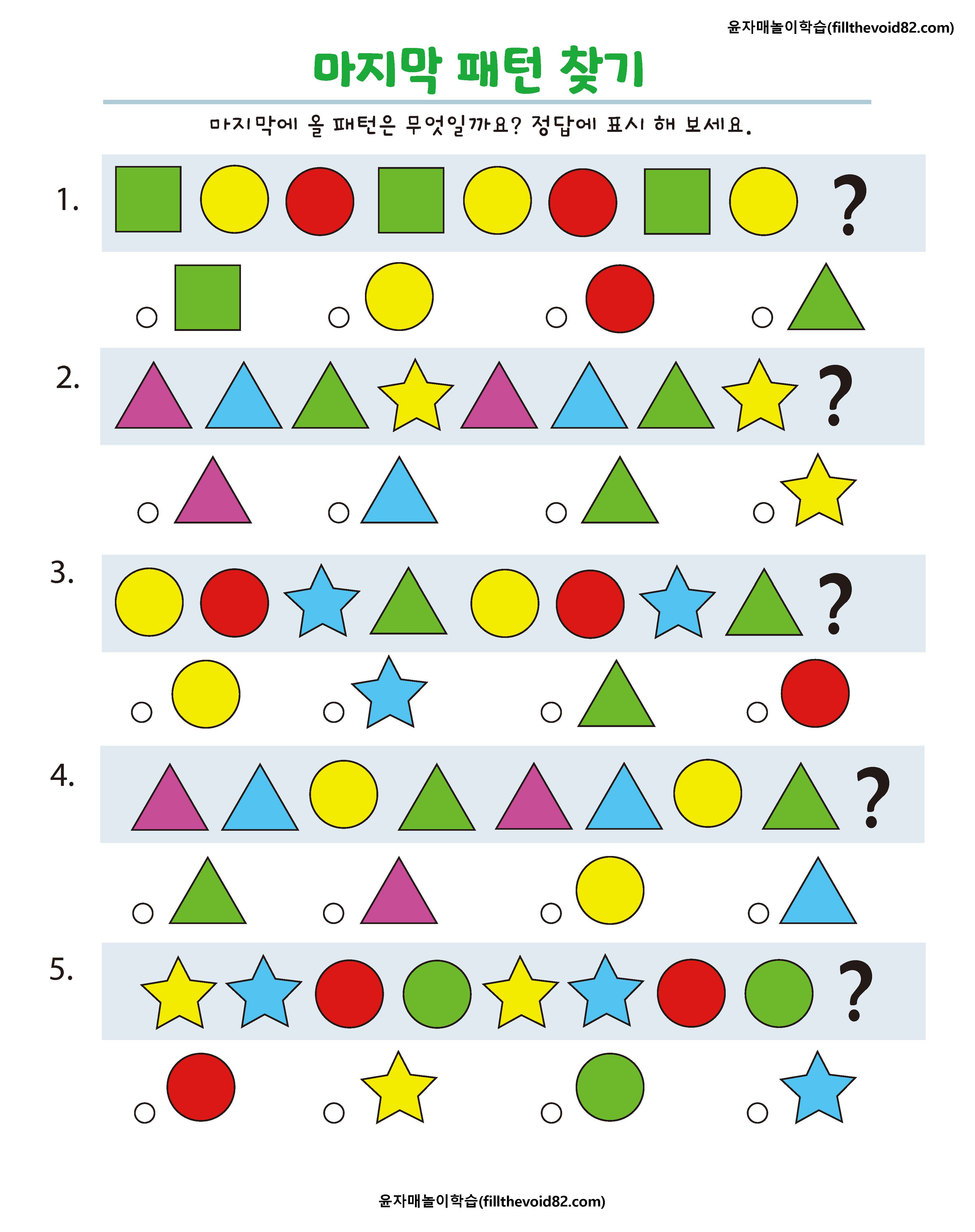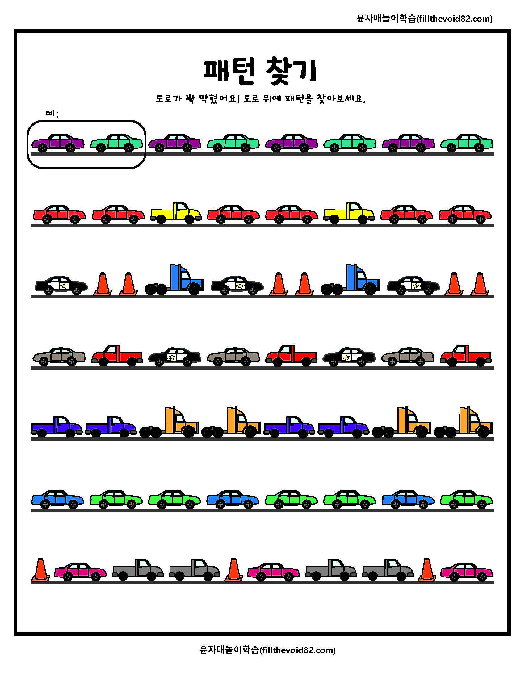 반복되는 규칙을 찾아 패턴을 학습할 수 있는 활동지입니다.
