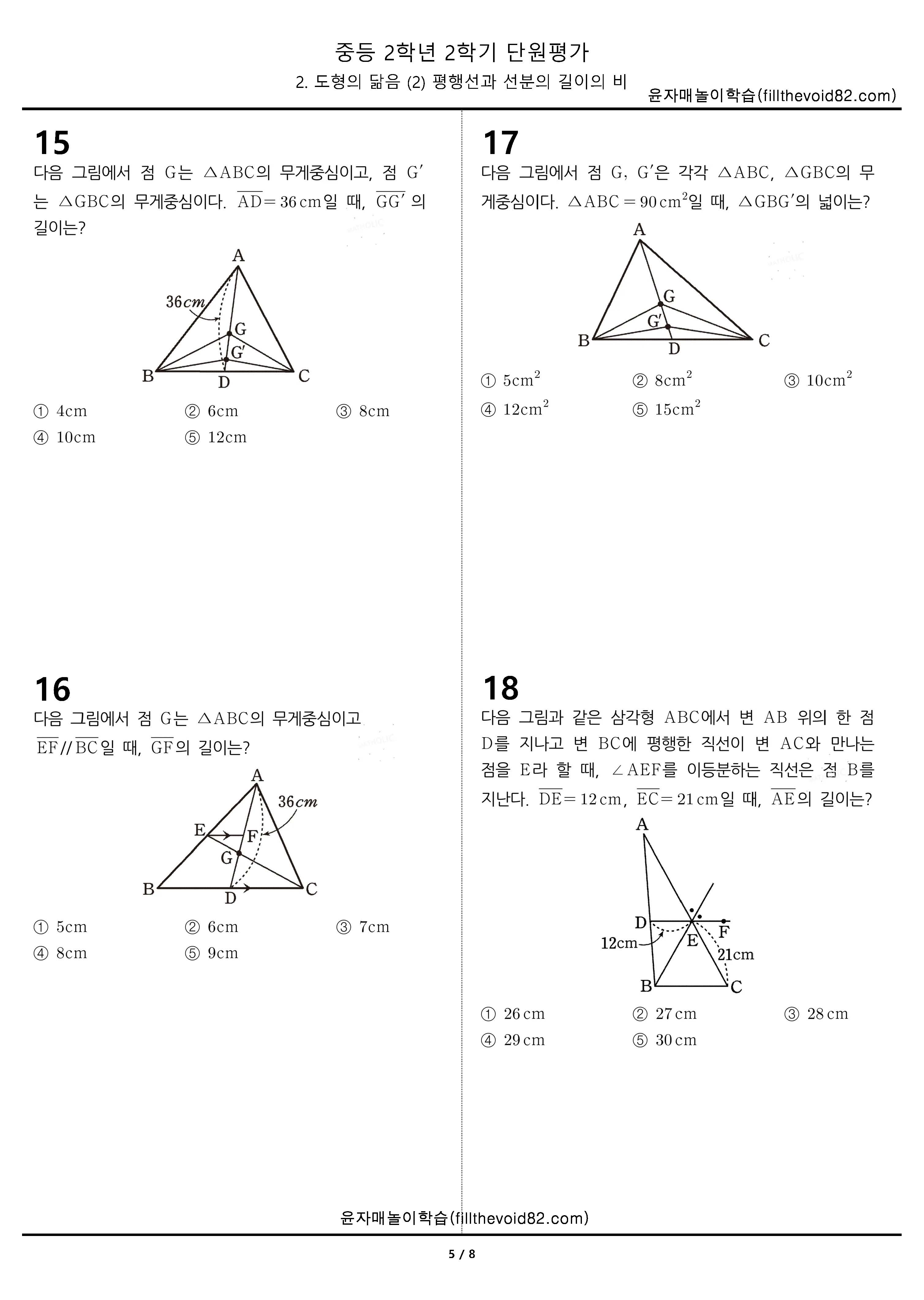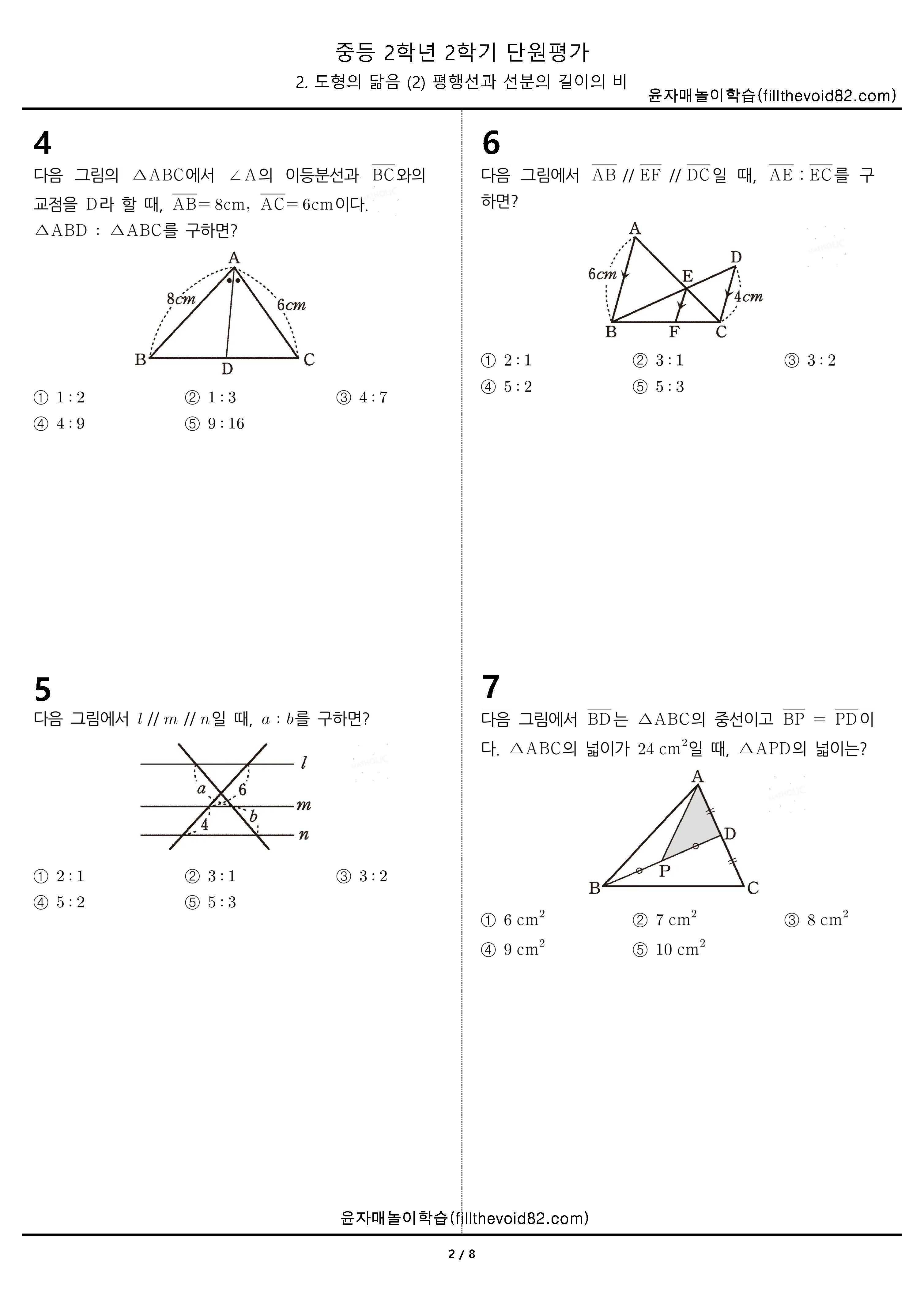 중등무료학습지)중등단원평가) 중등2학년 2학기 2.도형의 닮음 (1)도형의 닮음 (0) | 2023.10.12 |