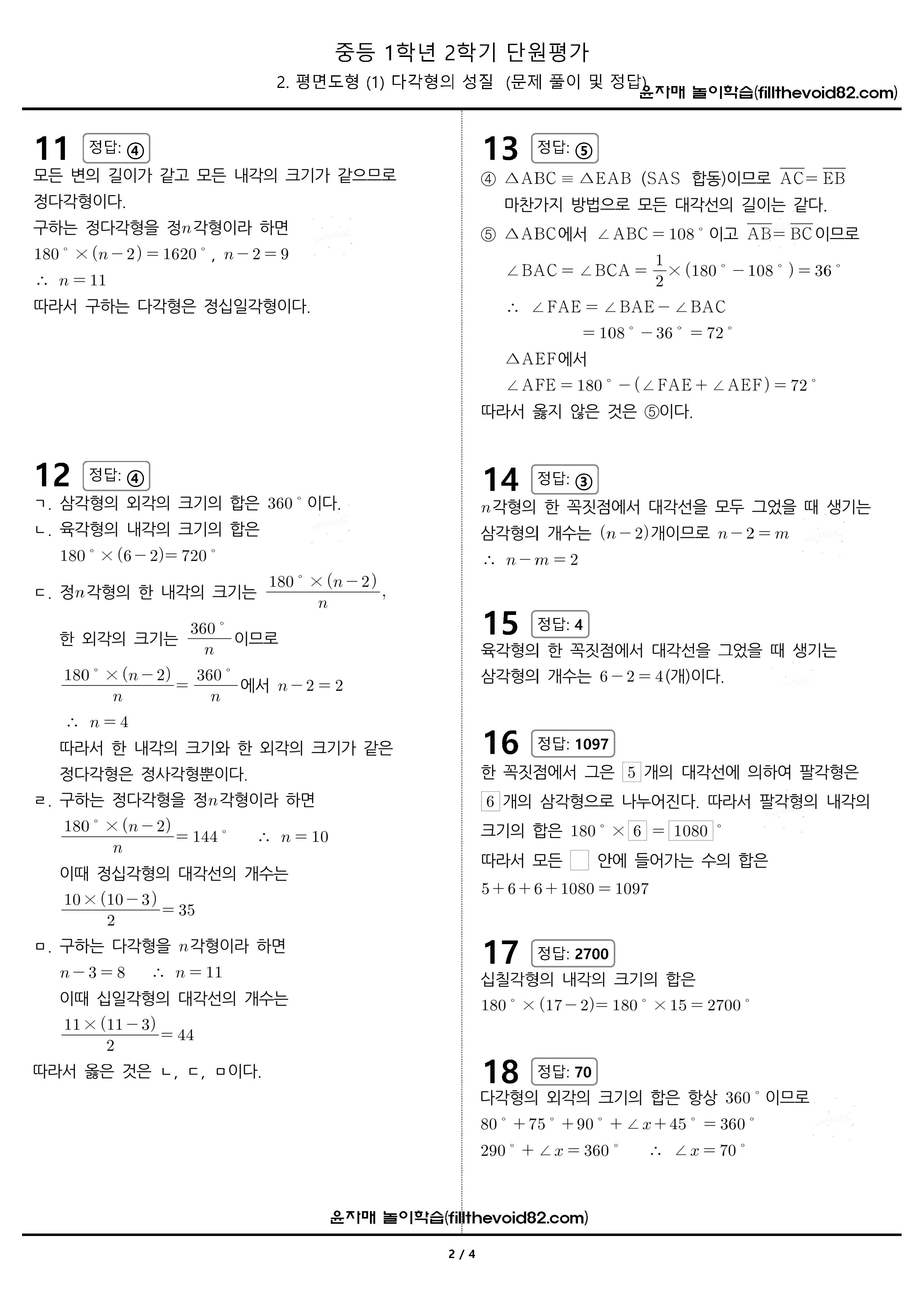 중등 1학년 2학기 2단원을 평가 할 수 있는 무료학습지입니다.