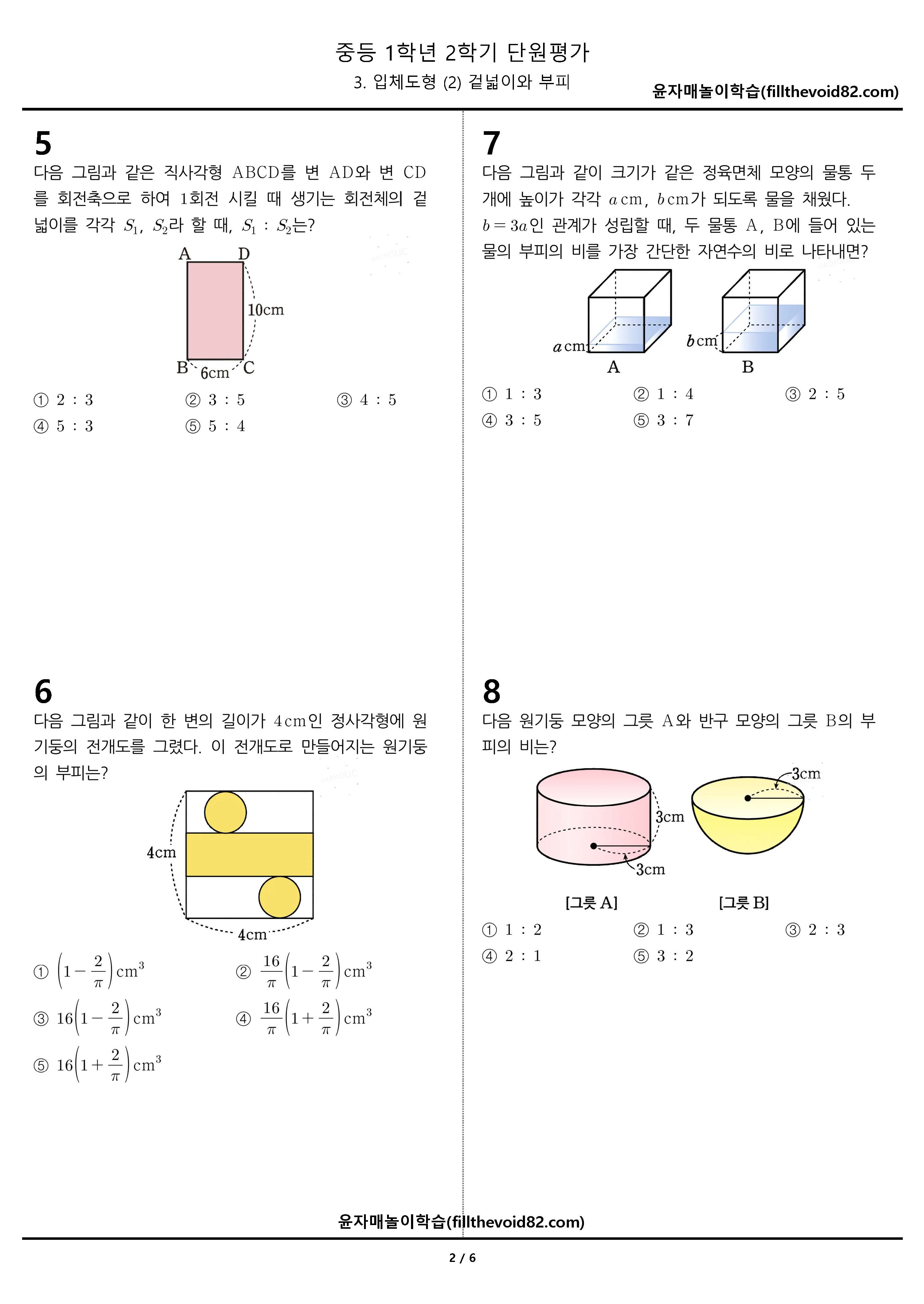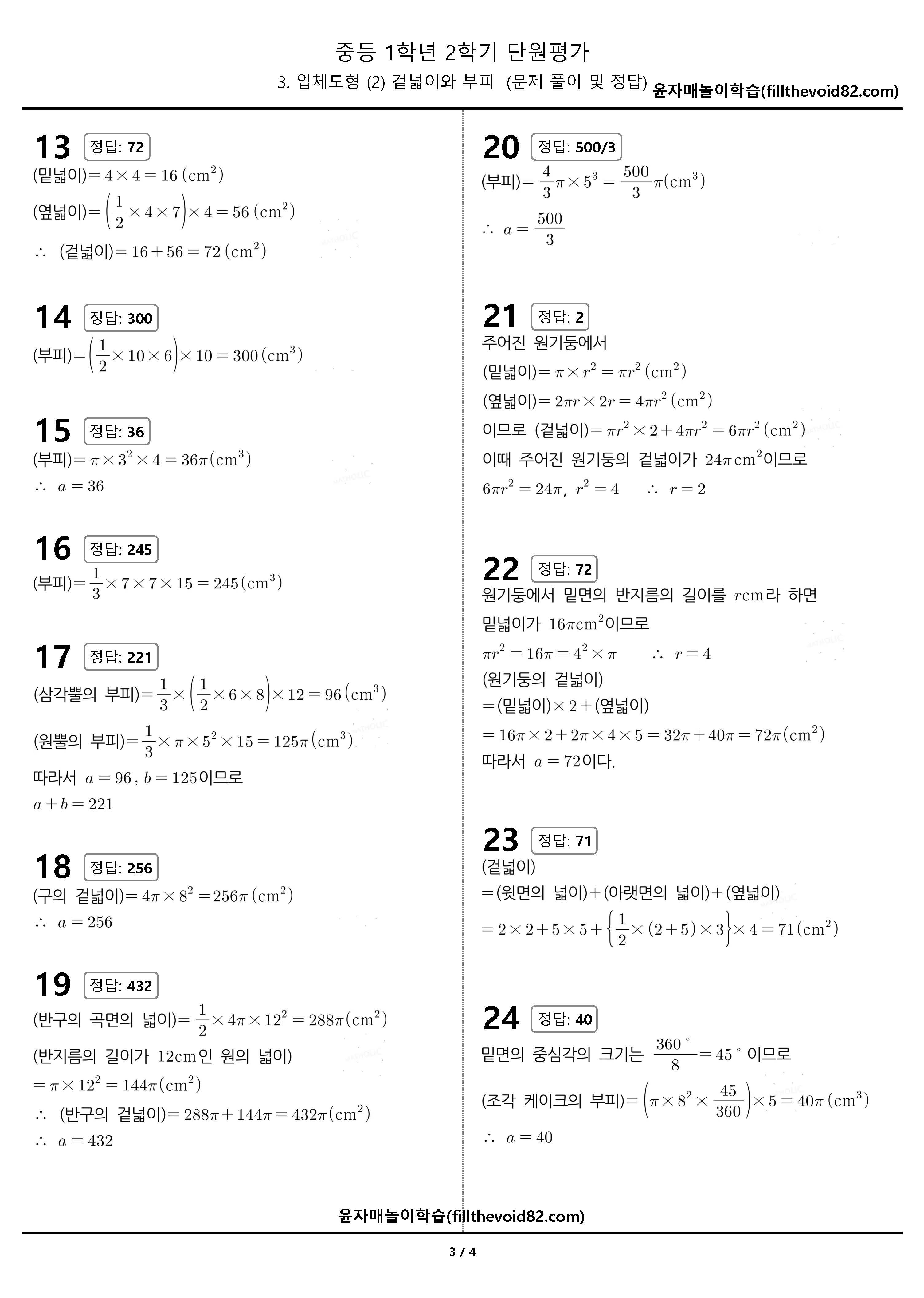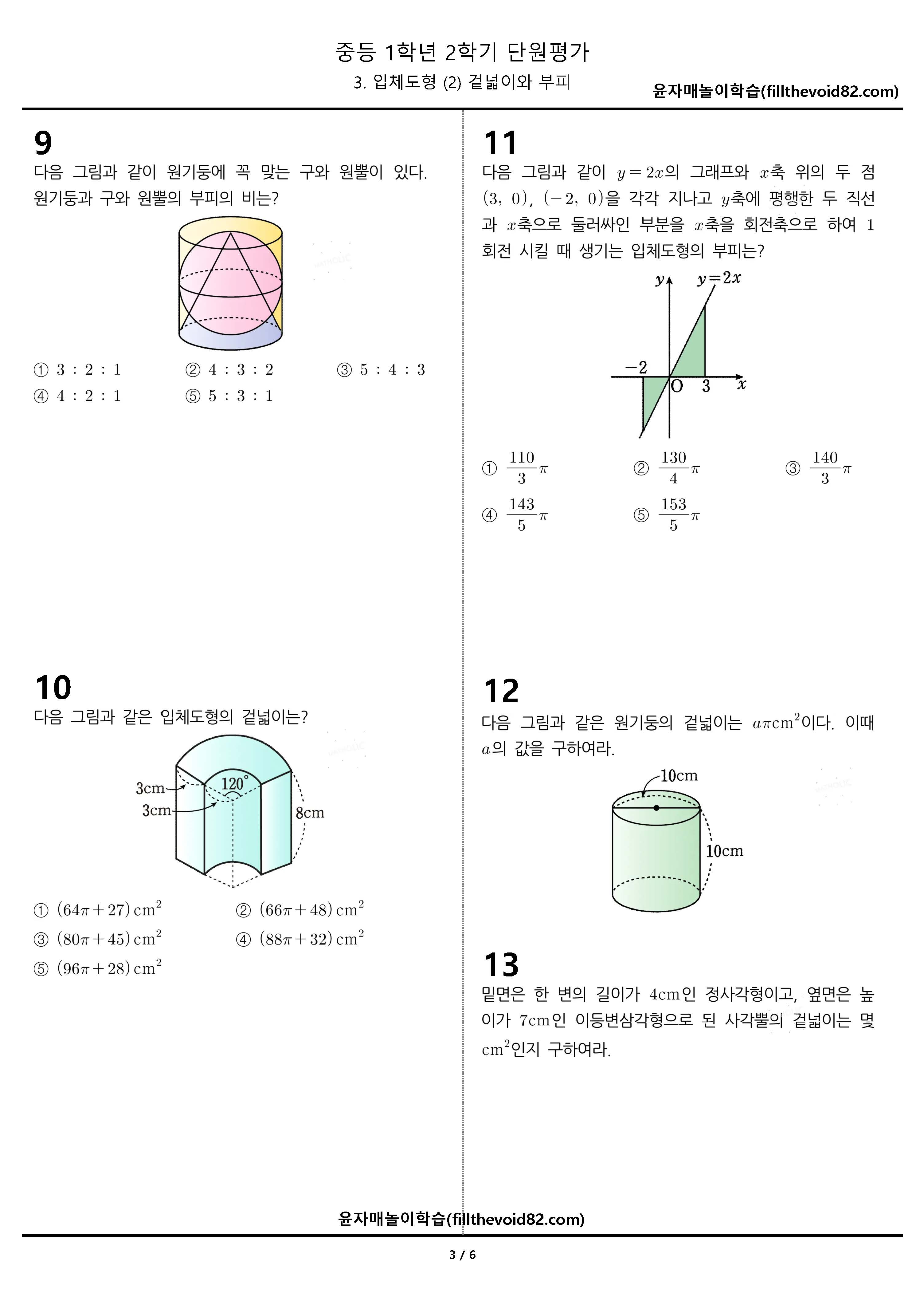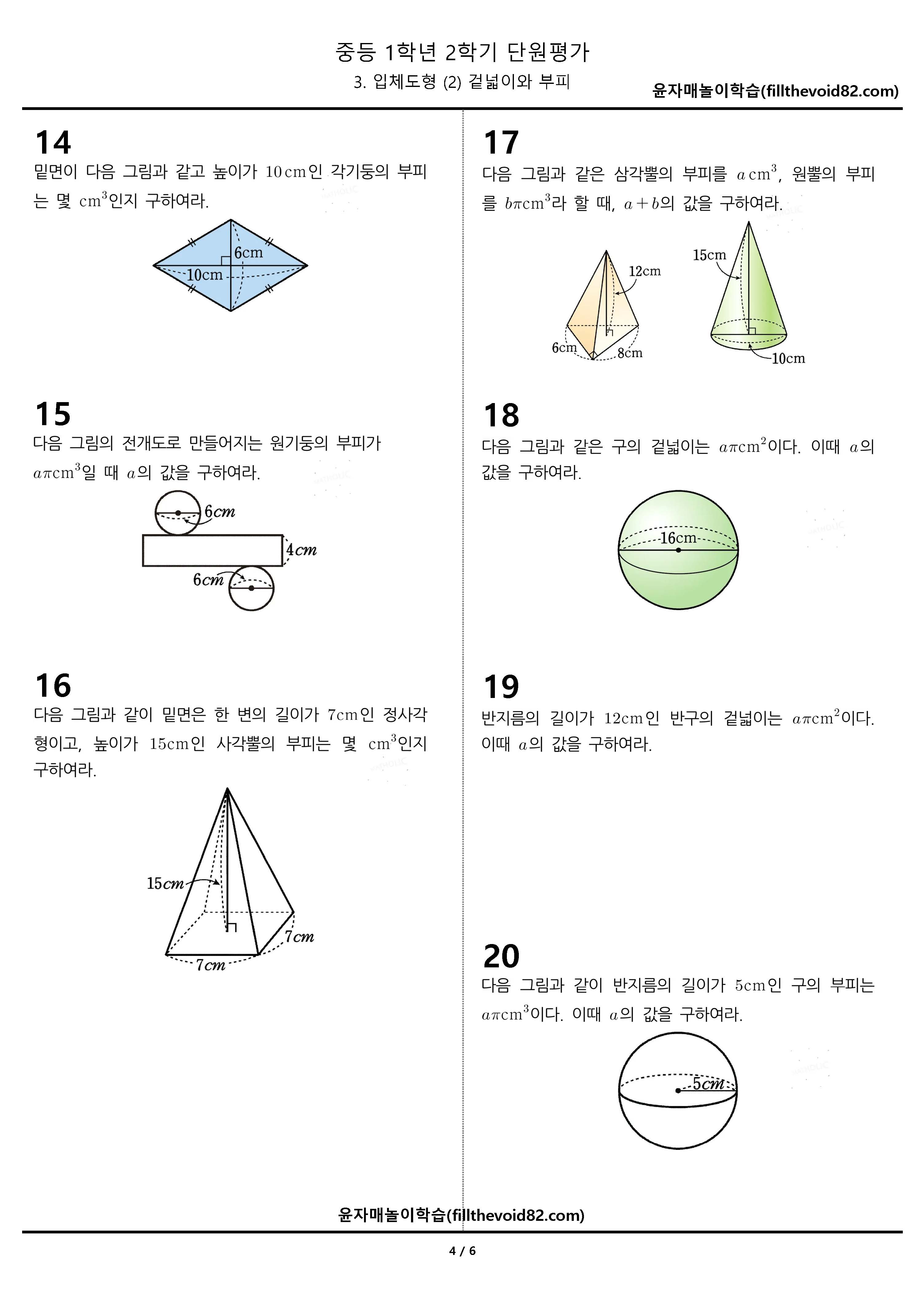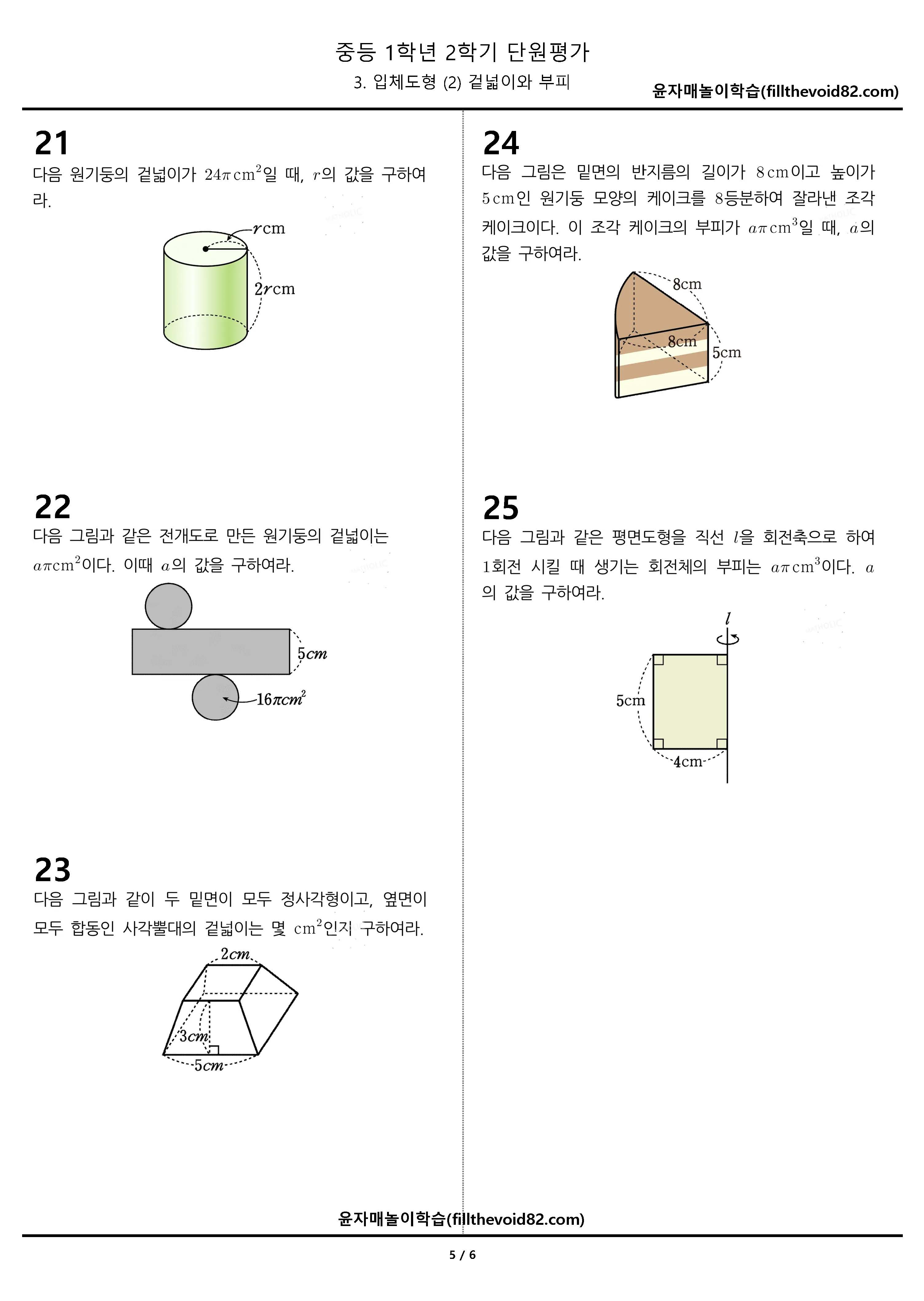 | 중등무료학습지)중등단원평가) 중등1학년 2학기 3.입체도형(1)다면체와 회전체 (0) | 2023.10.26 |