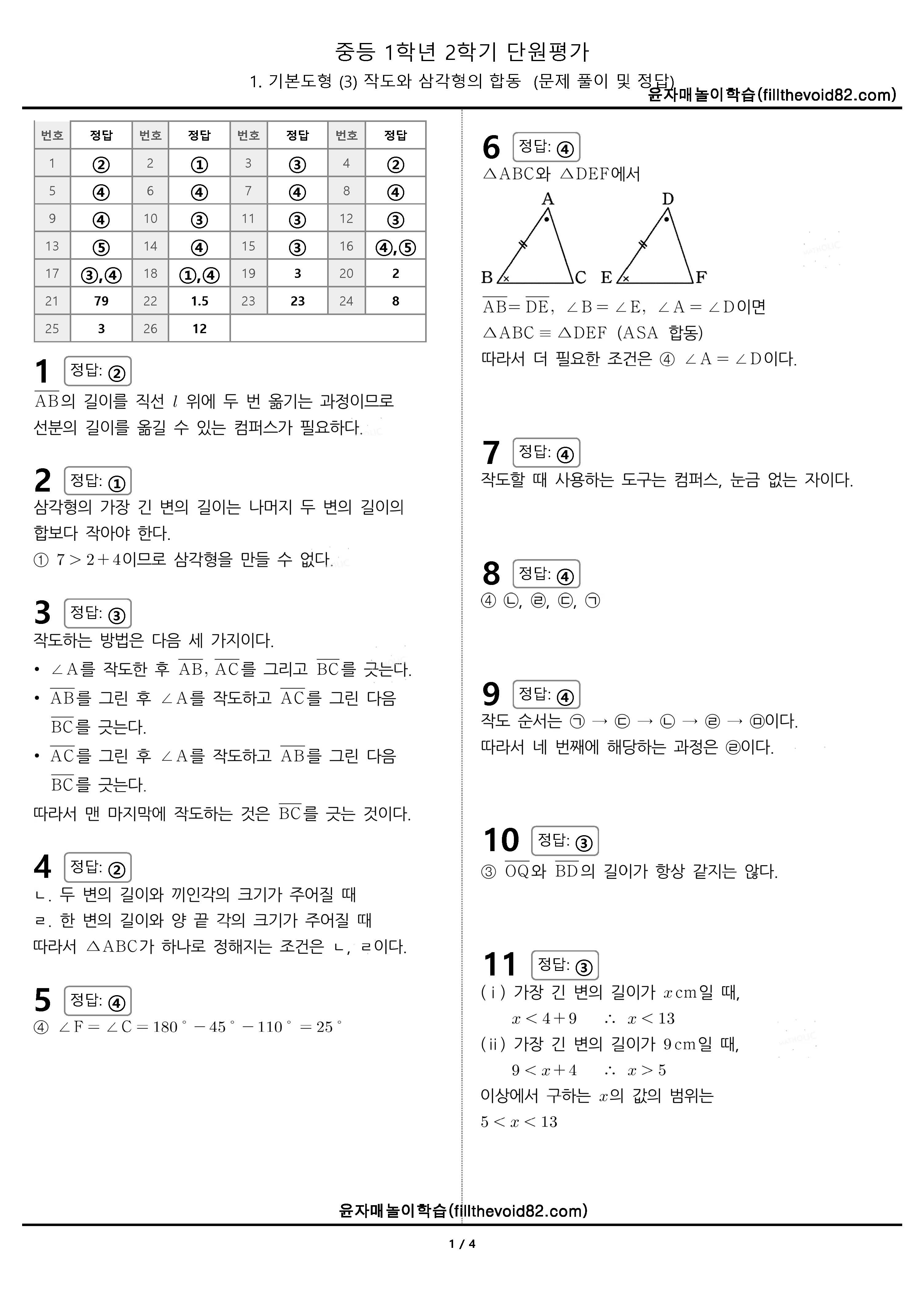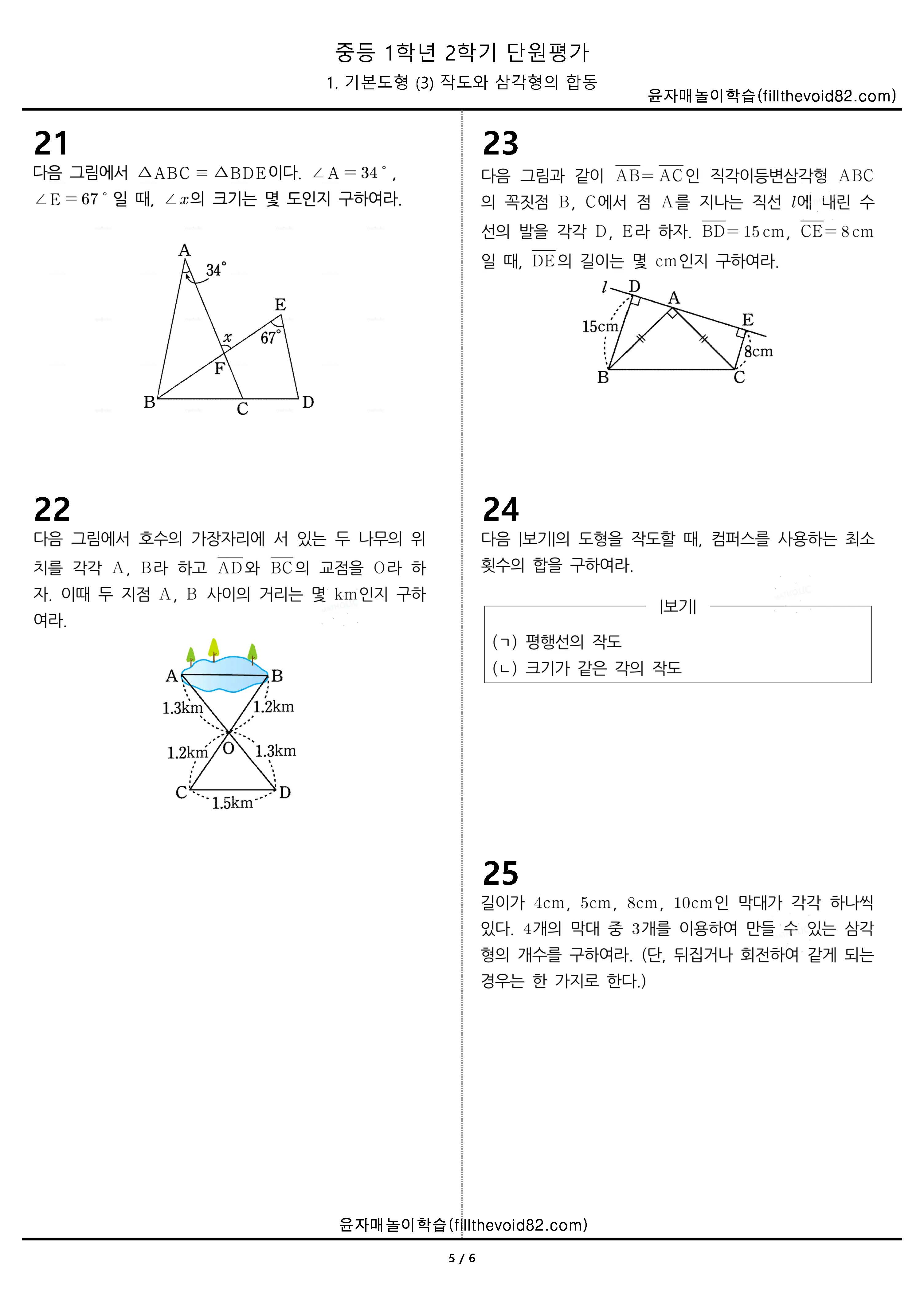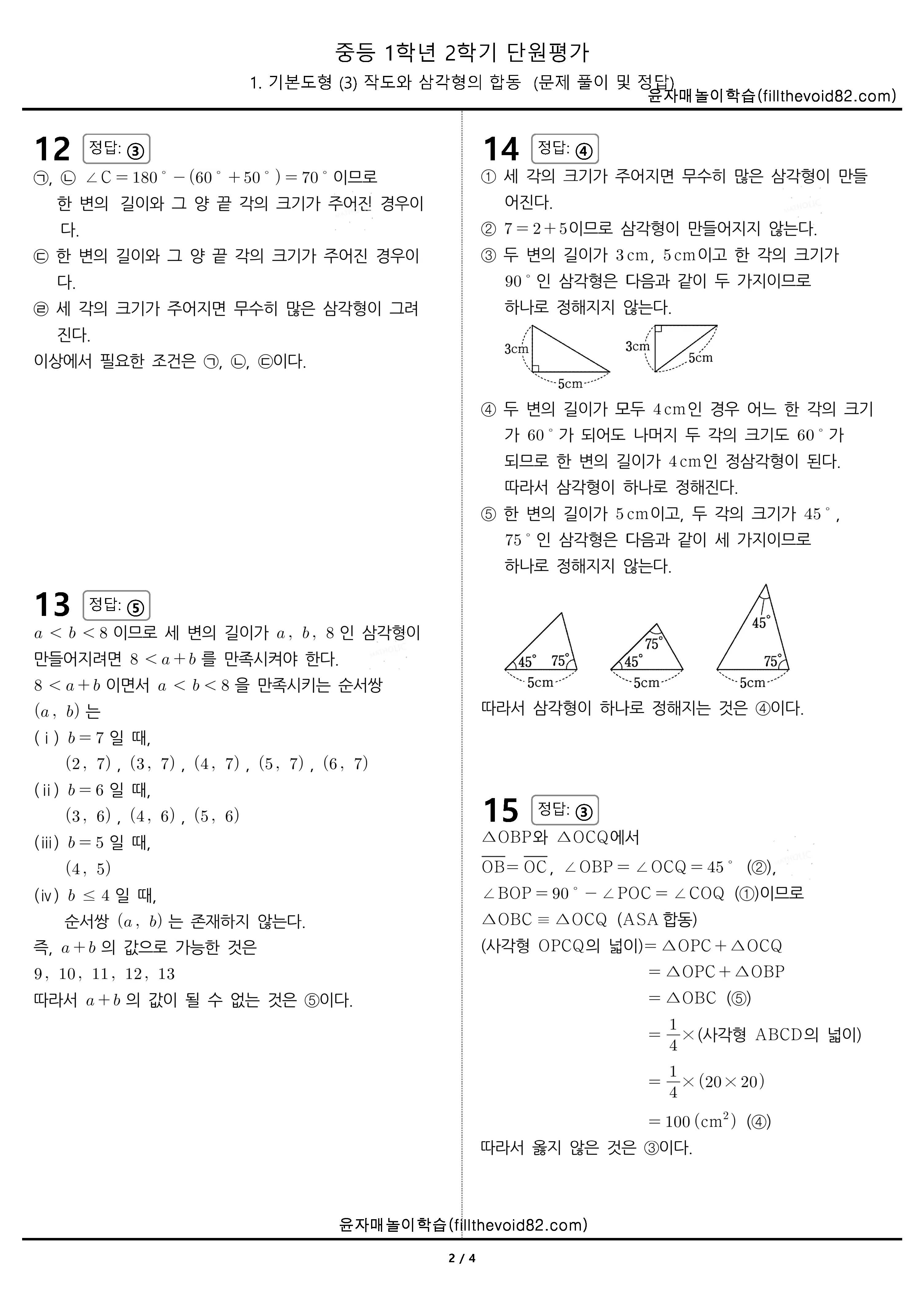 | 중등무료학습지) 중등단원평가) 중등 2학년 2학기 1. 도형의 성질 (1) 삼각형의 성질 (0) | 2023.09.26 |