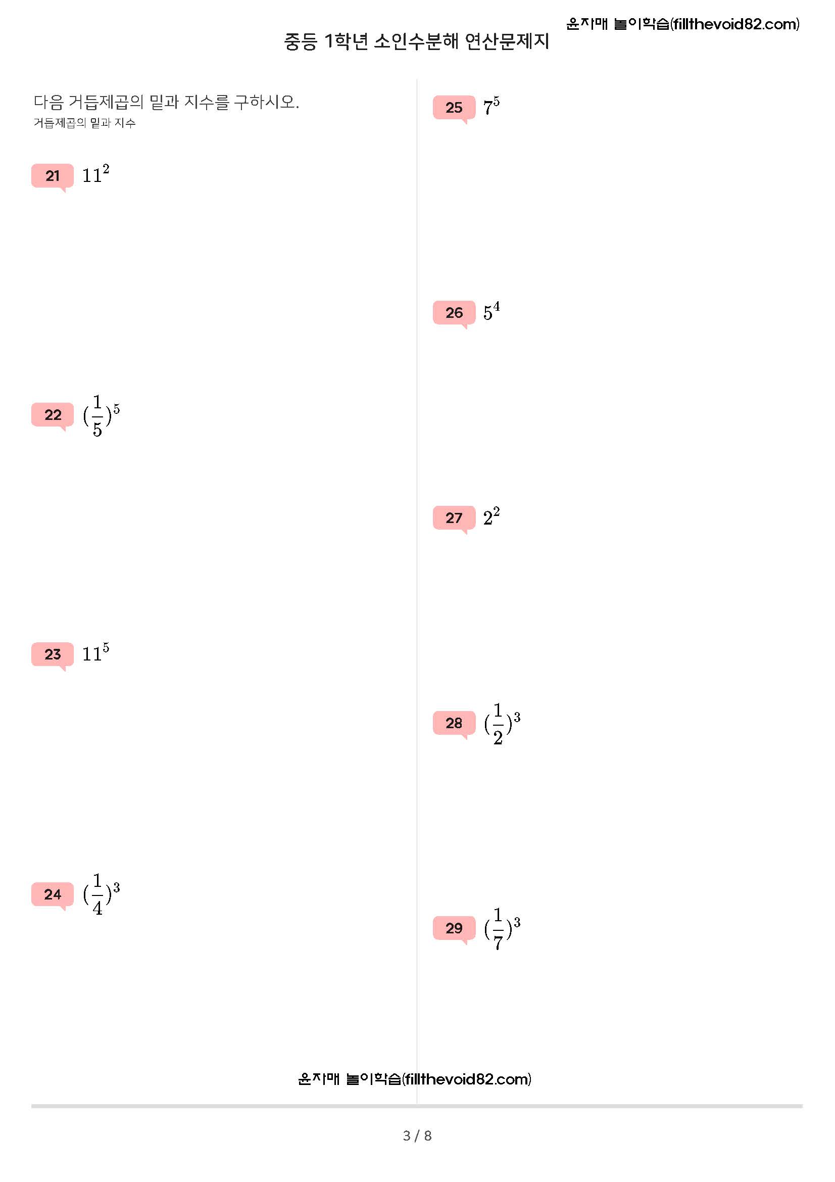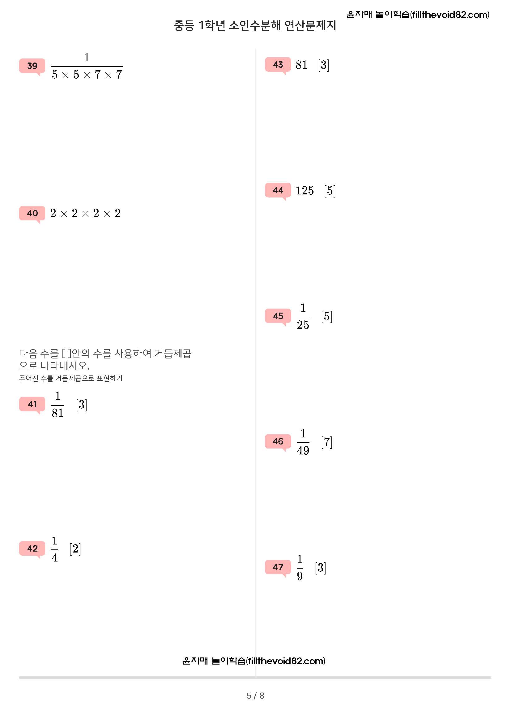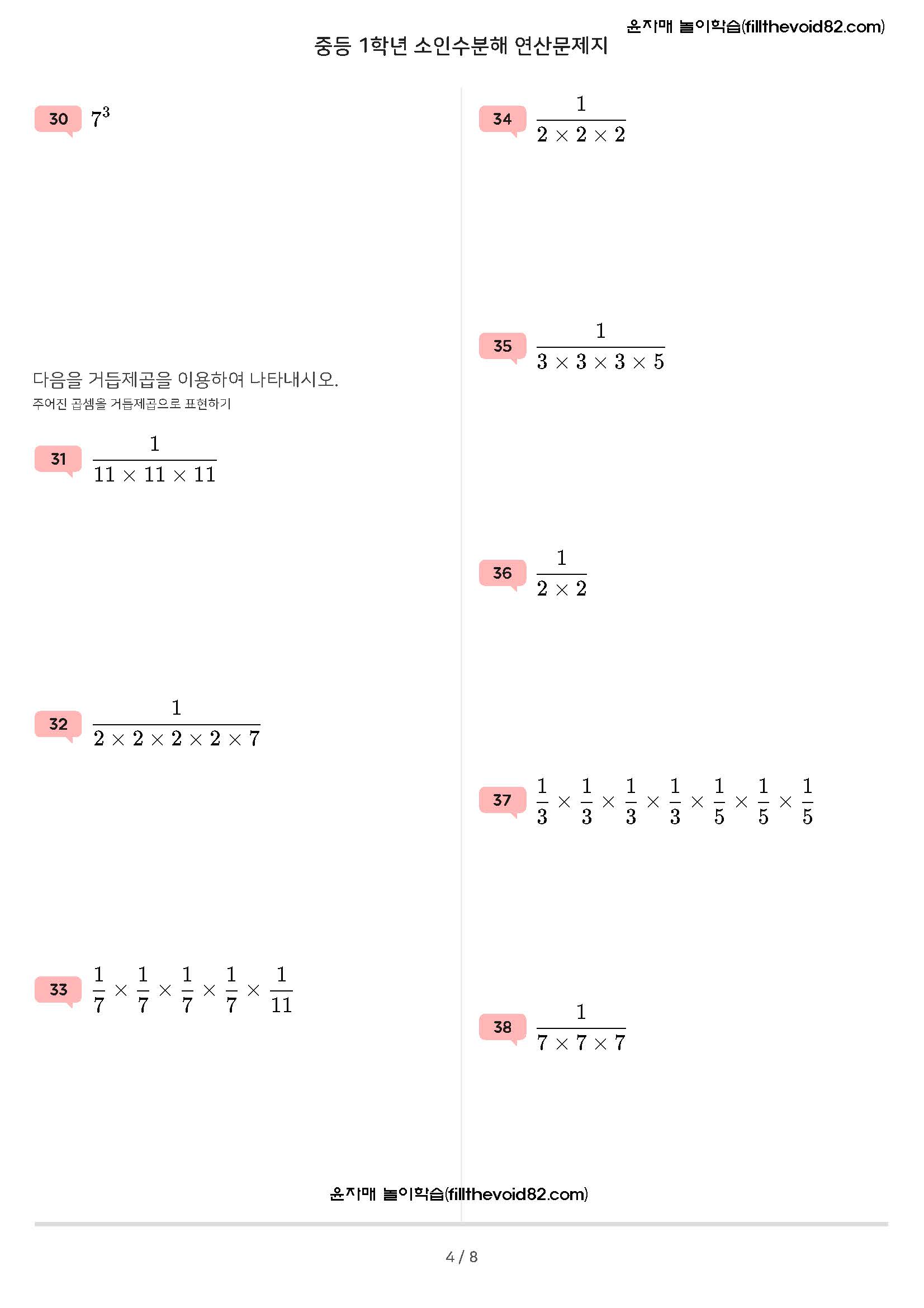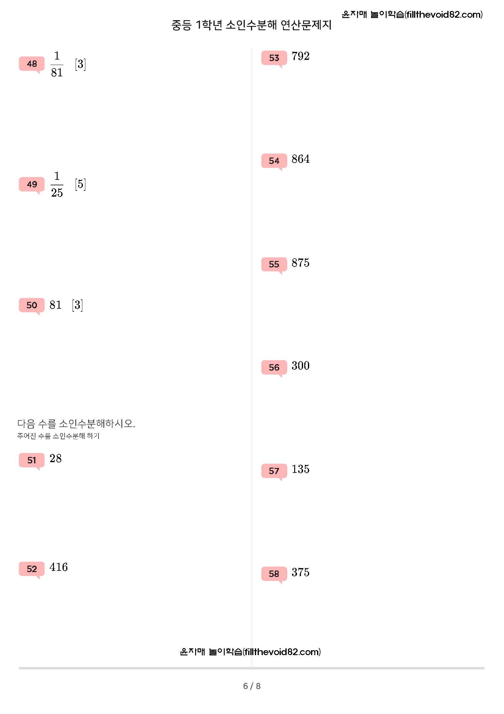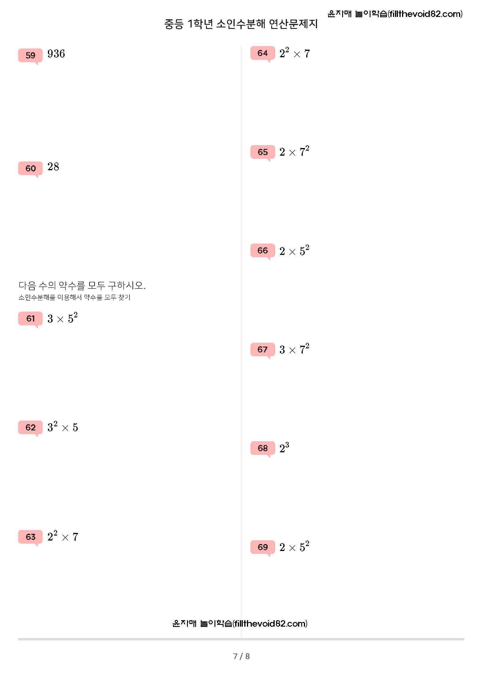 중등무료학습지) 중등 1학년 소인수분해 연산문제지
