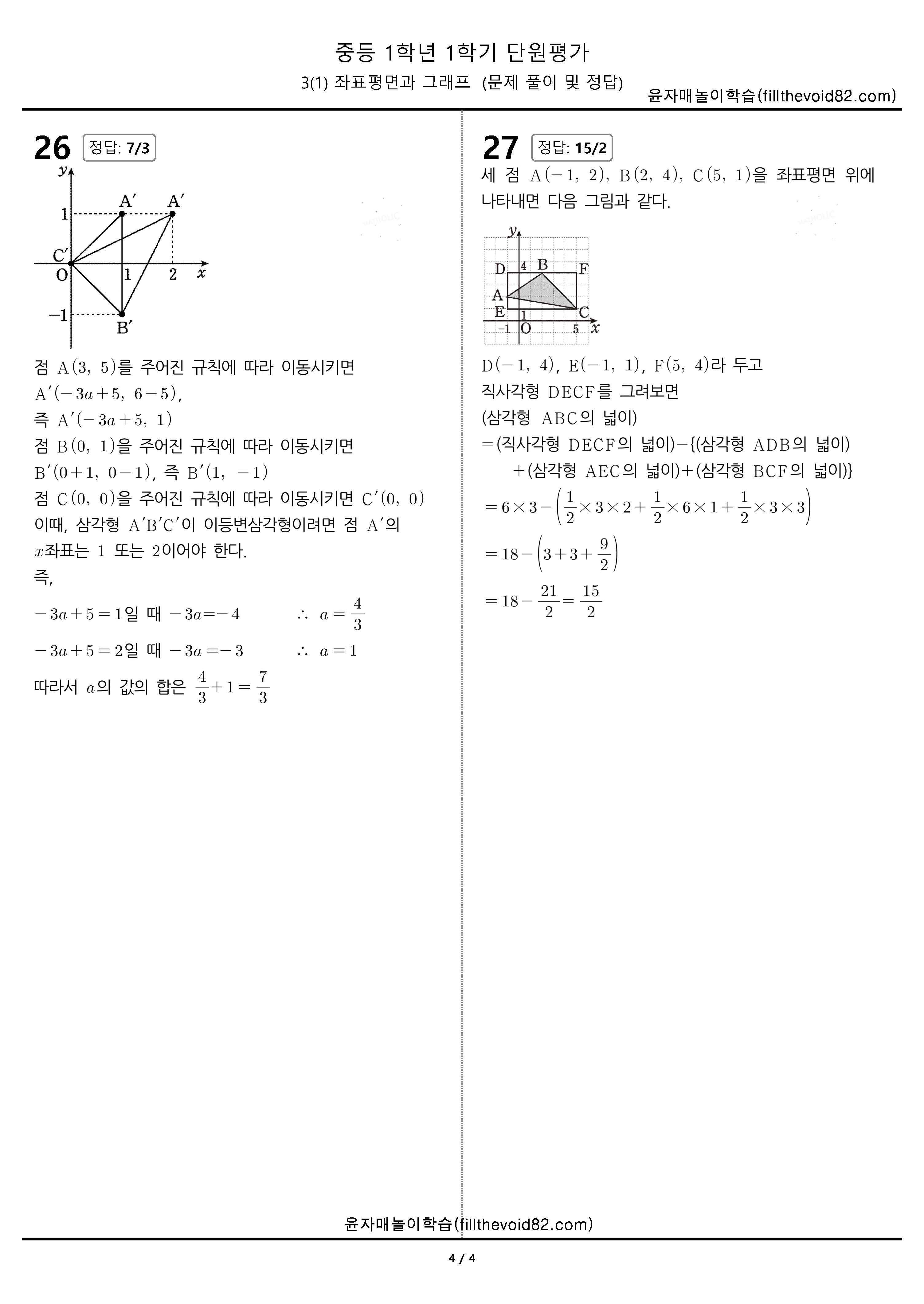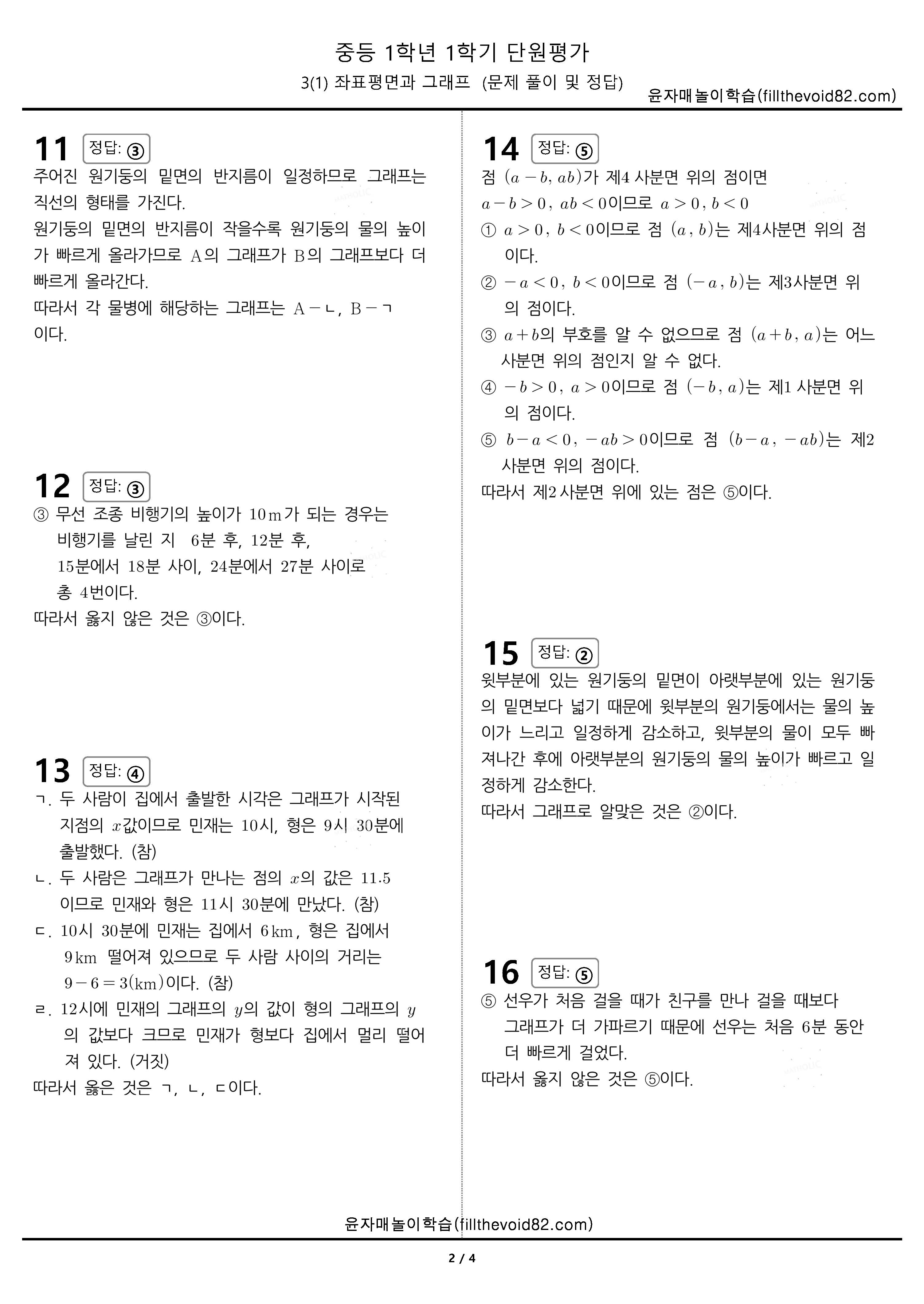 중등 1학년 1학기 3(1) 좌표평면과 그래프
