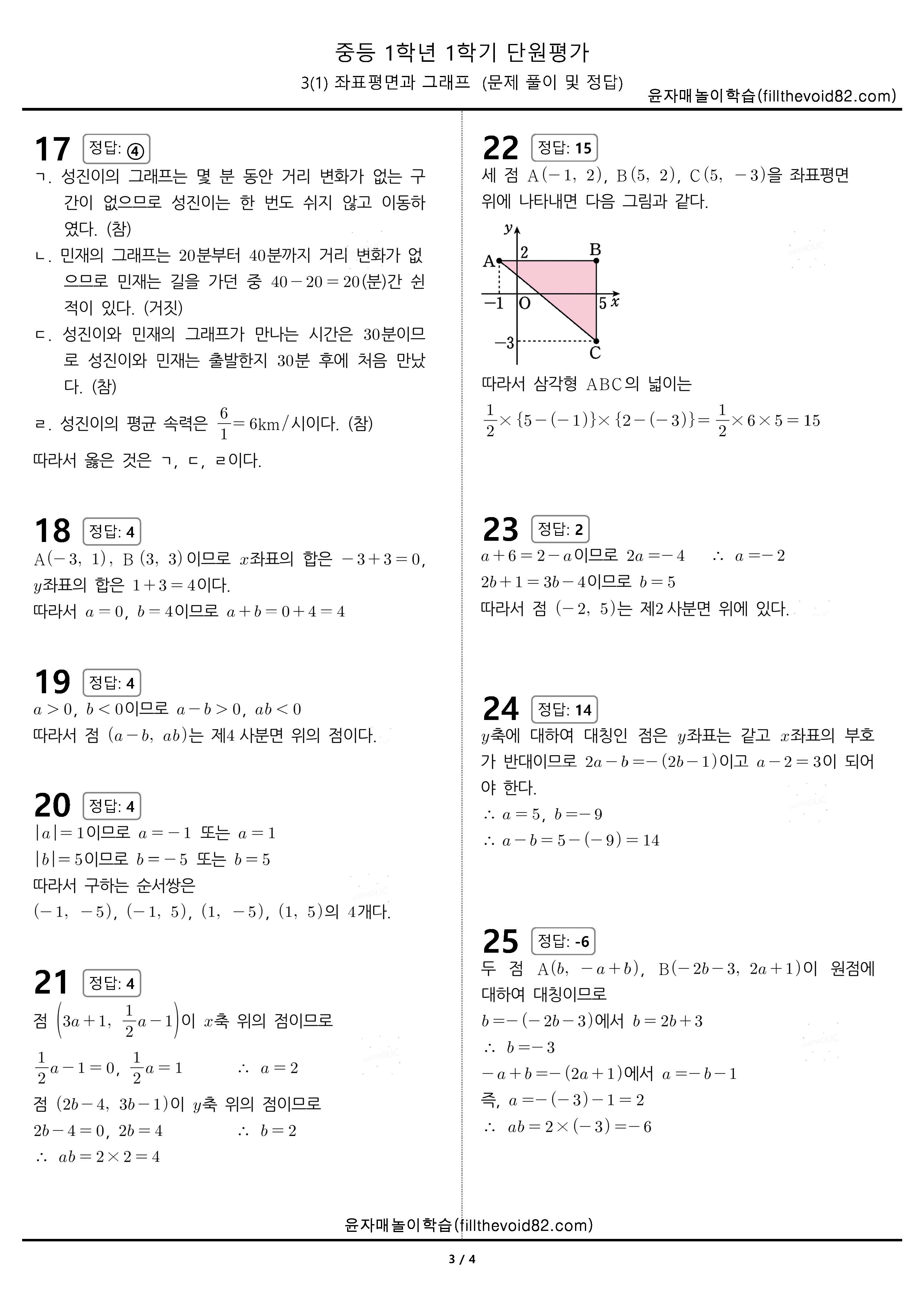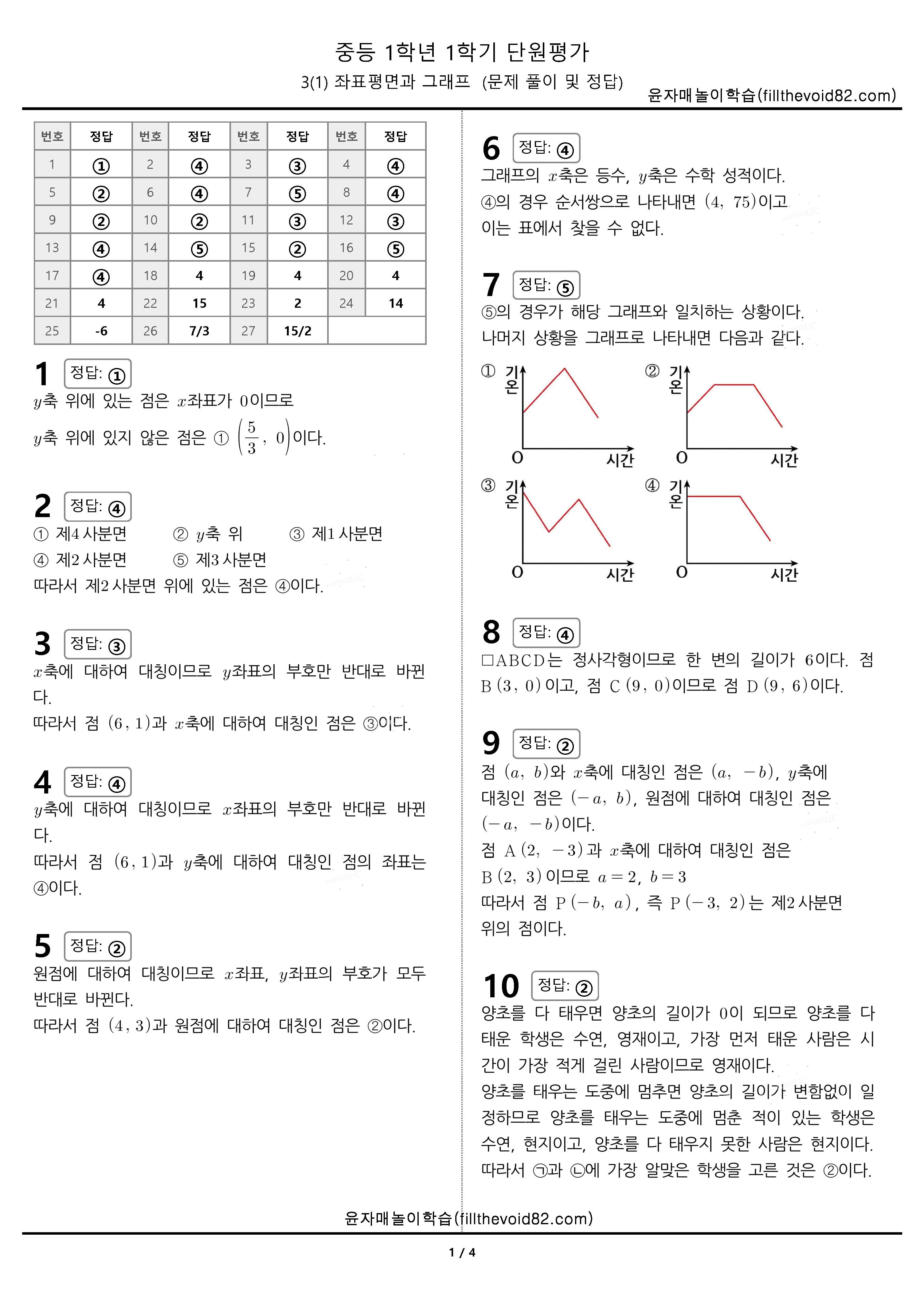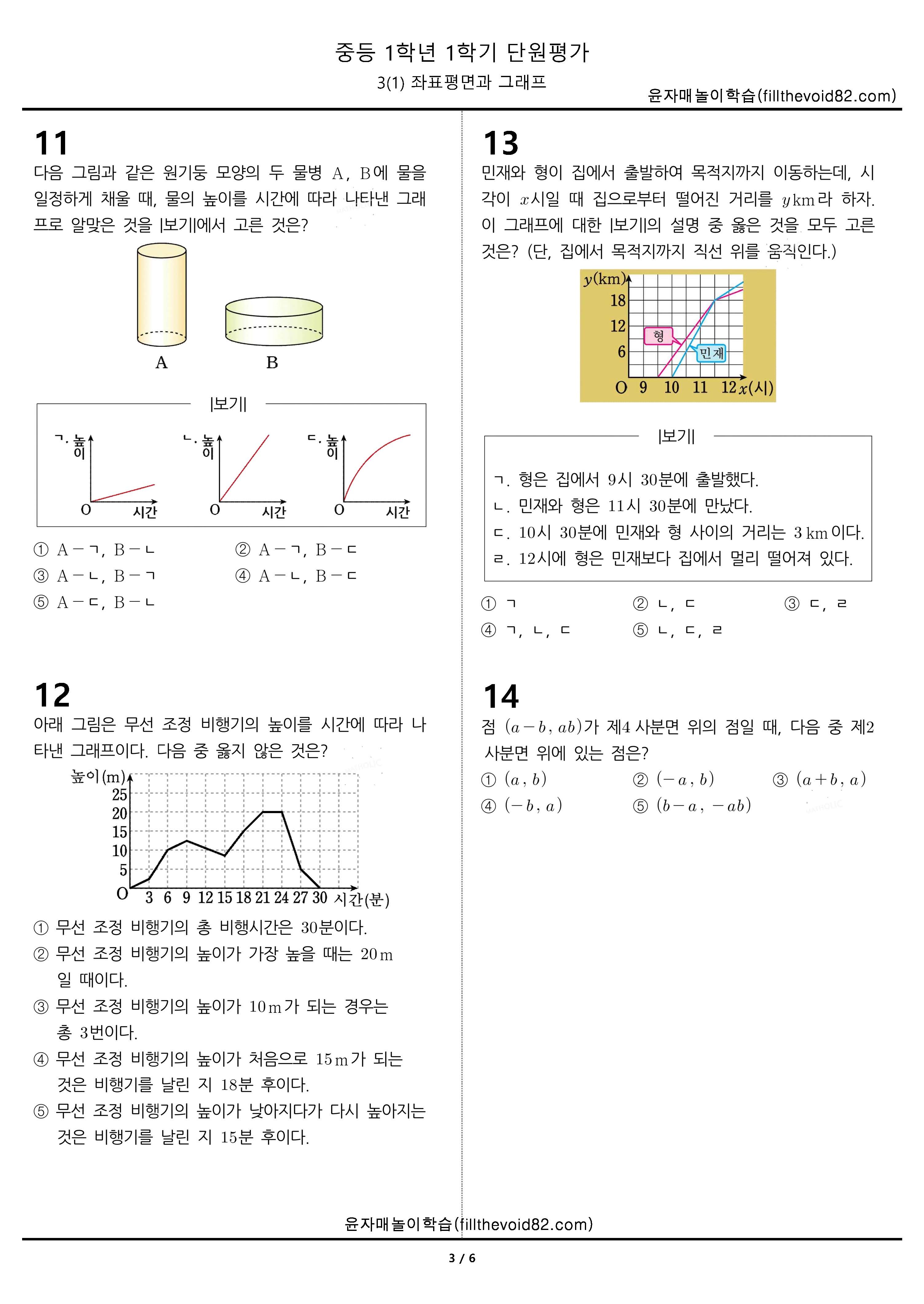 중등 1학년 1학기 3(1) 좌표평면과 그래프