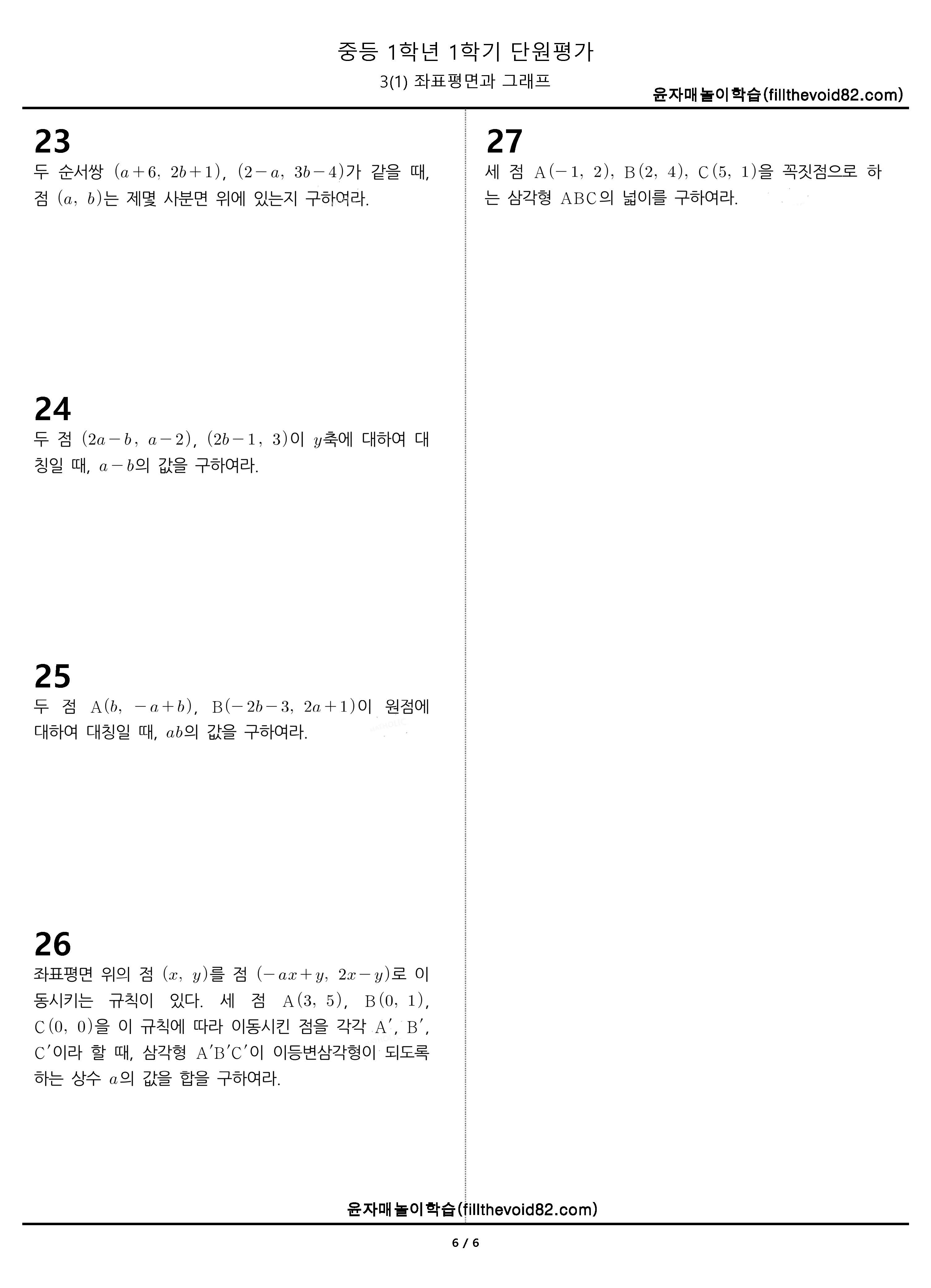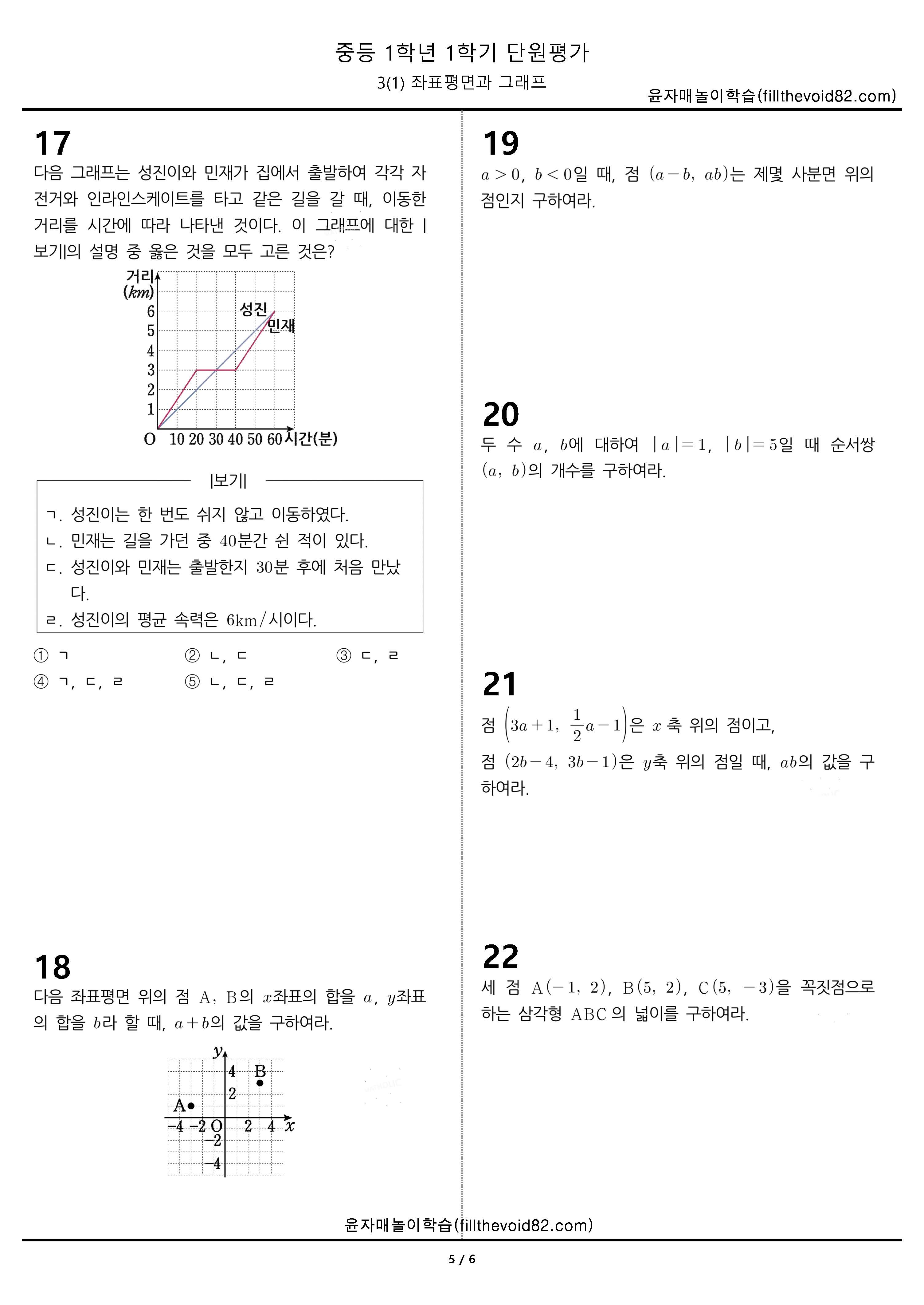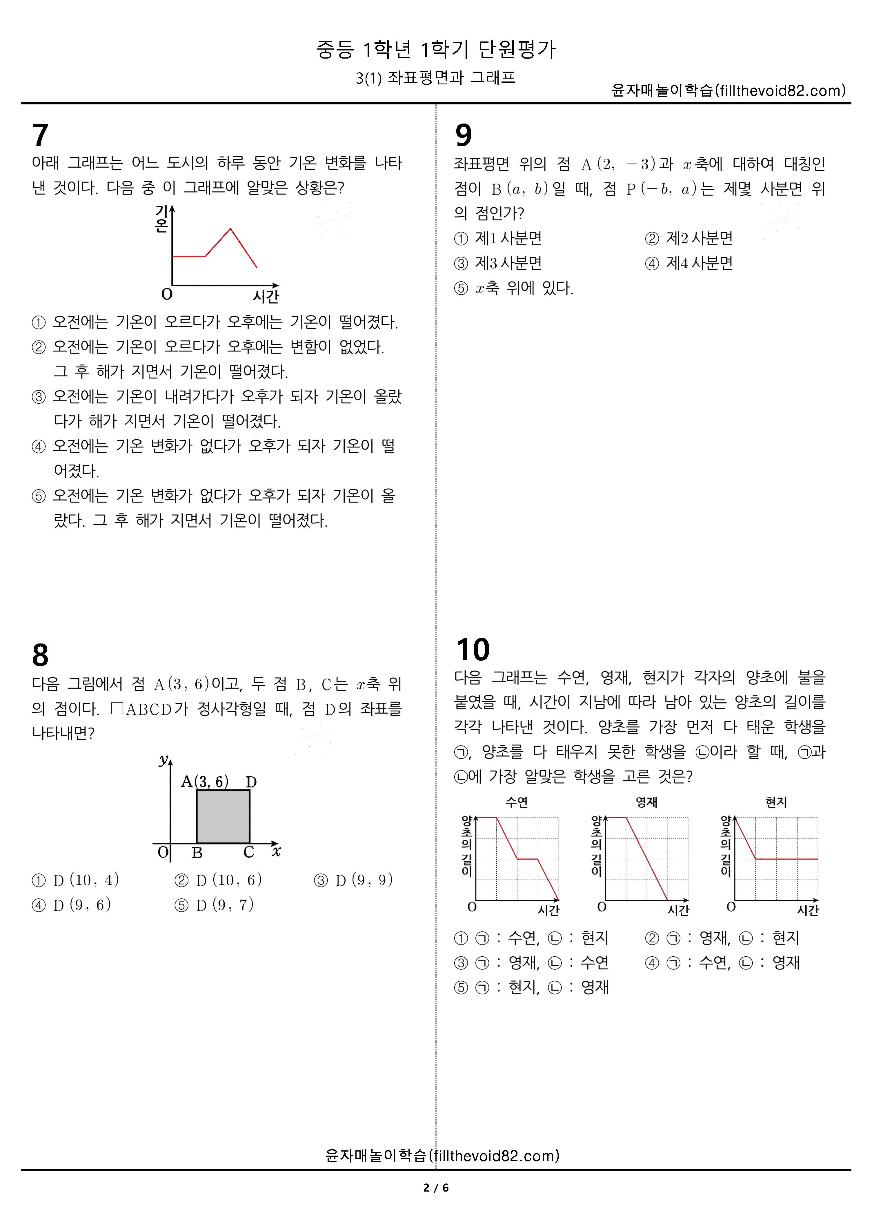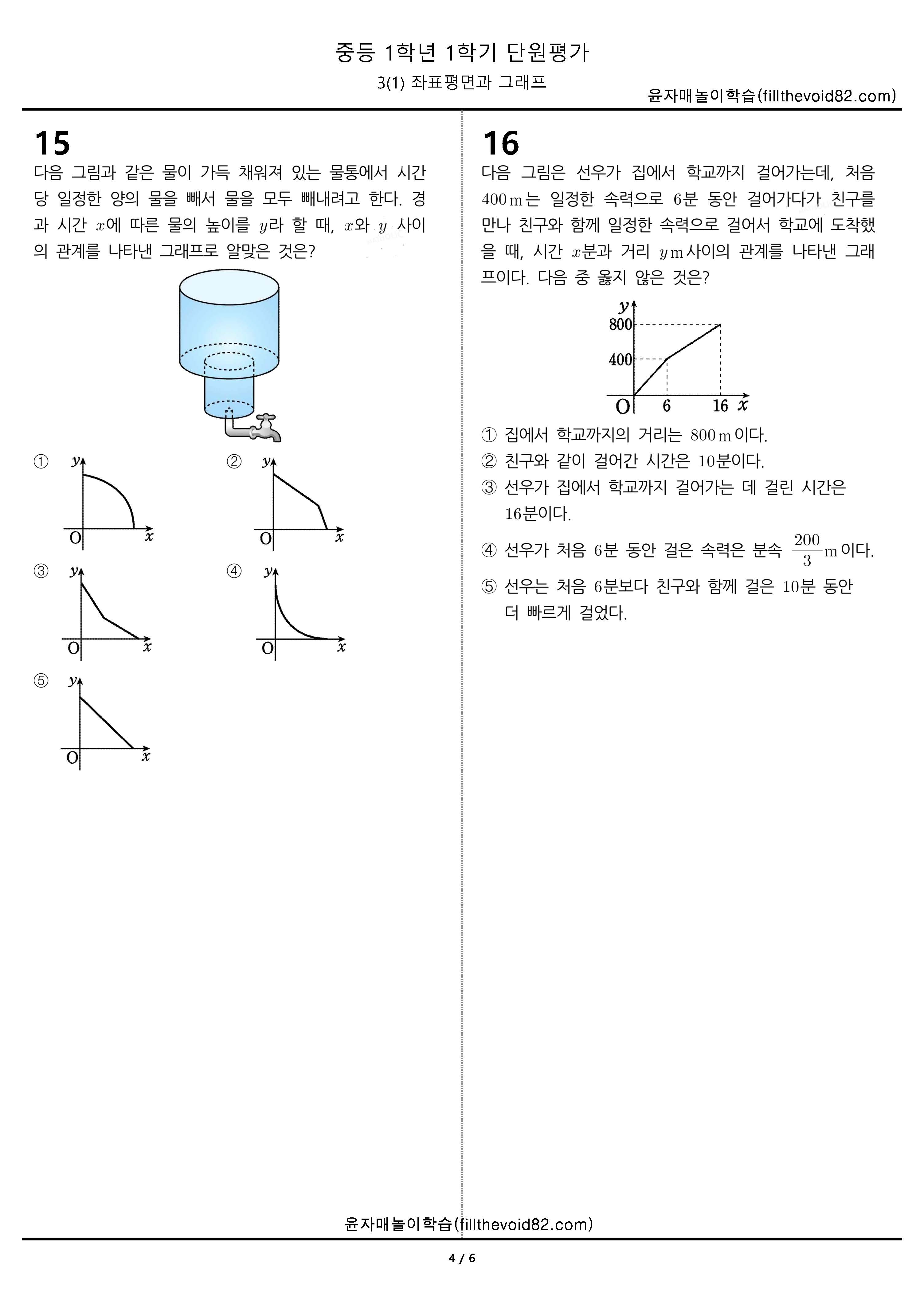 중등 1학년 1학기 3(1) 좌표평면과 그래프