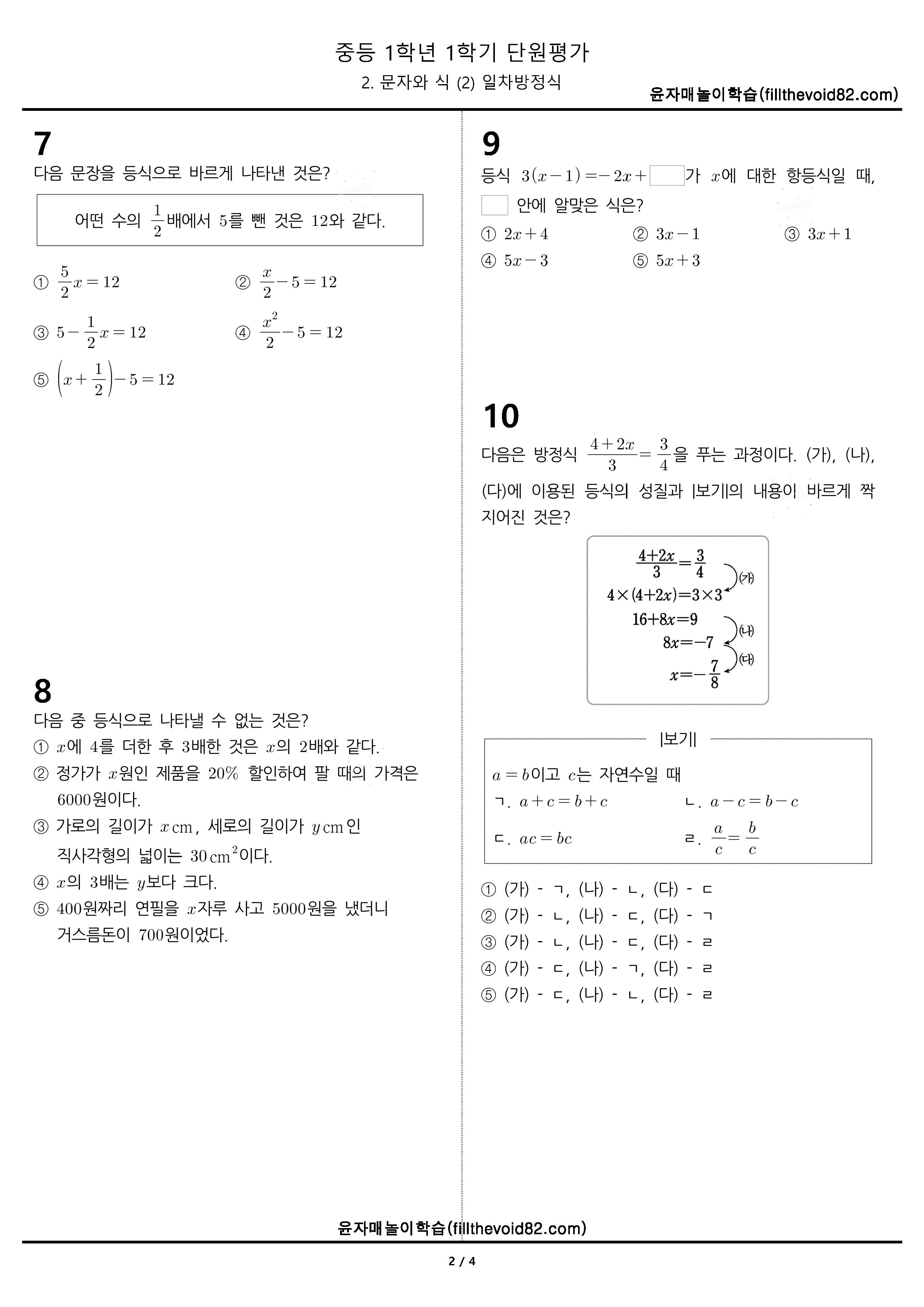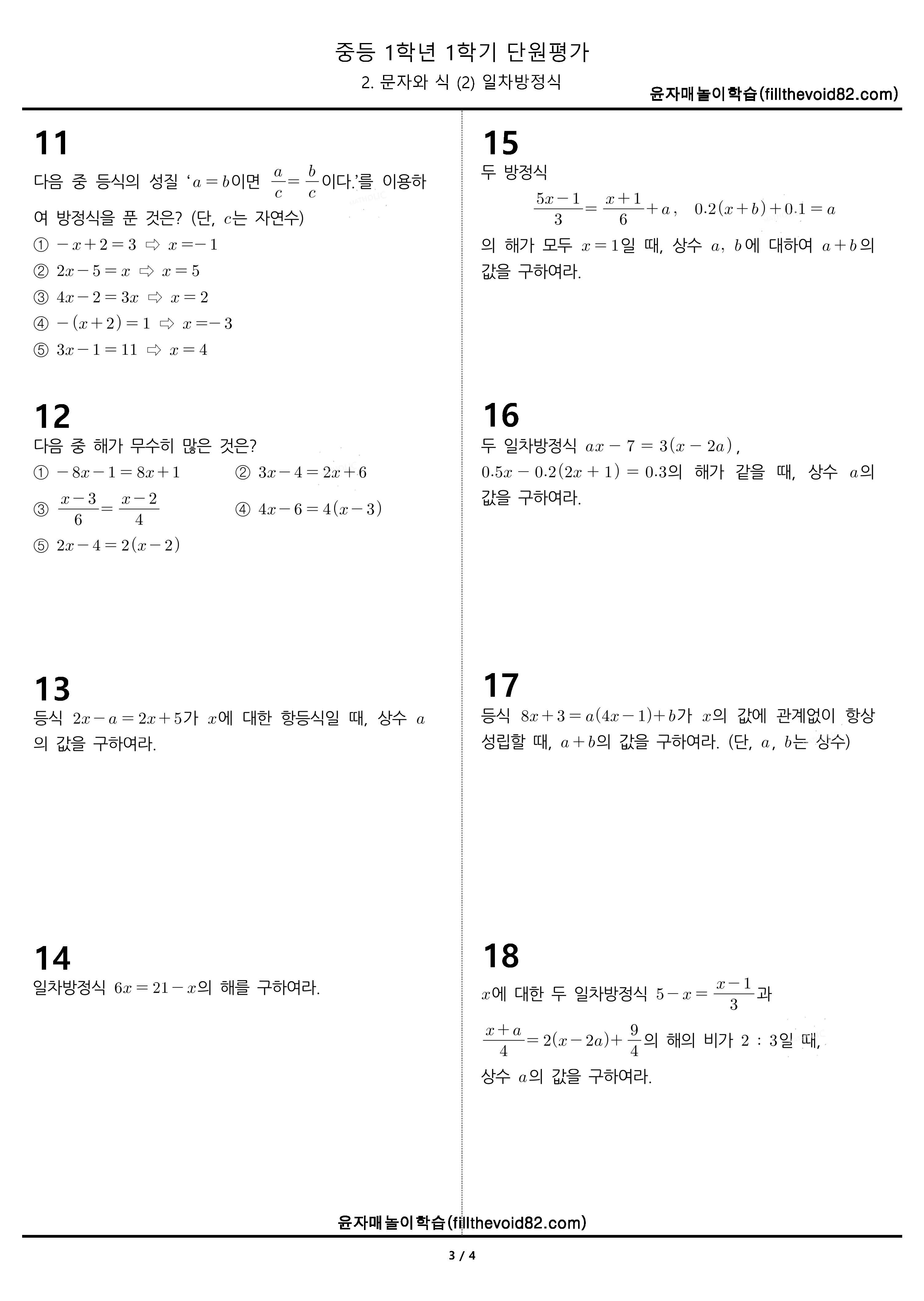 '수학문제지 > 중등단원평가' 카테고리의 다른 글